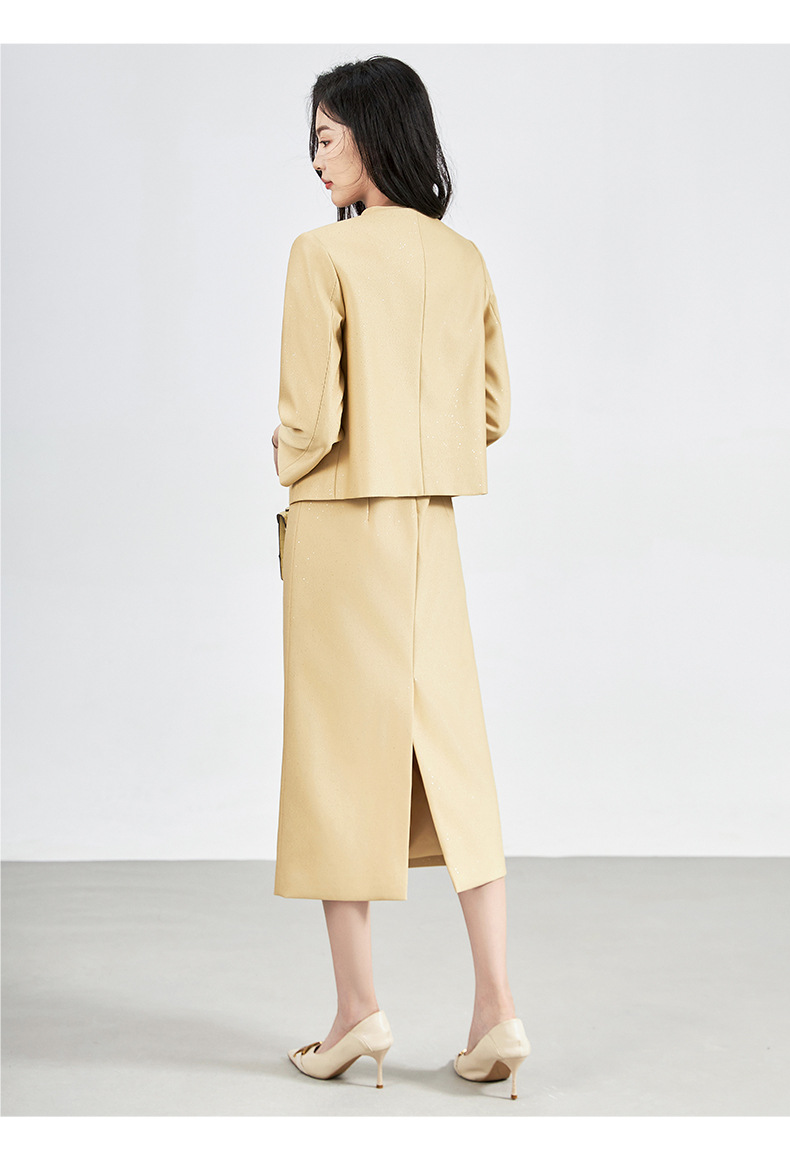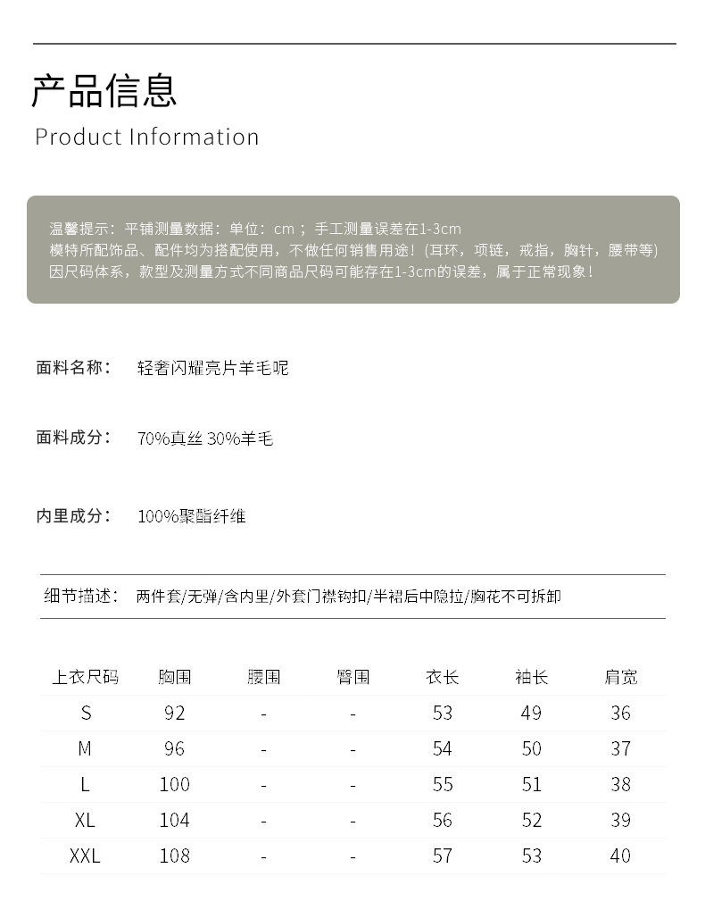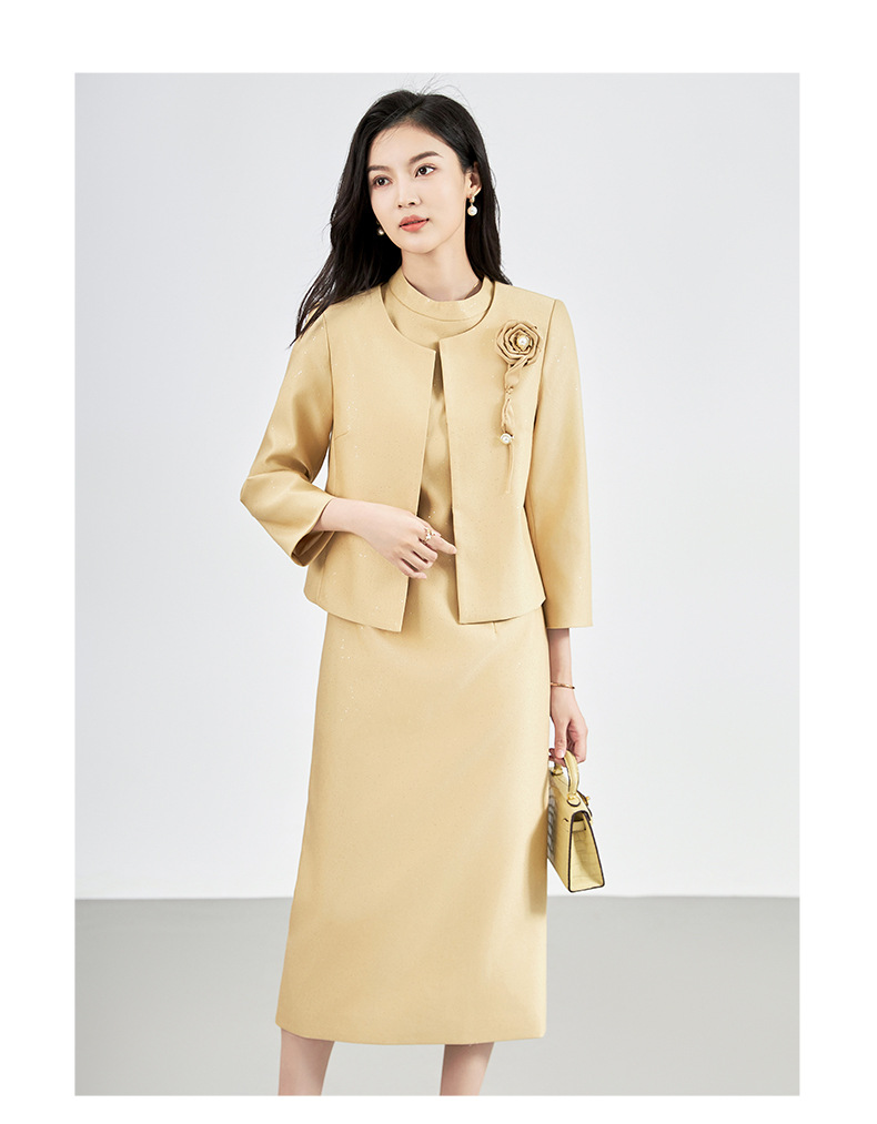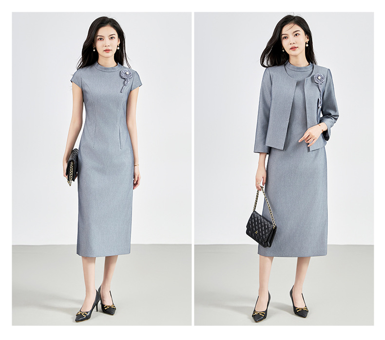 羊毛呢名媛轻奢感,圆领外套+背心连衣裙子两件套装WLZD-2427406