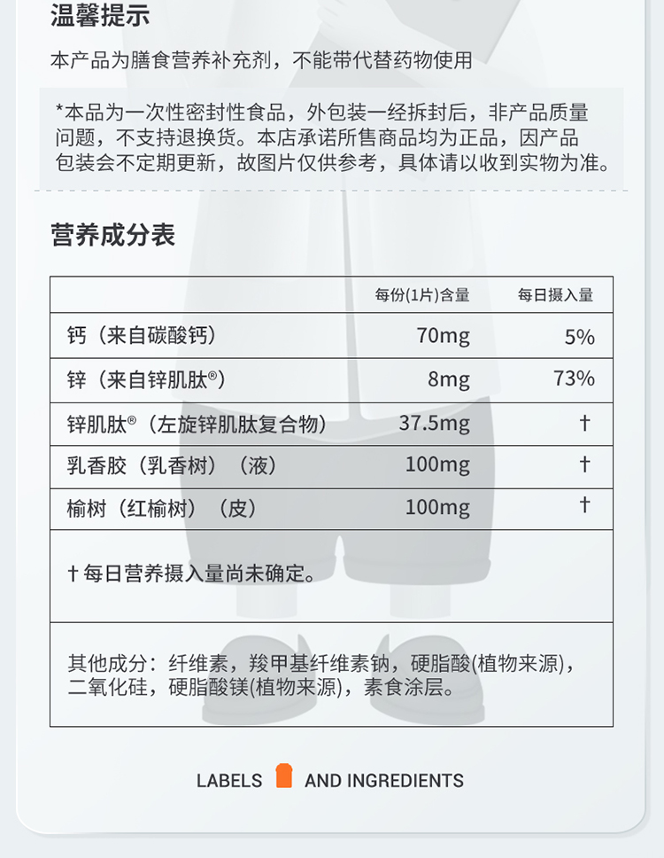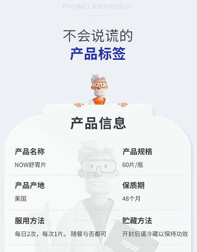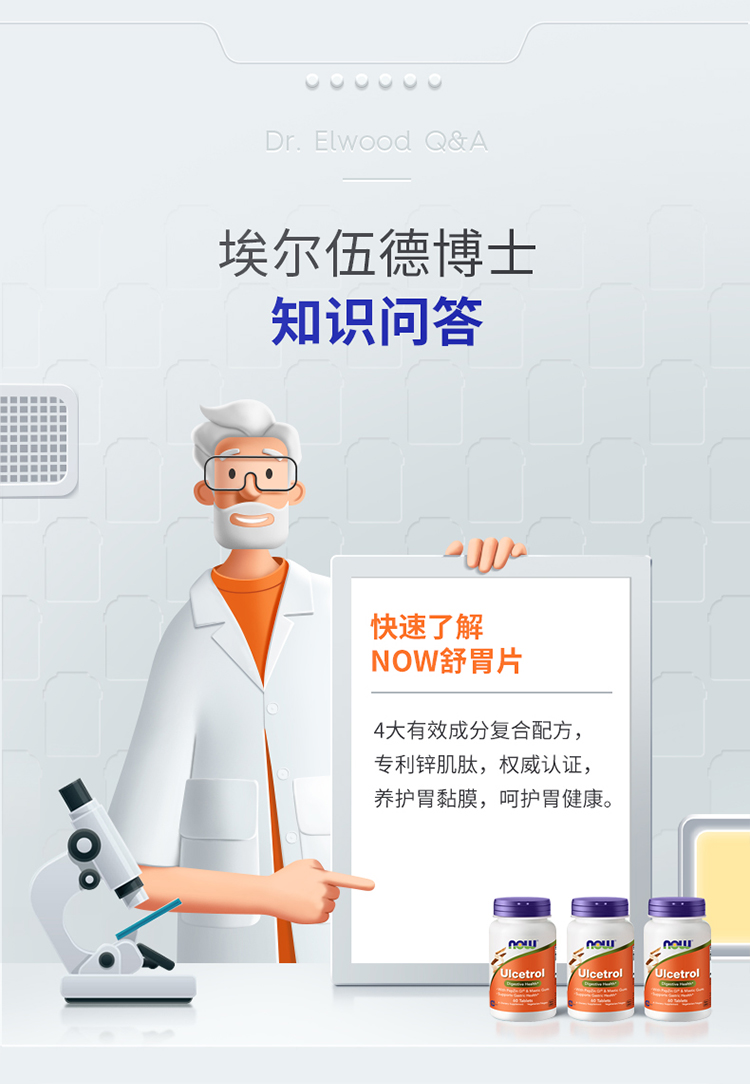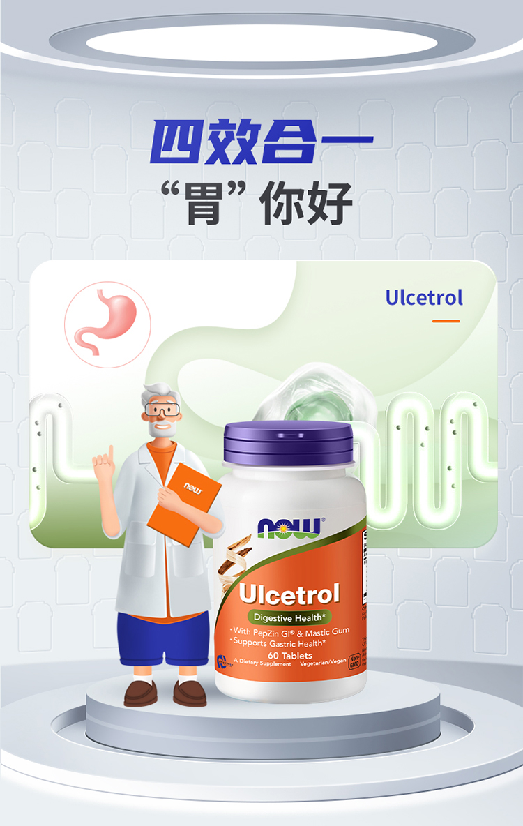 NOW Ulcetrol胃黏膜健康片养胃片锌肌肽60粒/瓶
