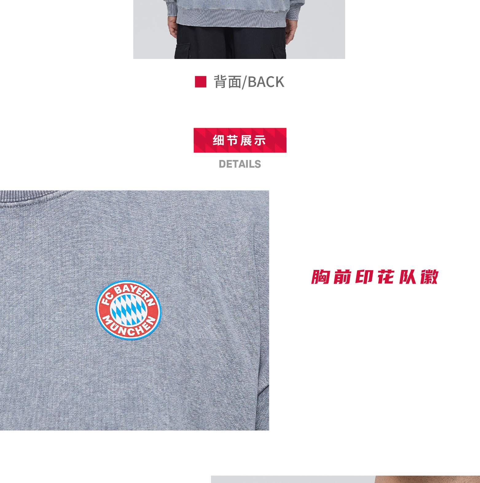 【官方正版】拜仁慕尼黑足球俱乐部 | 简约潮流灰色圆领长袖卫衣