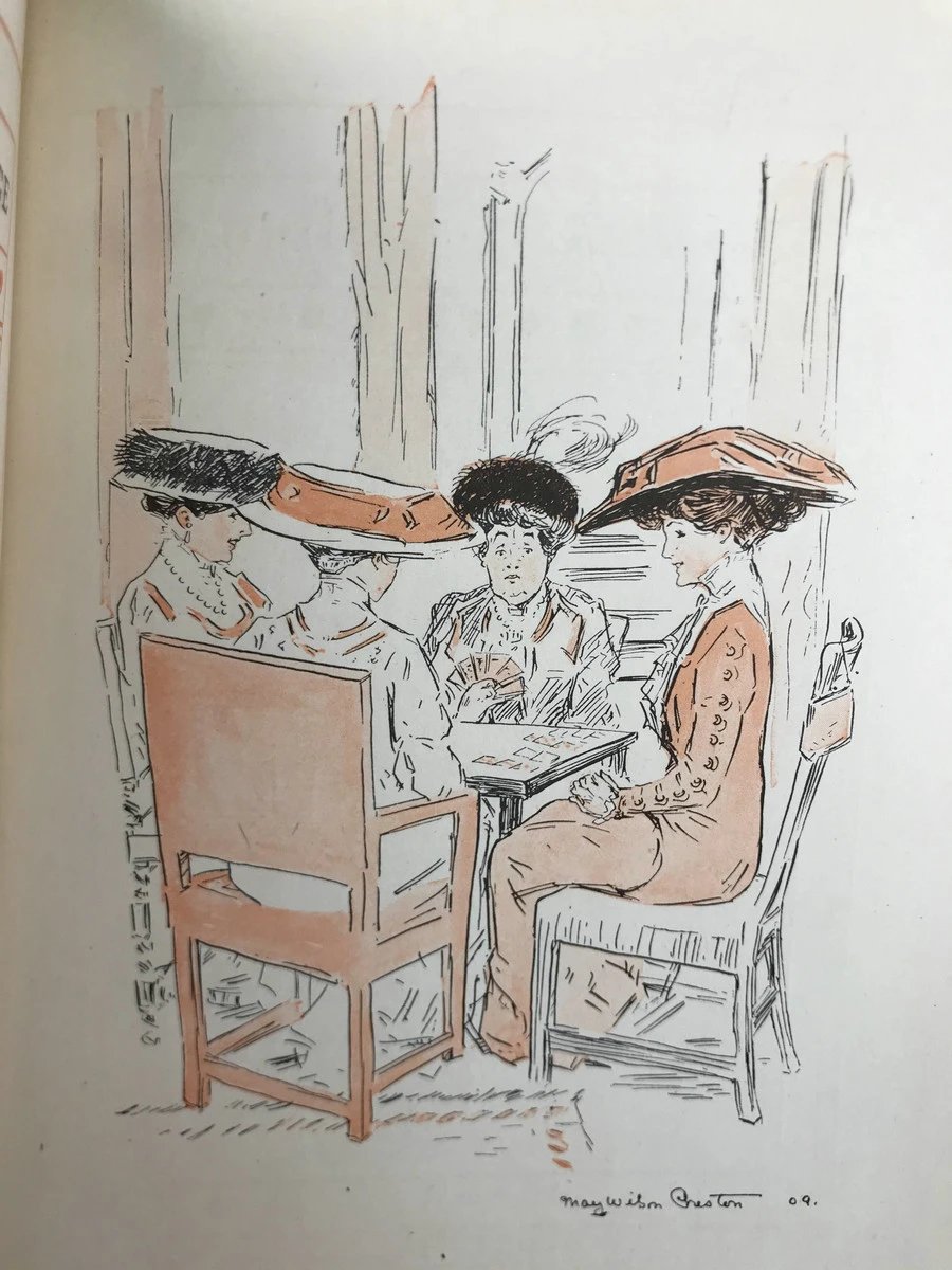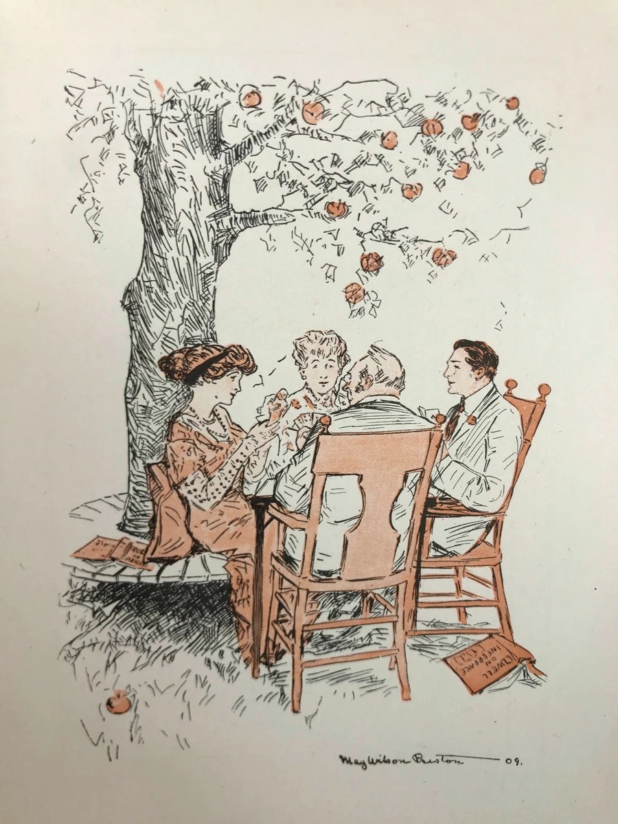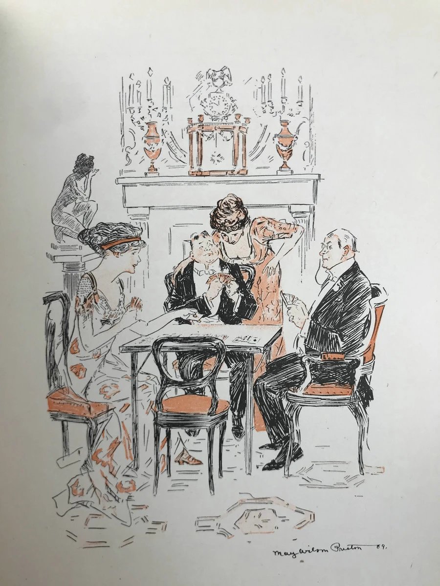1909年 卡罗琳·威尔斯《桥牌之诗》 普雷斯顿10余幅趣味插图 漆布精装32开