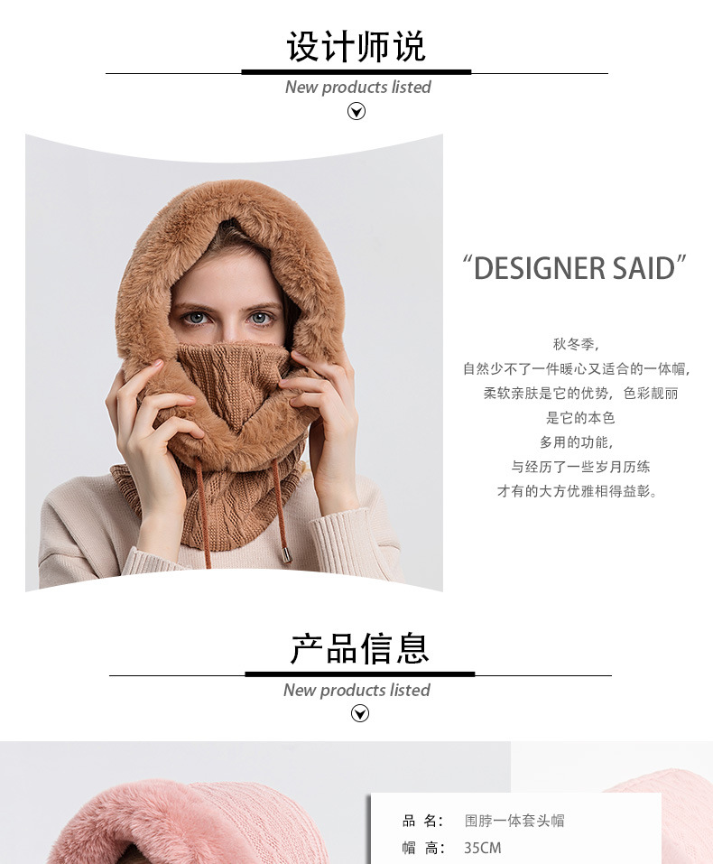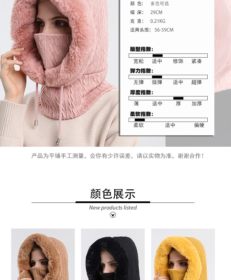 【秋冬季少不了一件一体帽】秋冬款洋气毛绒帽女户外骑行头套滑雪帽保暖面罩围脖二合一加厚帽,里层加绒,抗寒保暖, 符合冬日的氛围。ry