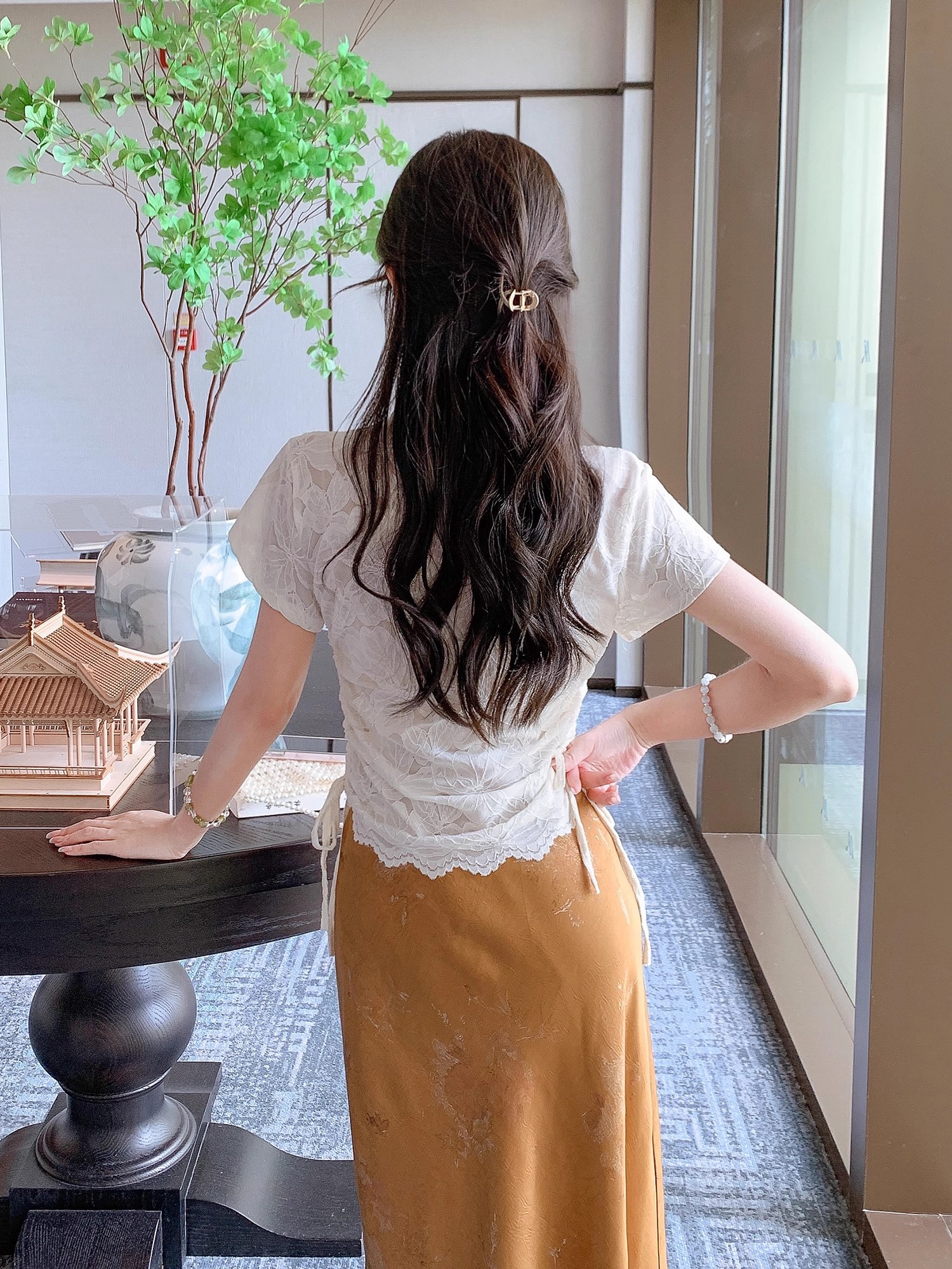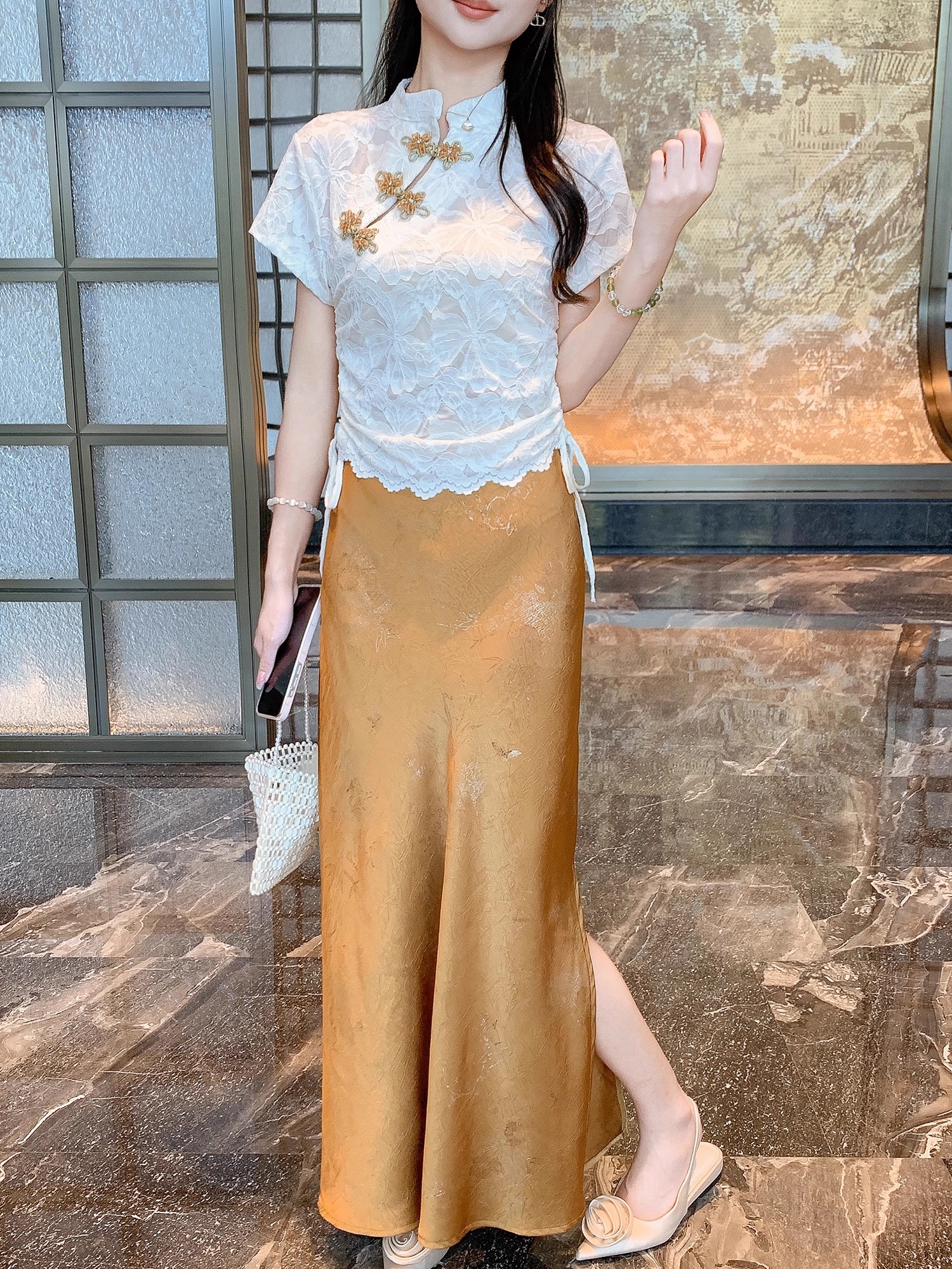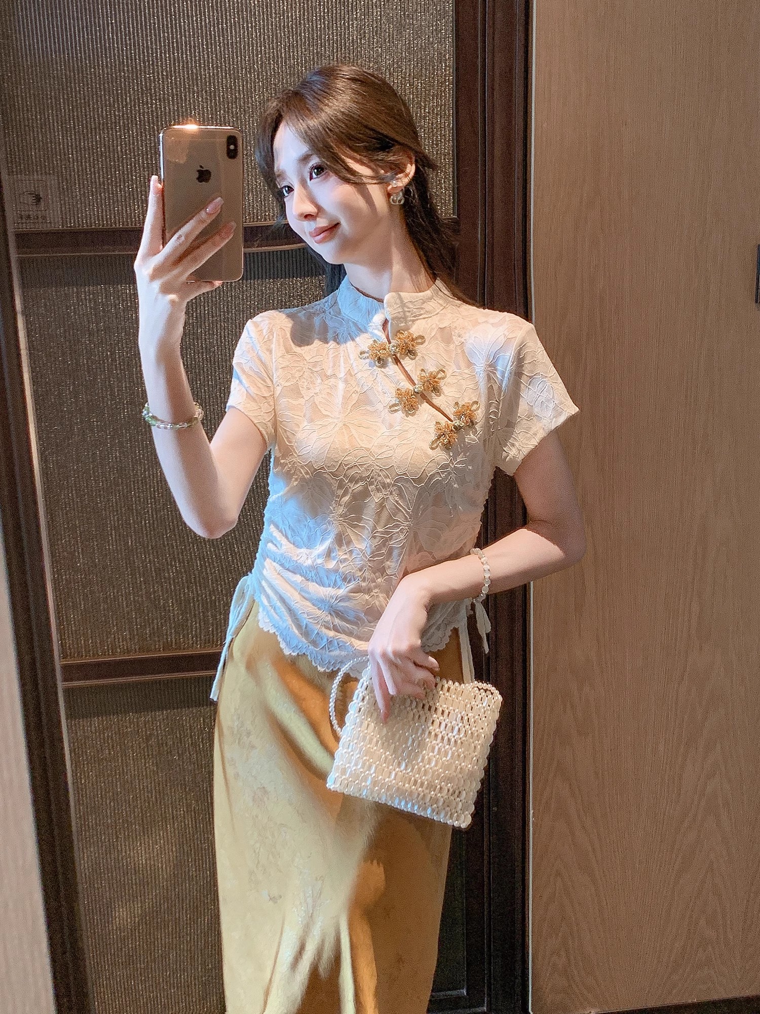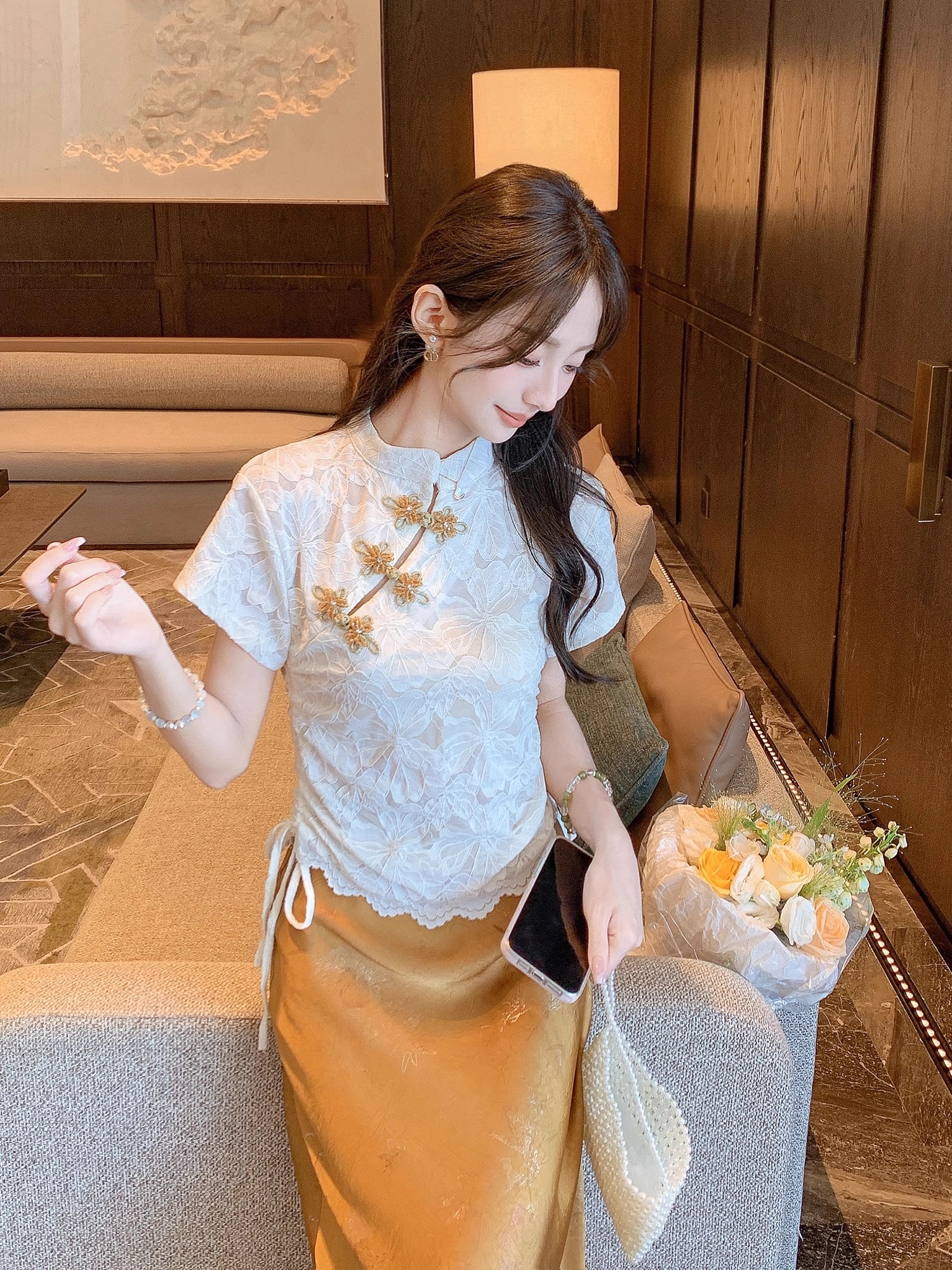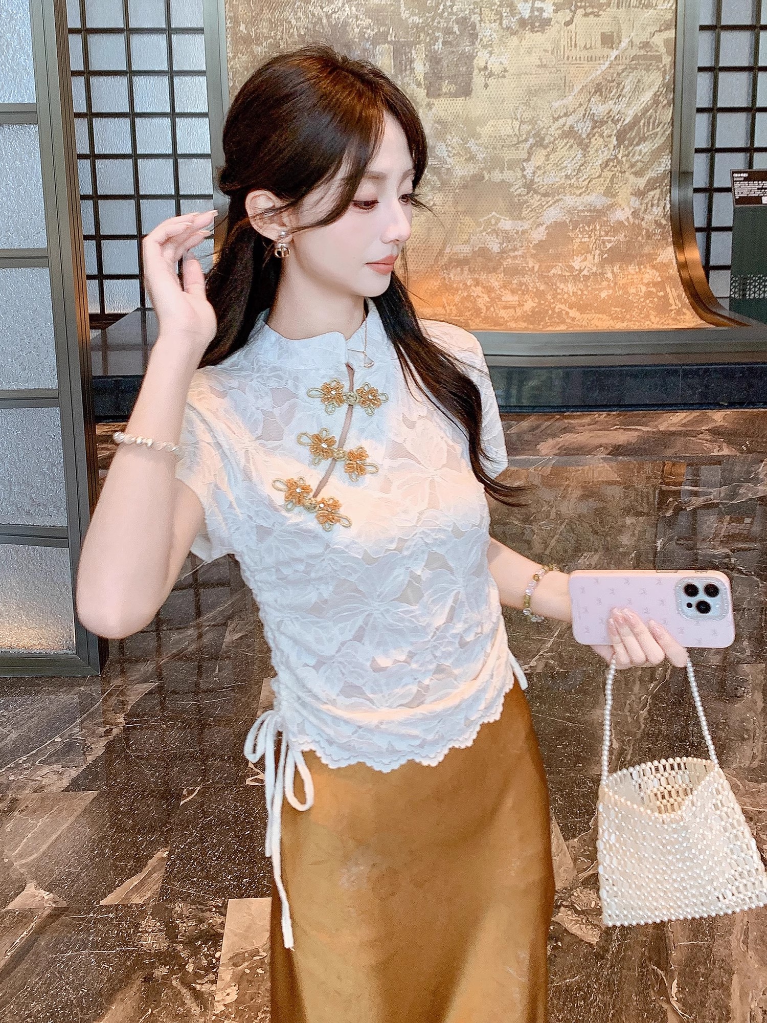 张心子【花影随行】气质蕾丝新中式盘扣旗袍上衣 U2506014