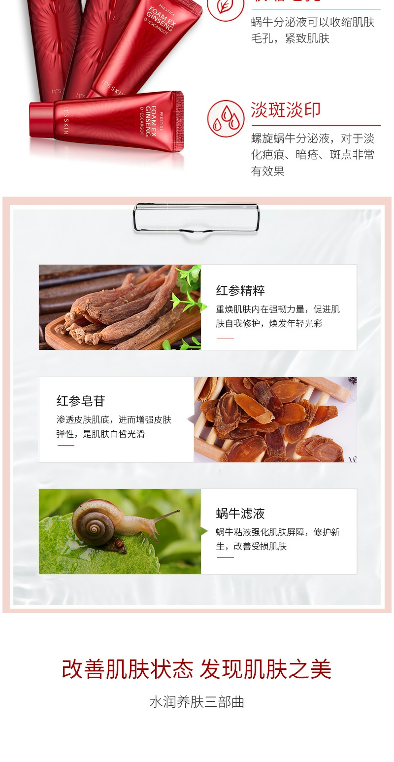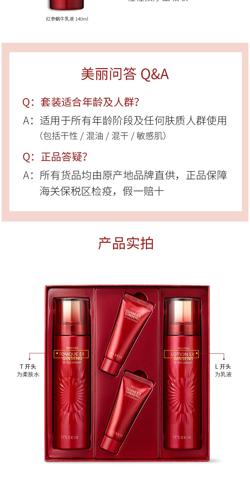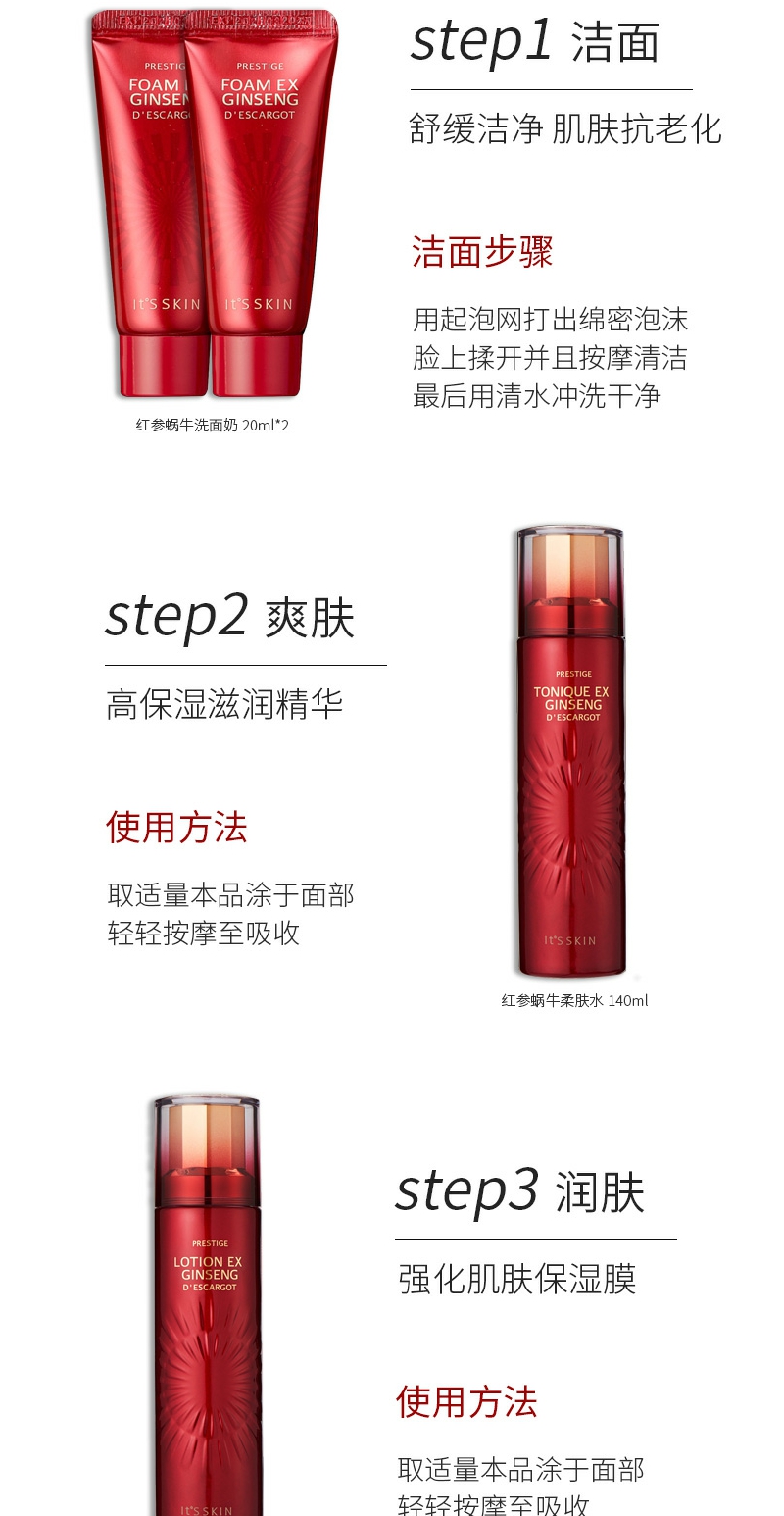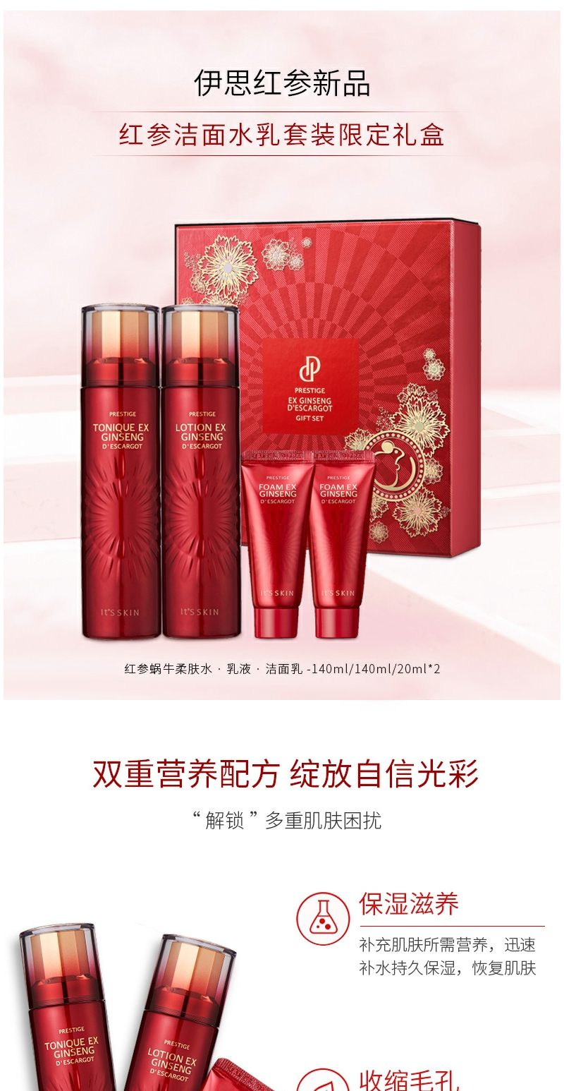 【YZ】韩国its skin伊思红参蜗牛水乳霜礼盒抗衰老护肤套装补水保湿修护