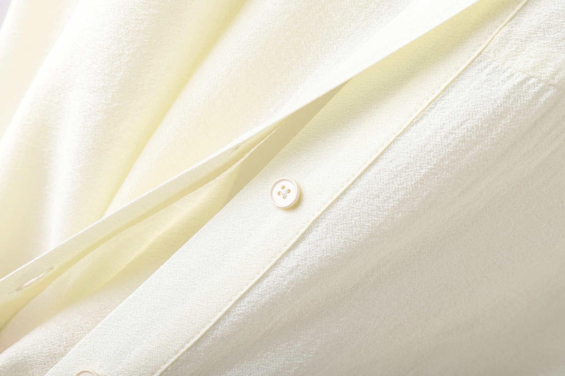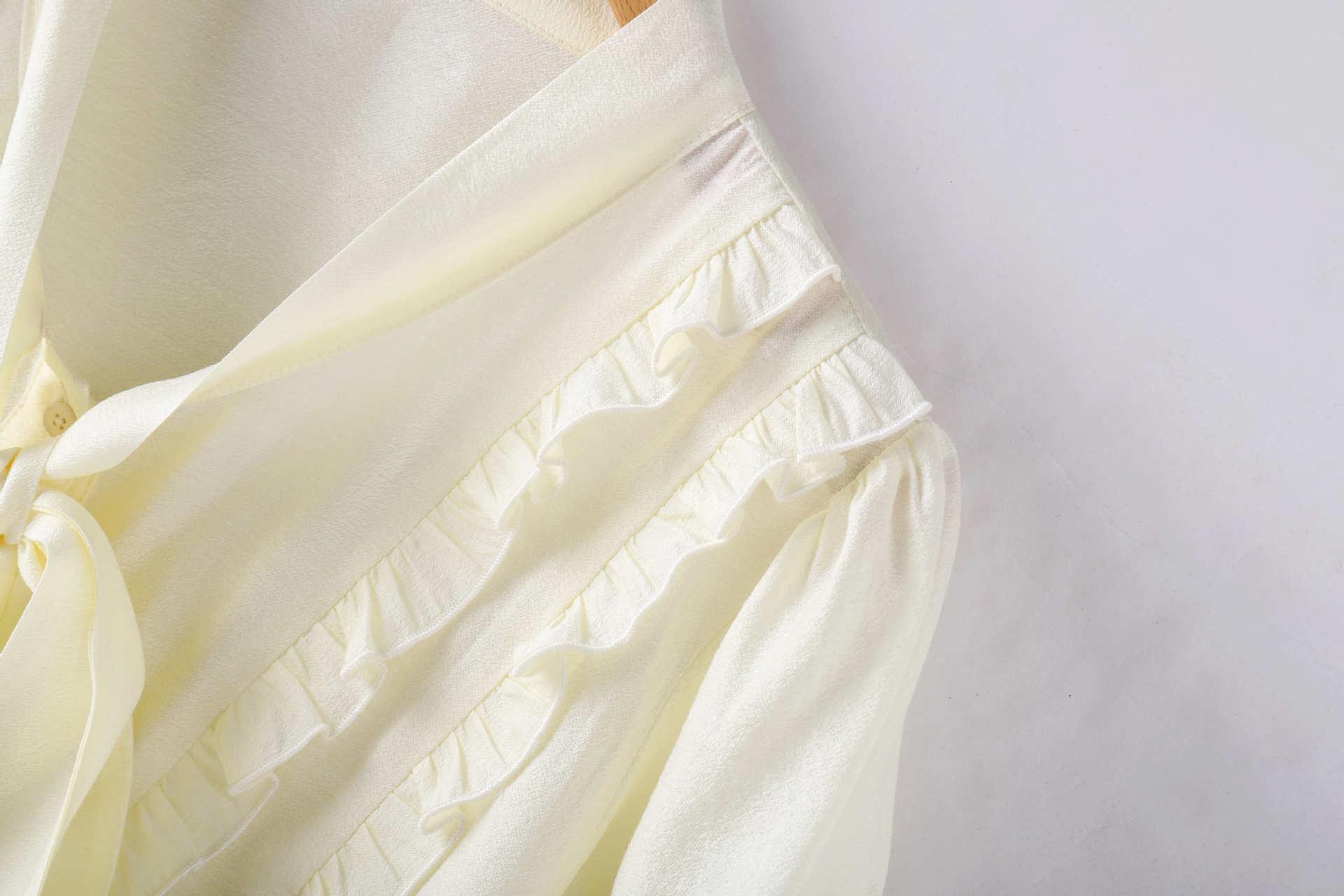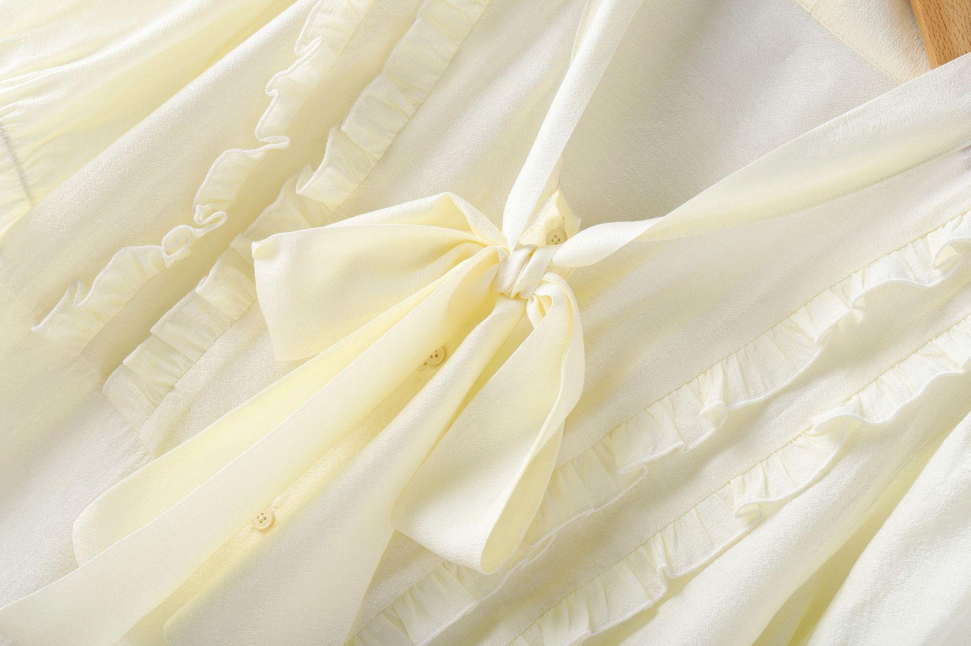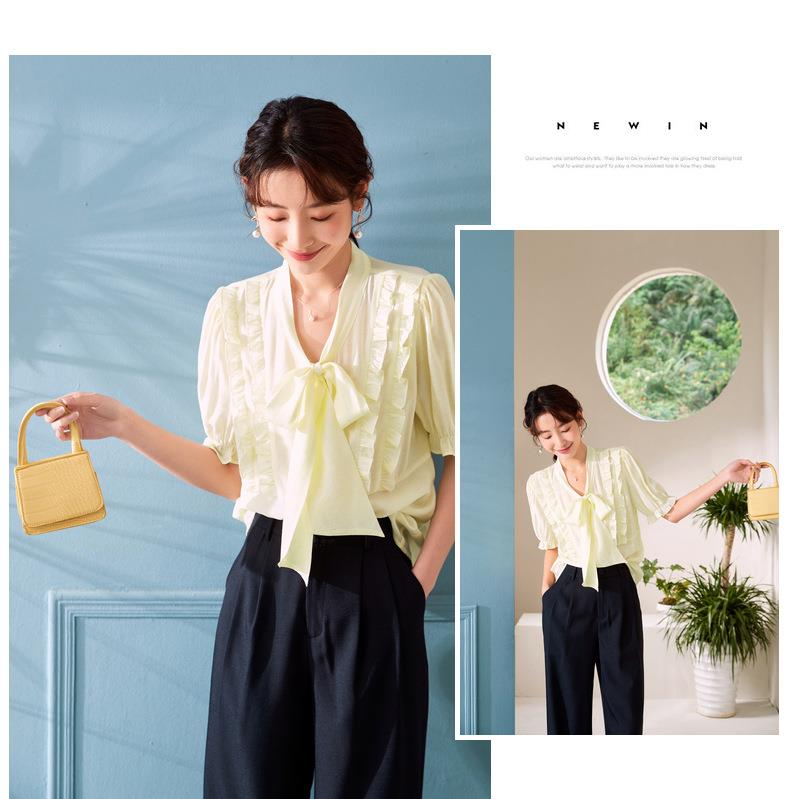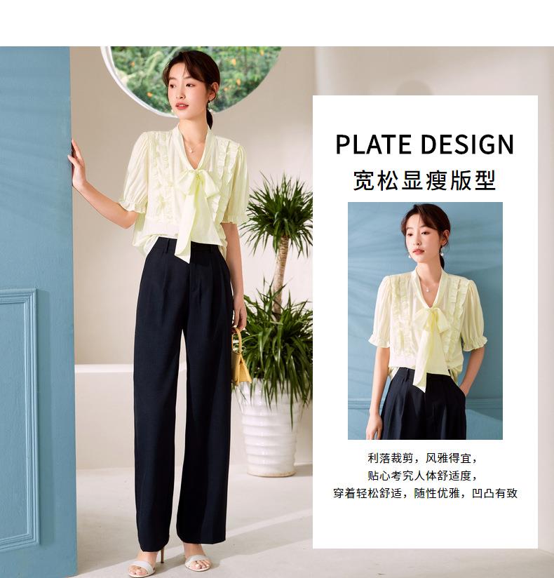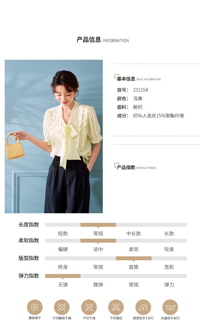 百姿 蝴蝶结木耳边衬衫女2023夏季新款法式优雅直筒短袖女装衬衣