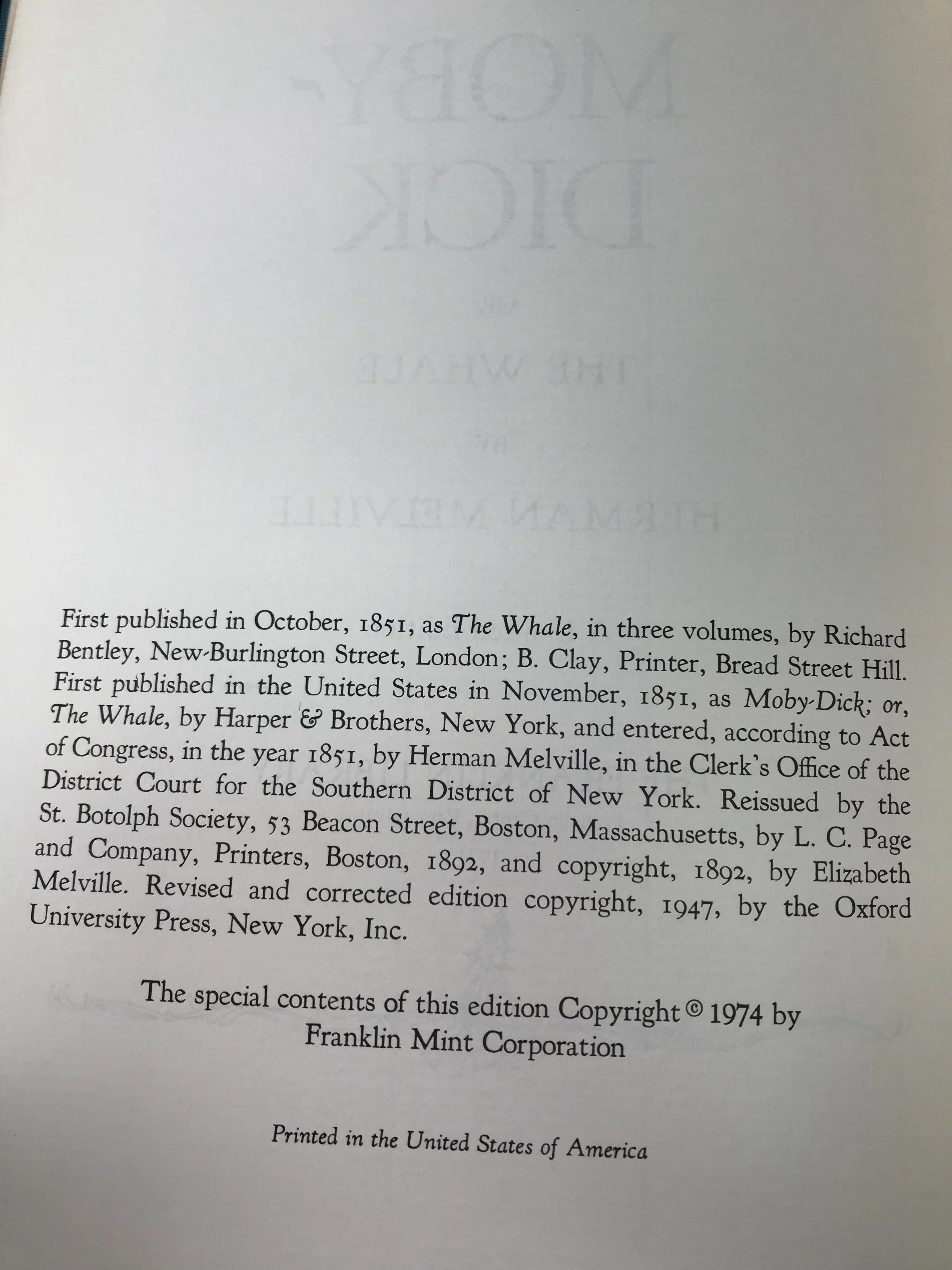 限量版!含藏书票 赫尔曼・梅尔维尔《白鲸》 配插图 富兰克林图书馆豪华皮装本