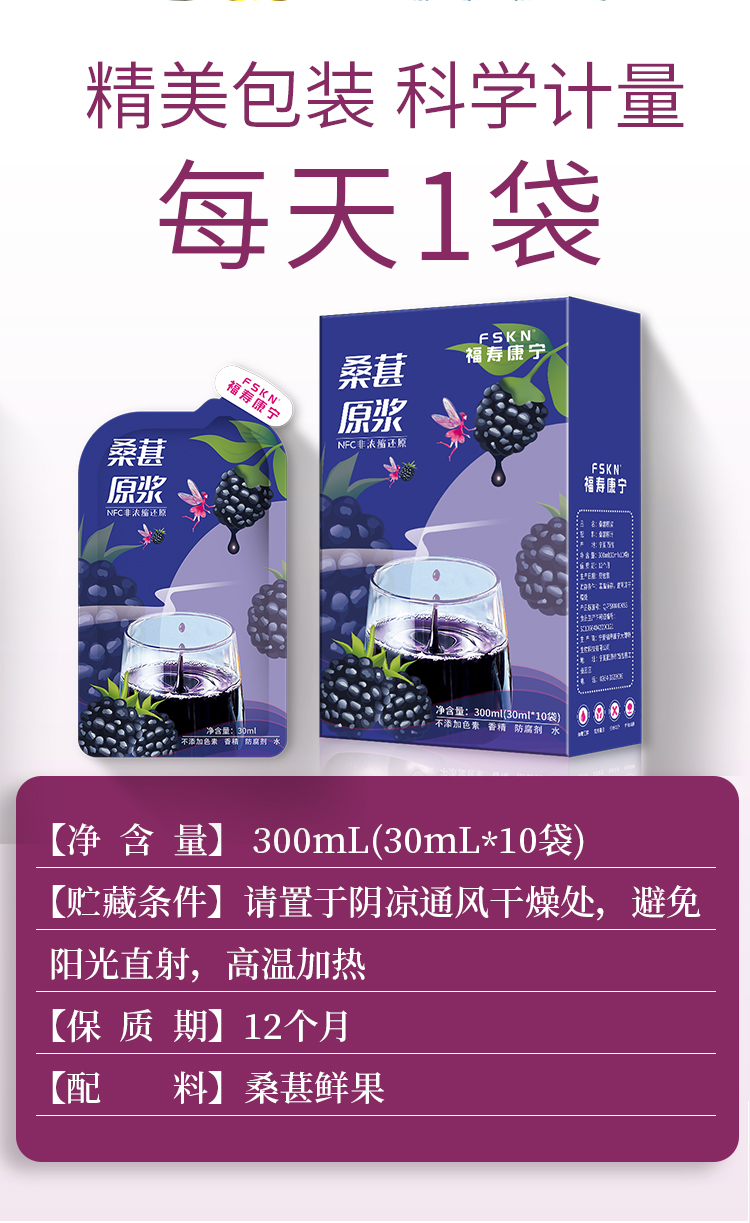 平价优选:宁夏桑葚原浆汁新鲜纯原浆,甘美温润30ml10袋*1盒/2盒