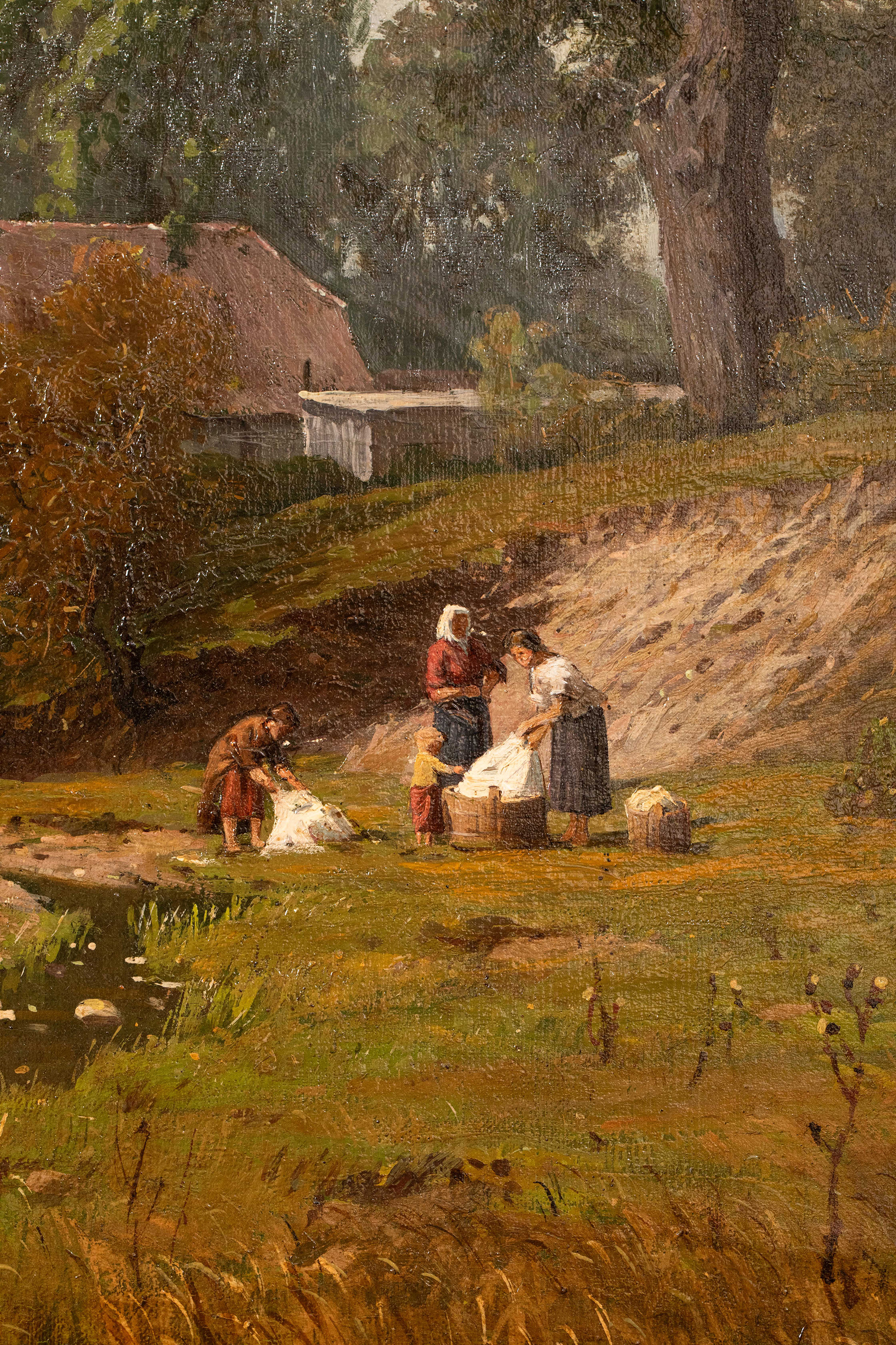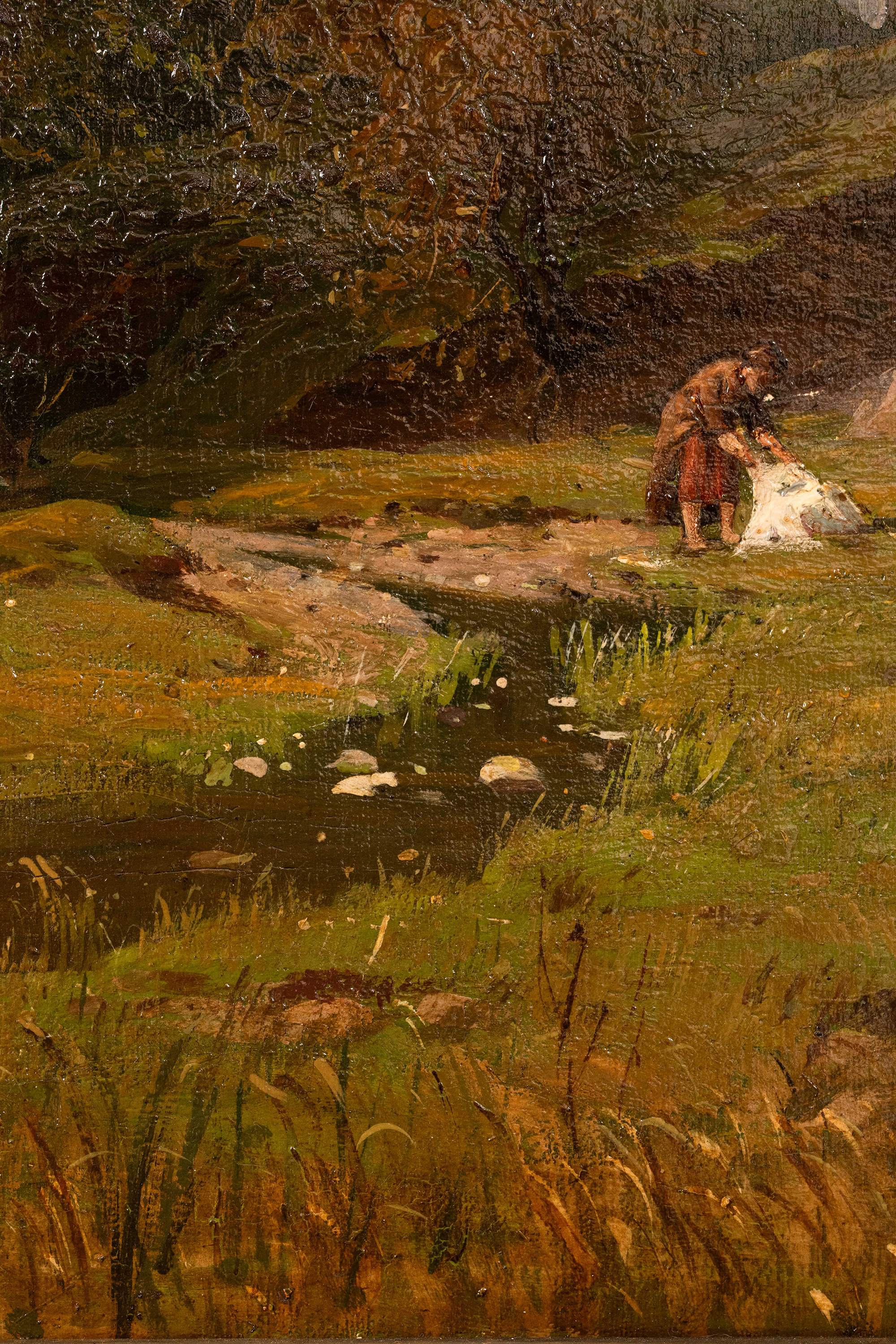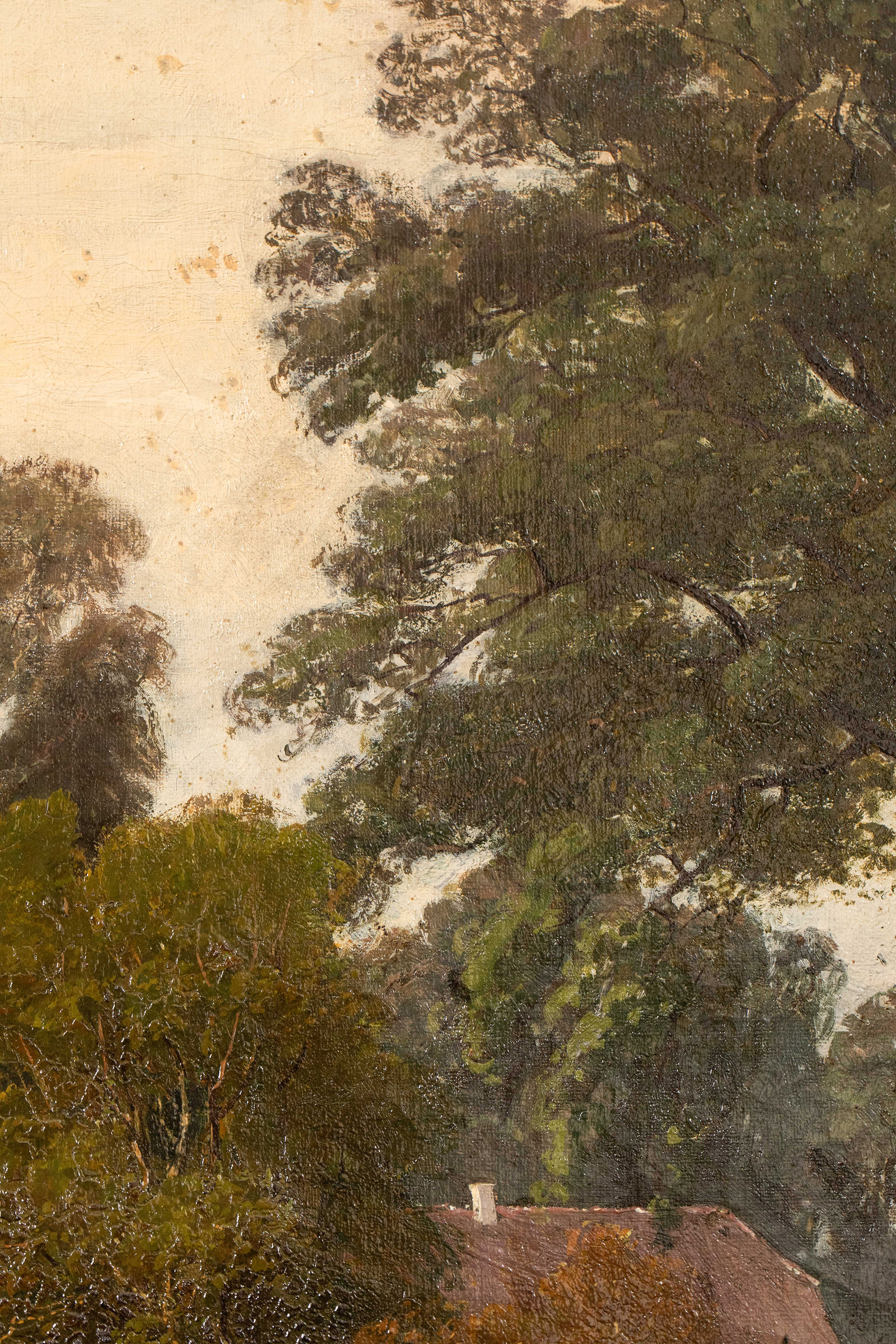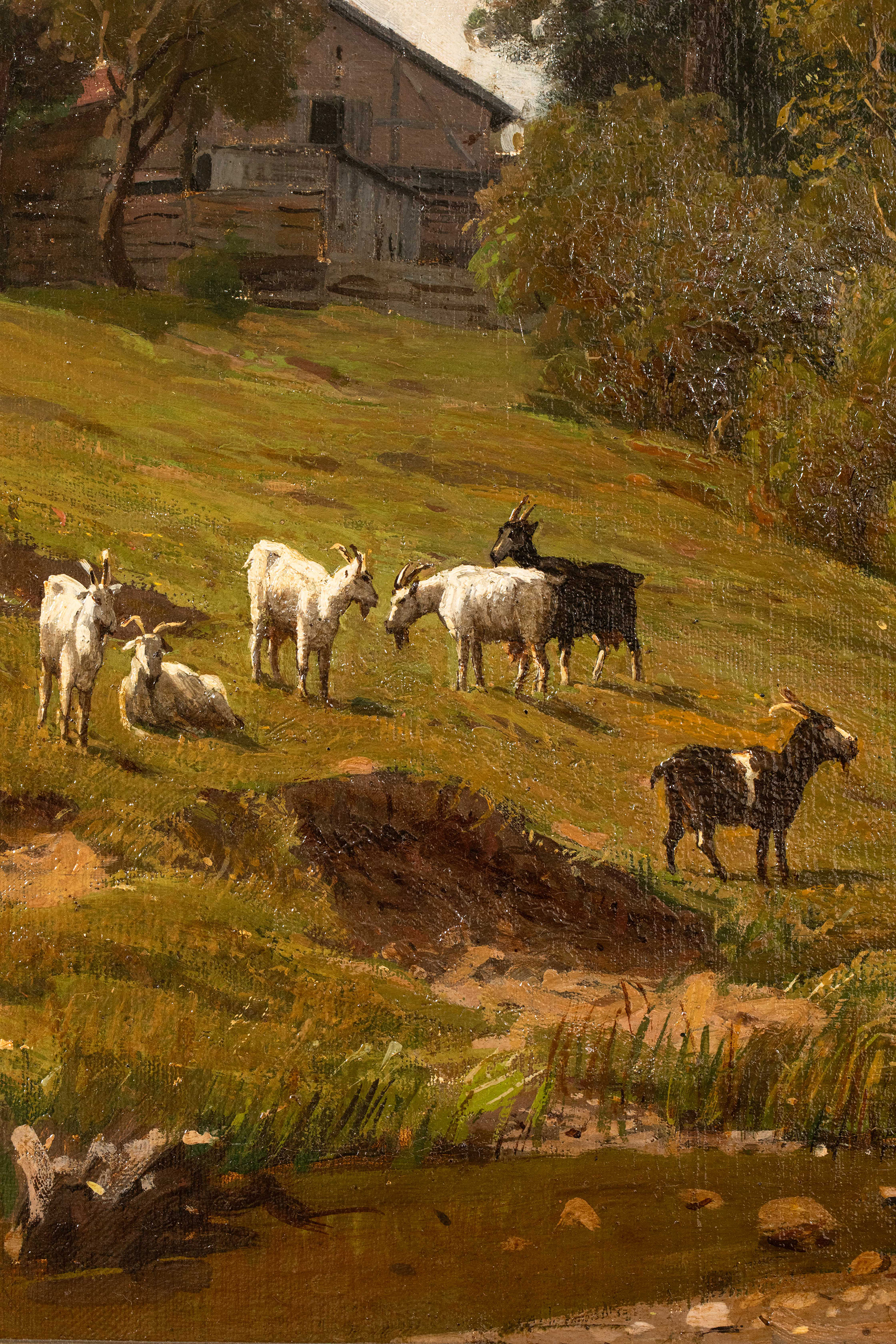 19世纪德国画家Fritz Daegling签名出品大型风景主题布面油画《人物与动物山水》