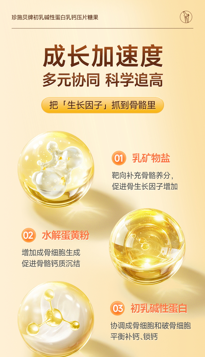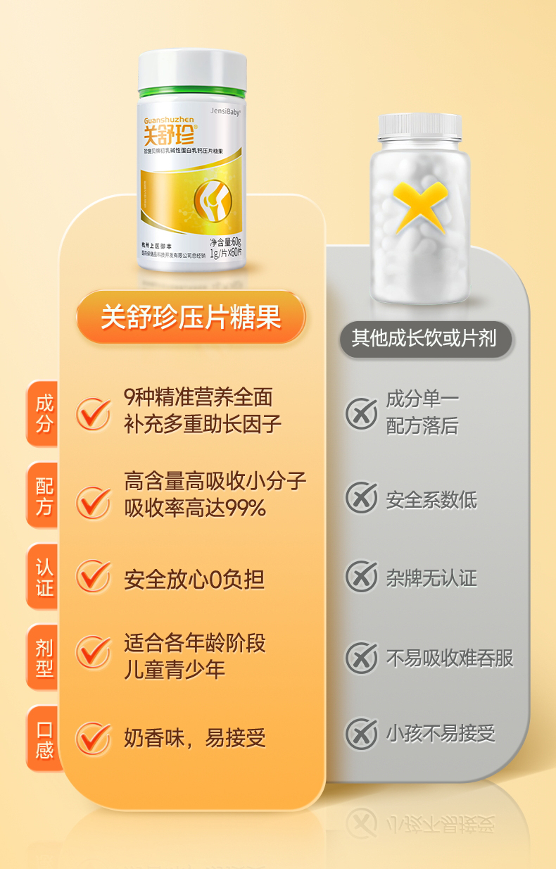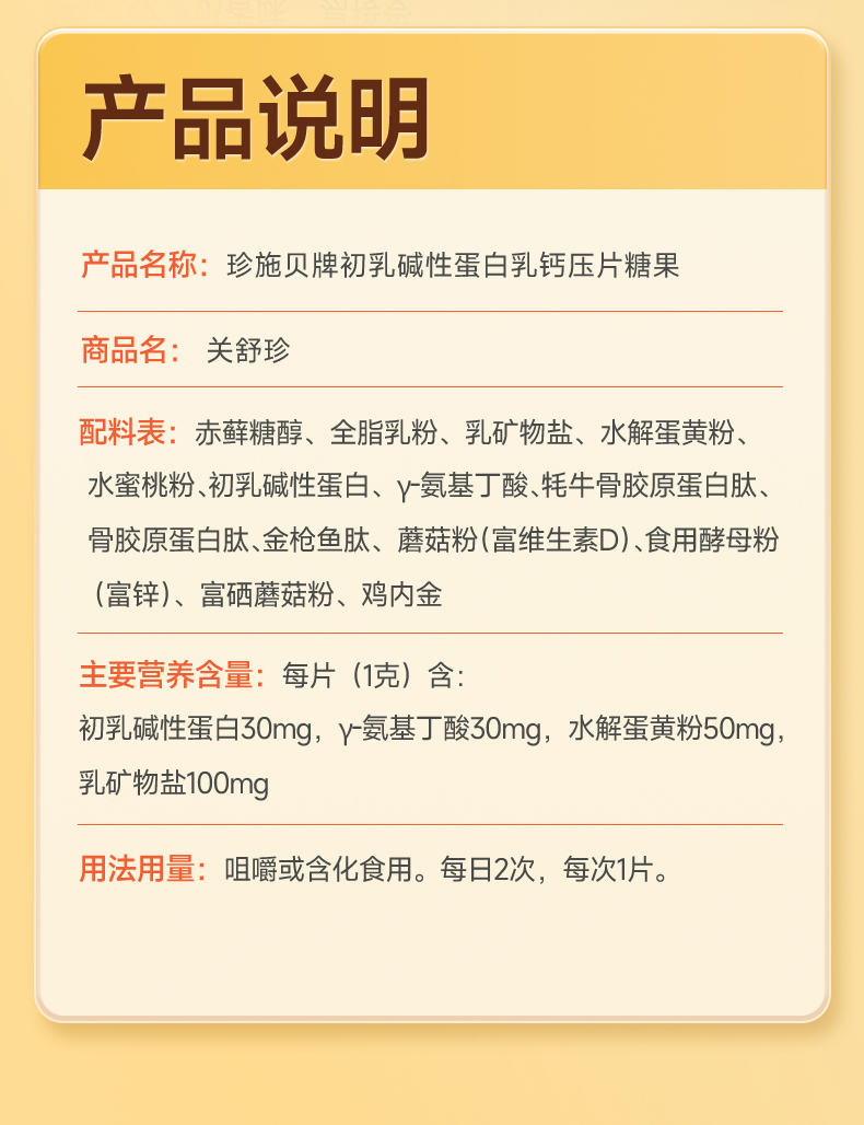 关舒珍初乳碱性蛋白乳钙片γ-氨基丁酸 水解蛋黄增高关节骨骼发育