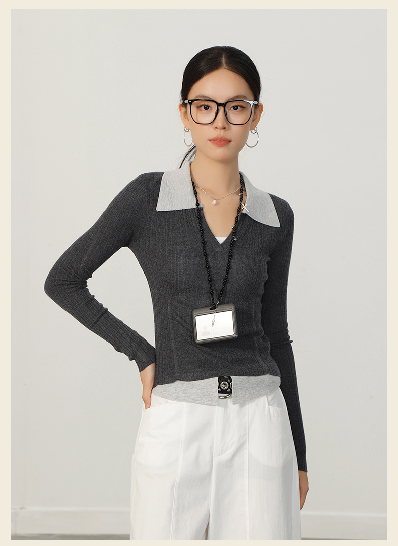 极简撞色翻领针织衫-纪念日百货门店同款164294164