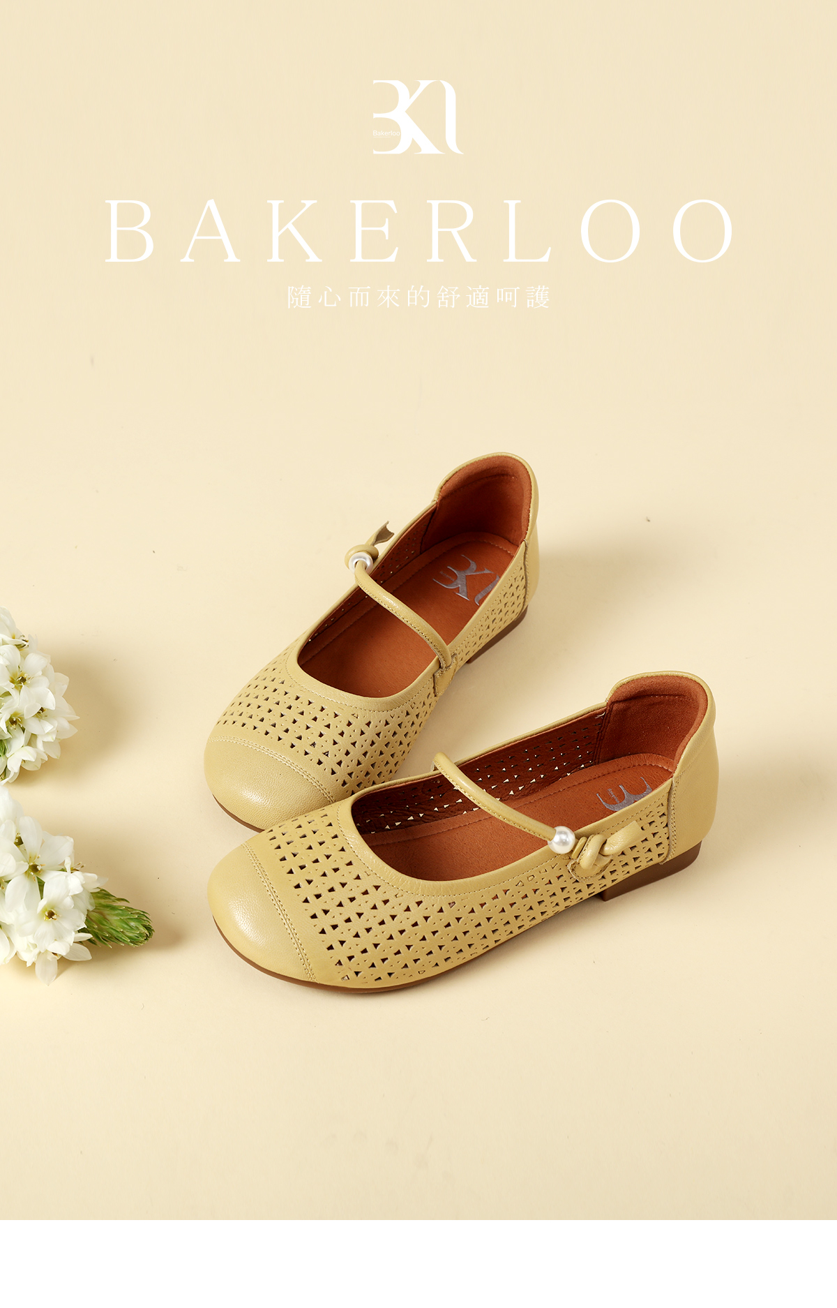 BAKERLOO圆头镂空细带平跟女鞋AD158