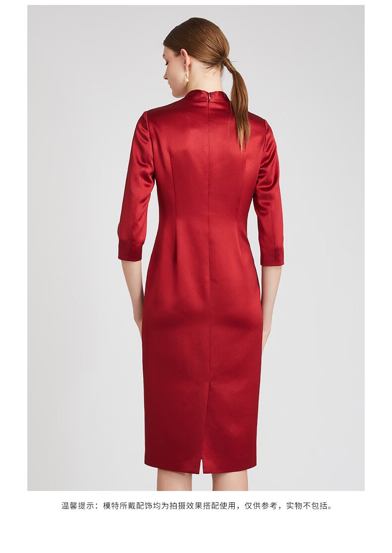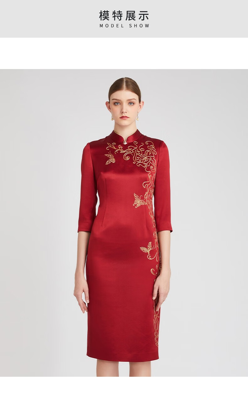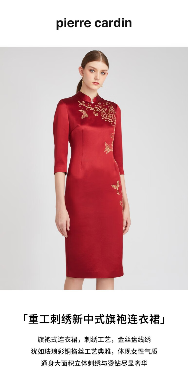 皮尔卡丹秋新款简约通勤淑女修身刺绣连衣裙P2306E2989T0