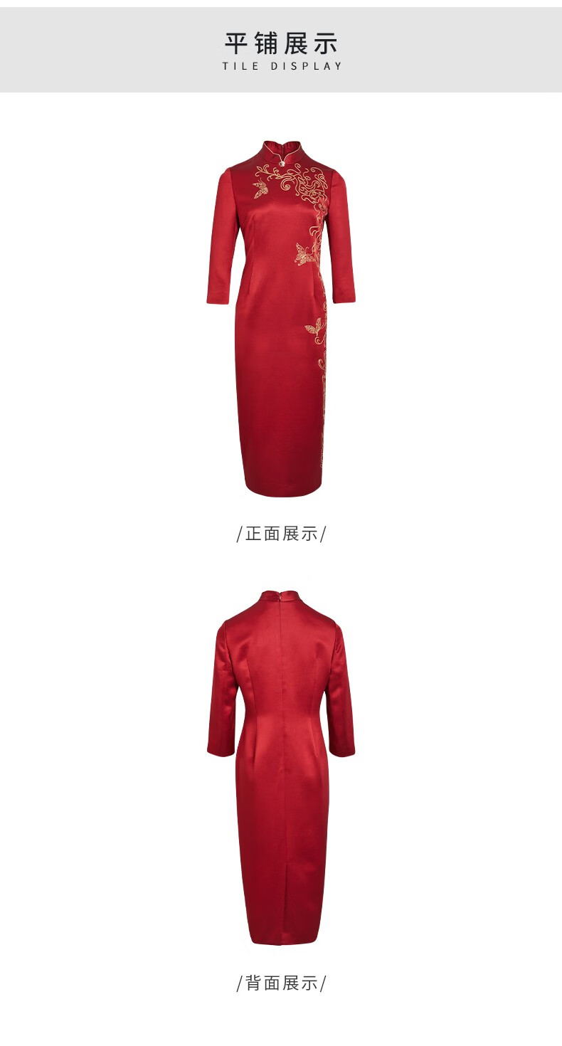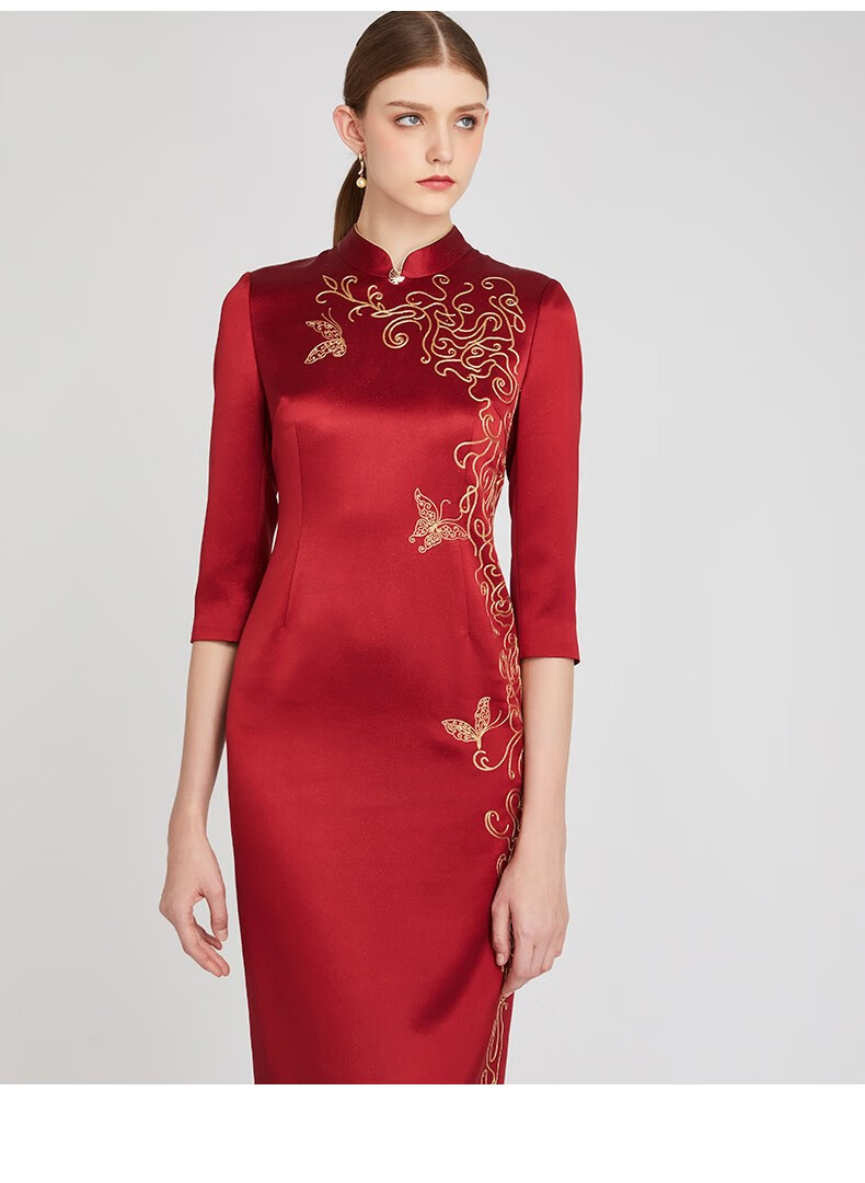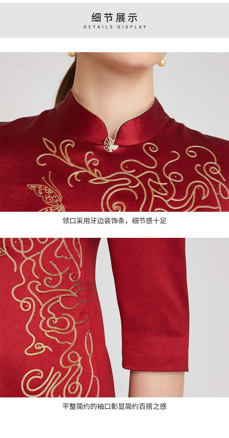 皮尔卡丹秋新款简约通勤淑女修身刺绣连衣裙P2306E2989T0