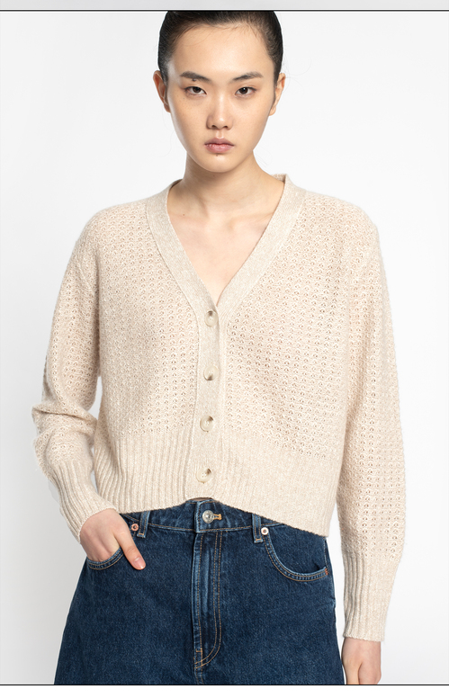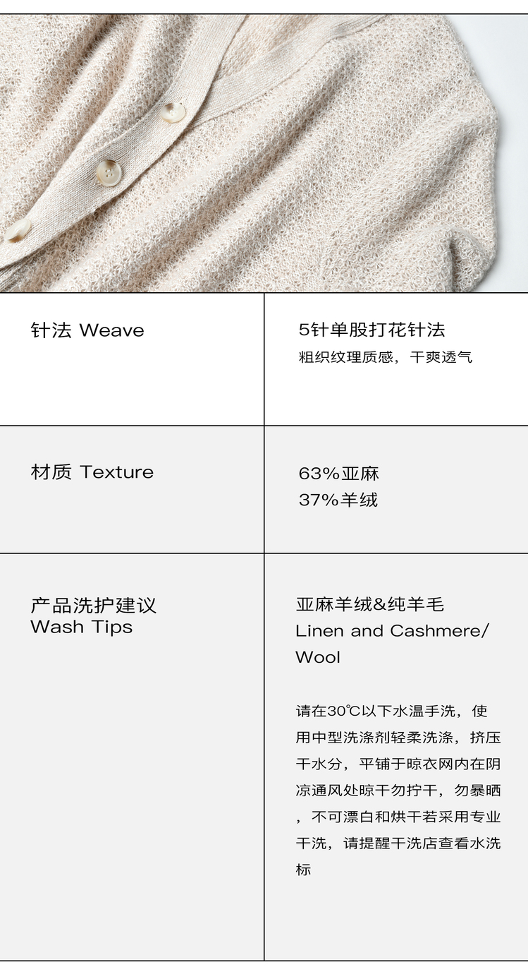 2022新款女士亚麻羊绒5针单股打花针法开衫