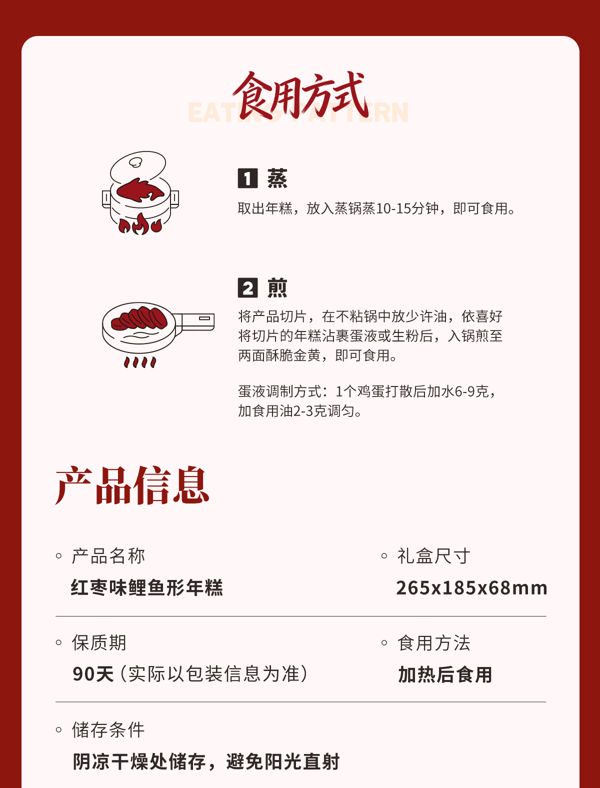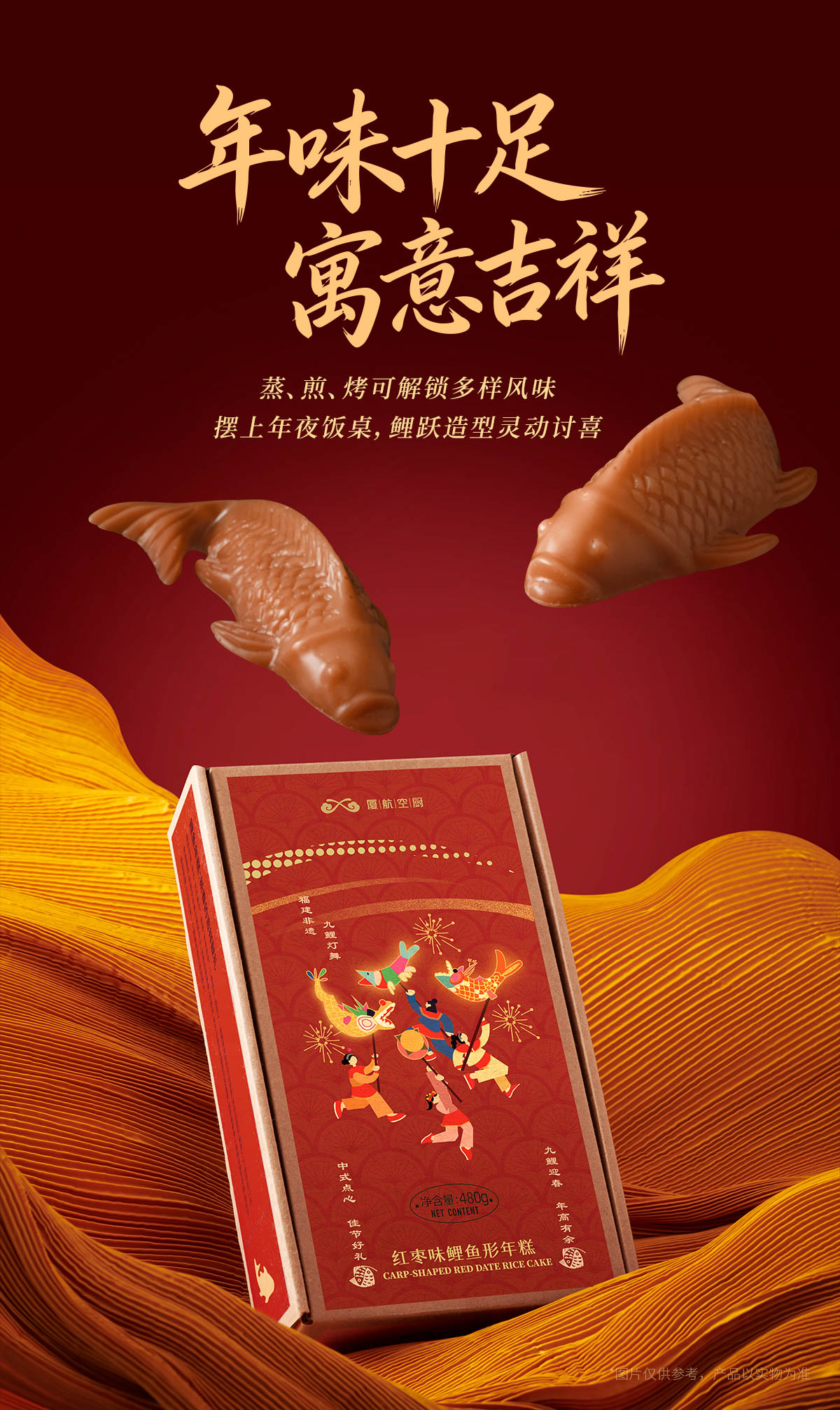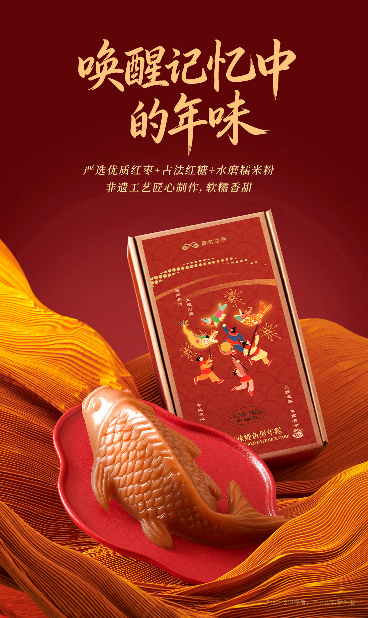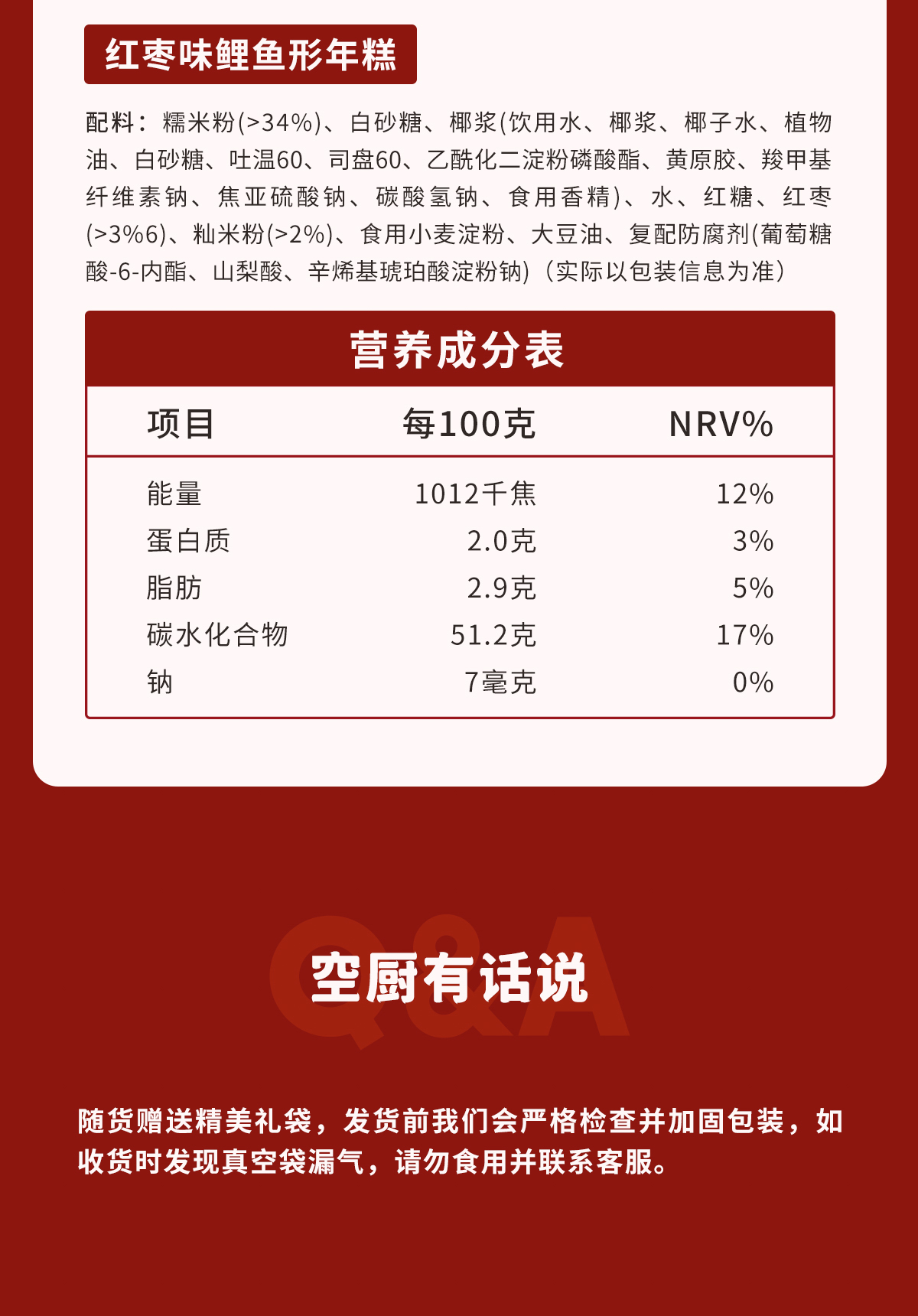 红枣味鲤鱼形年糕优质红枣古法红糖水磨糯米粉软糯Q弹香甜温润 红枣鲤鱼年糕(共480g)
