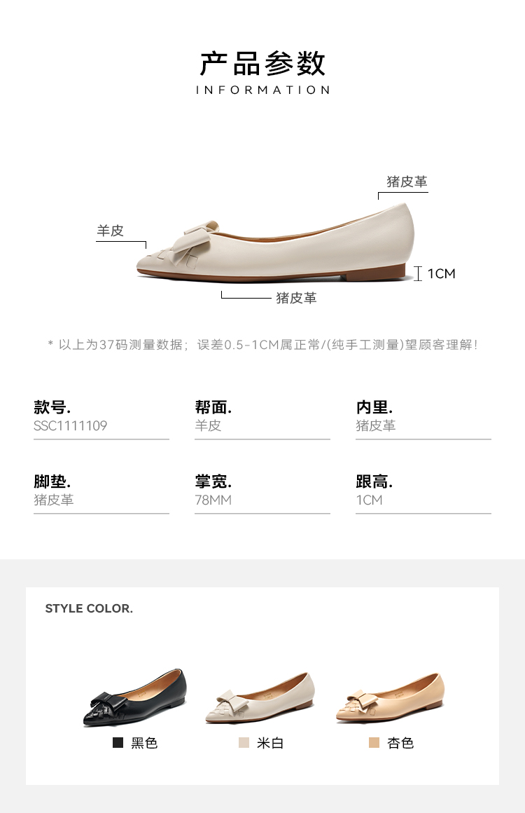 星期六蝴蝶结优雅尖头平底鞋SSC1111109