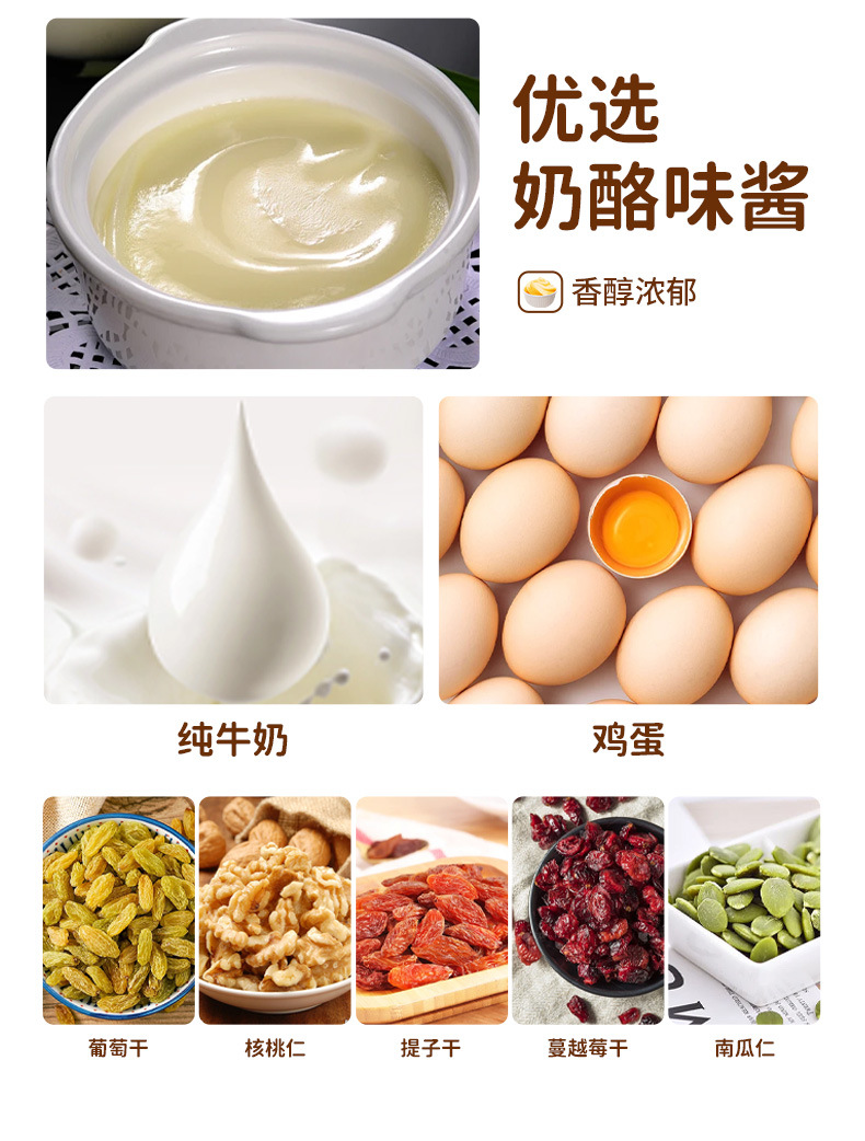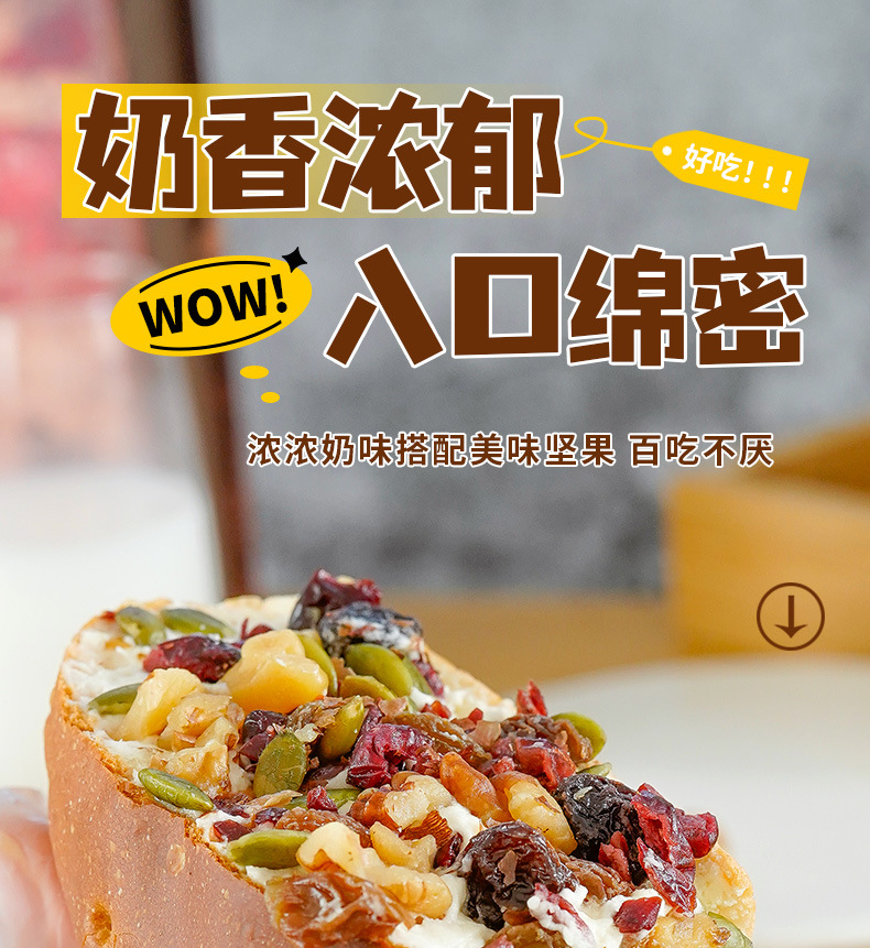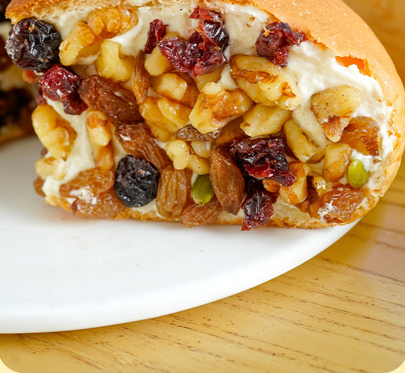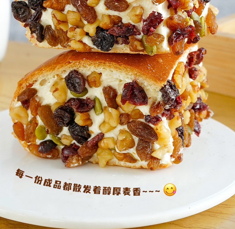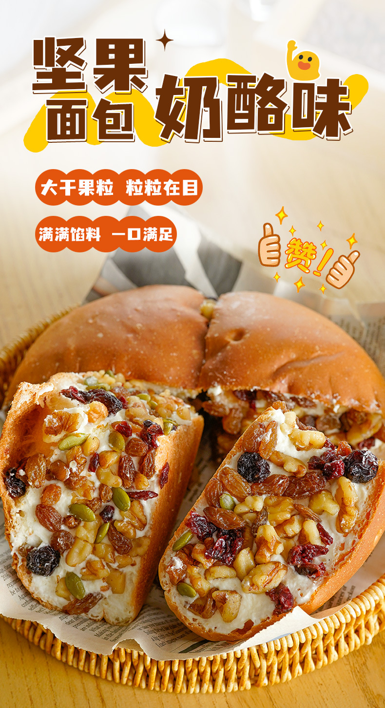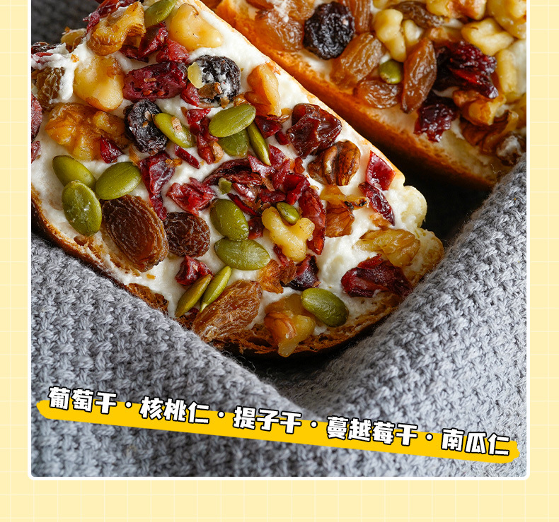 【超多果仁!坚果奶酪味夹心果仁面包】0反式脂肪酸,满满馅料葡萄干,核桃仁,提子干,夢越莓干,南瓜仁约430g/盒代餐早餐饱腹新鲜零食