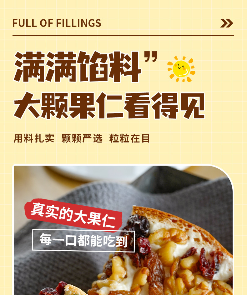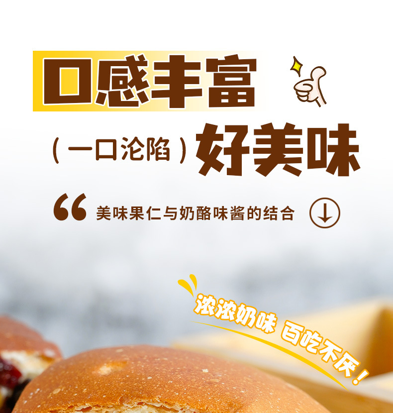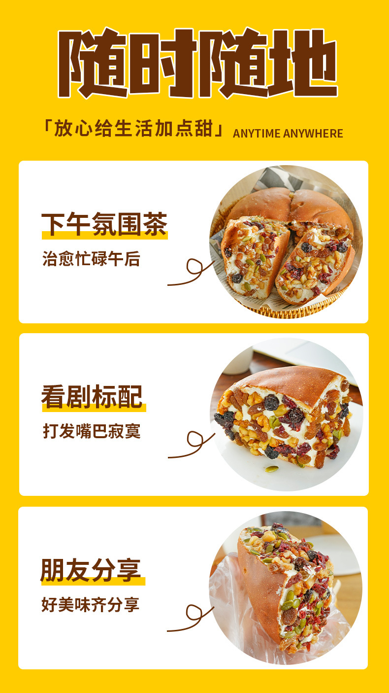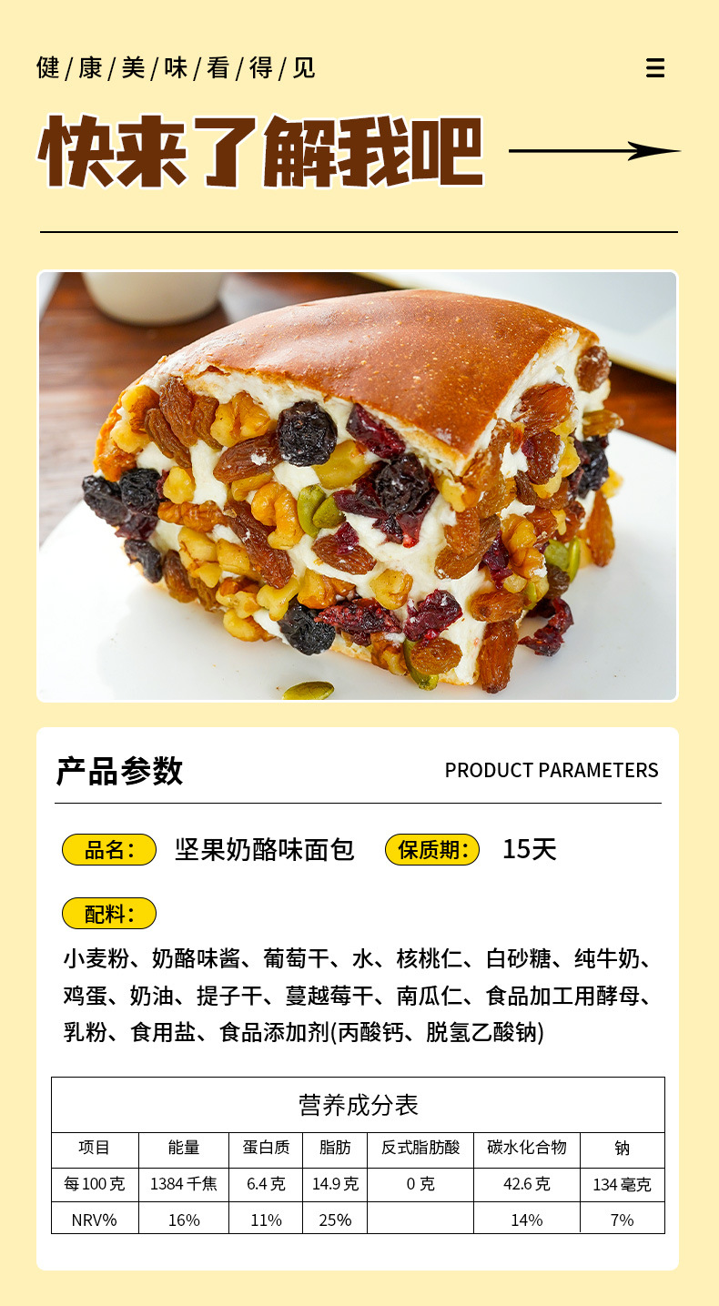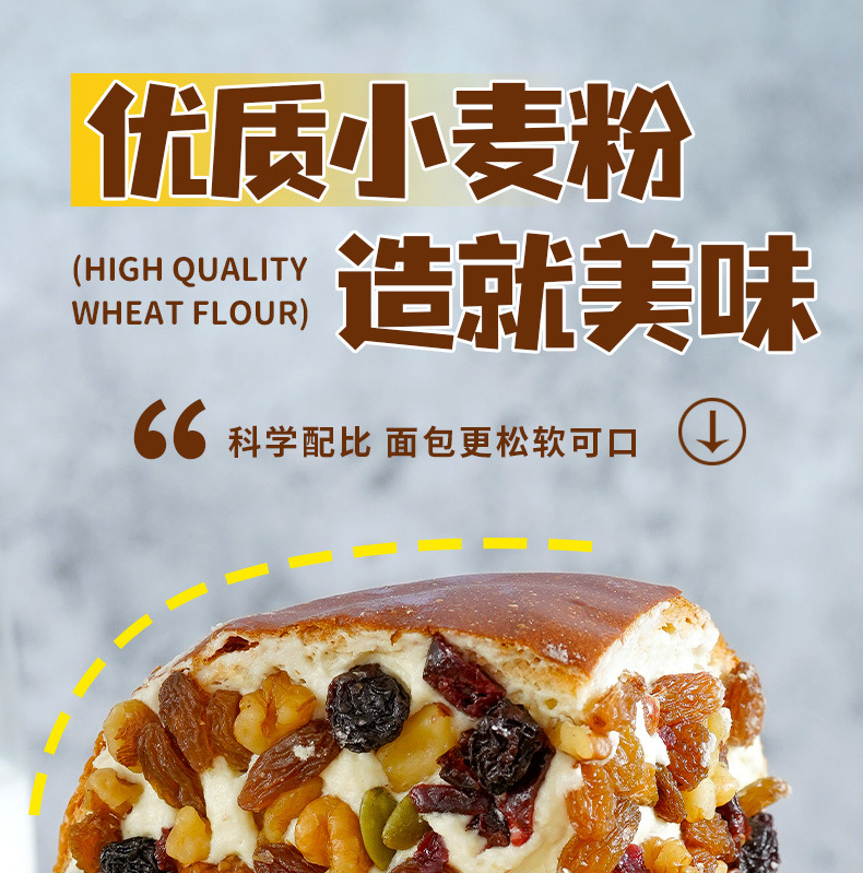 【超多果仁!坚果奶酪味夹心果仁面包】0反式脂肪酸,满满馅料葡萄干,核桃仁,提子干,夢越莓干,南瓜仁约430g/盒代餐早餐饱腹新鲜零食