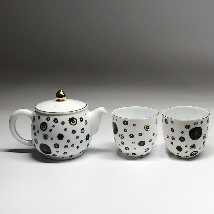 不仁斋 薛继业 水墨贴花眼纹双杯茶壶