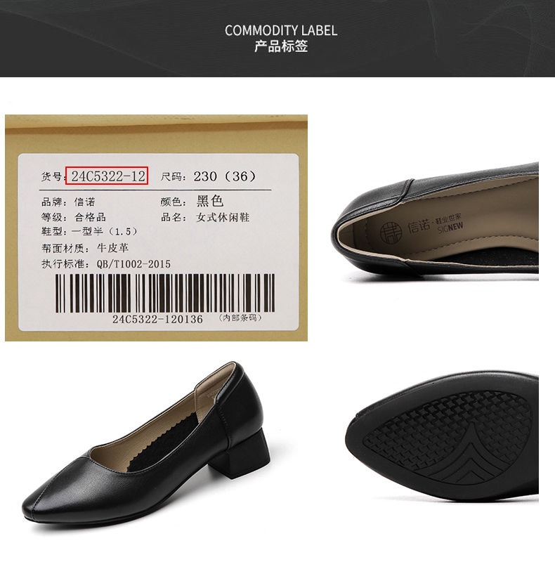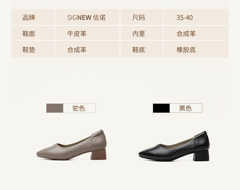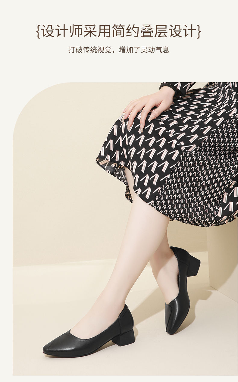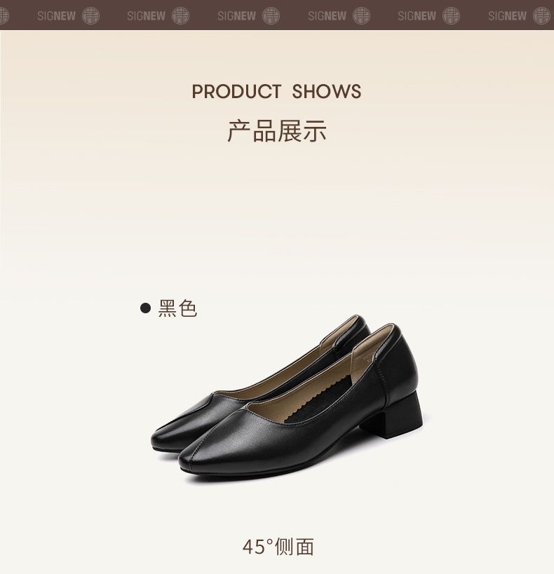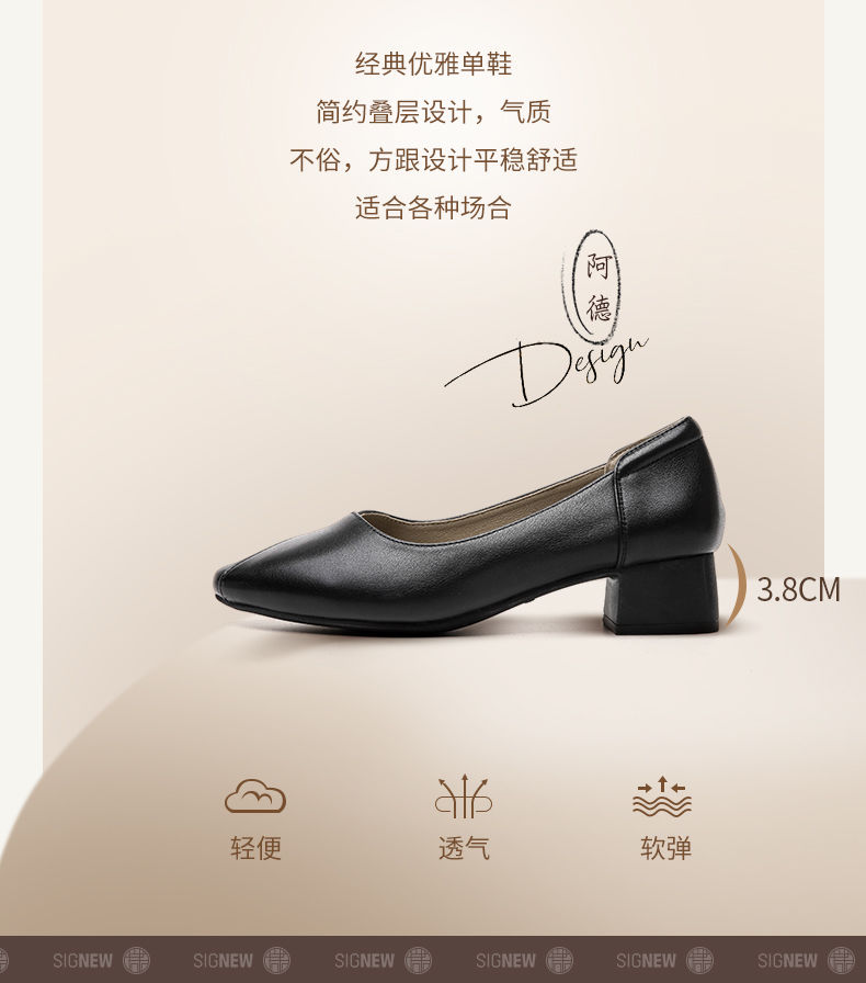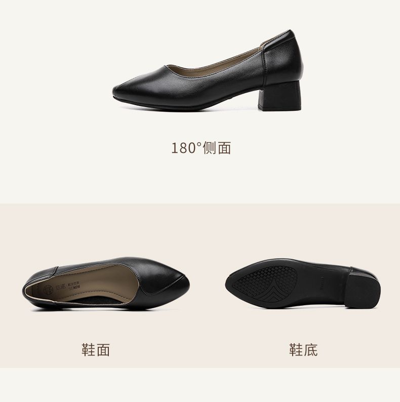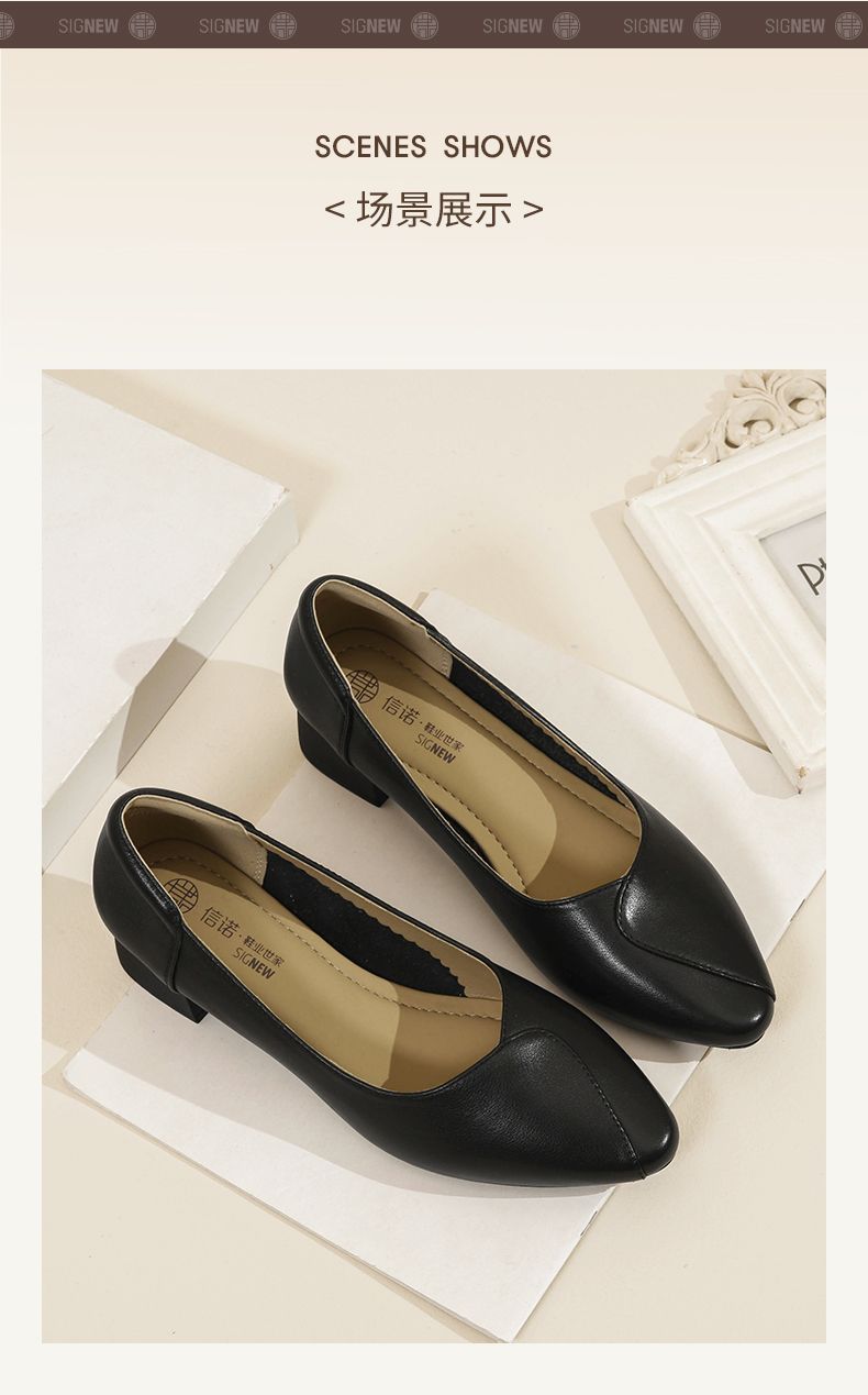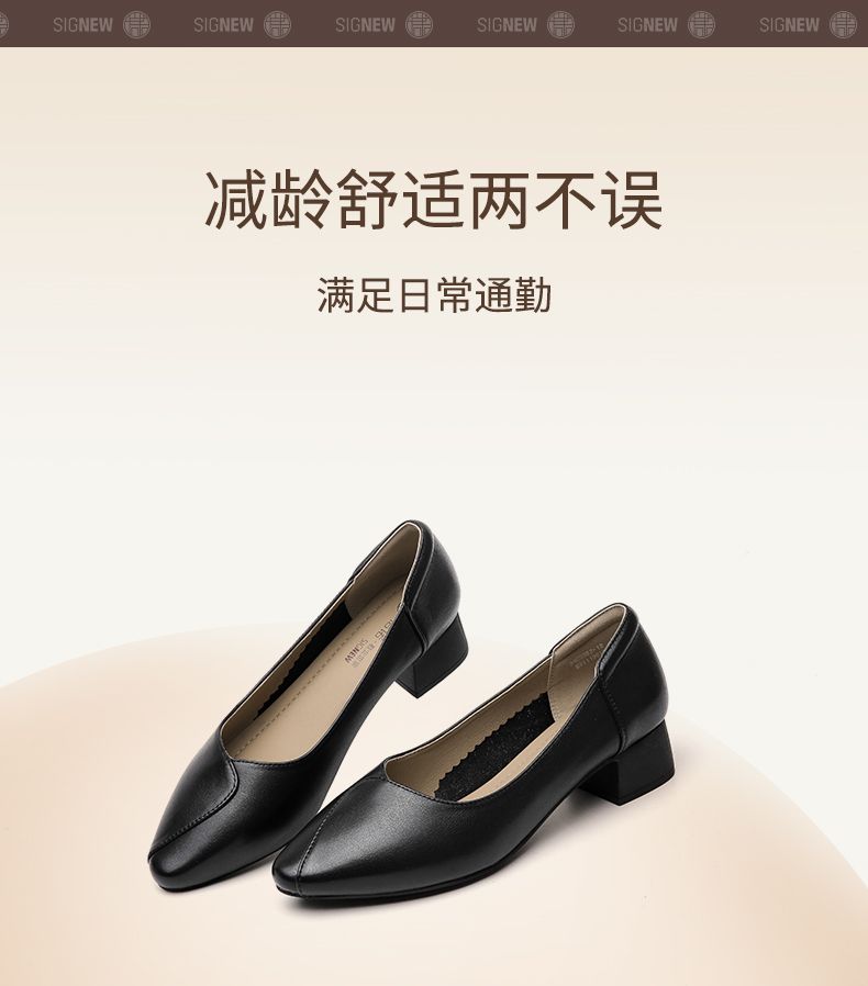 信诺舒适高跟鞋女2024新款春季尖头通勤真皮单鞋中跟妈妈婚礼皮鞋24C5322-12