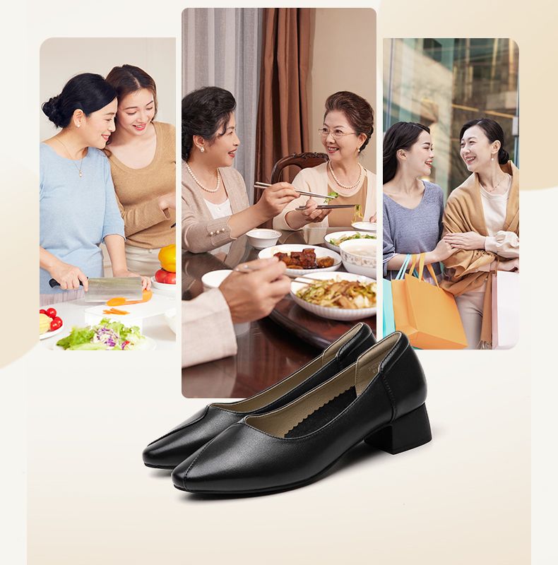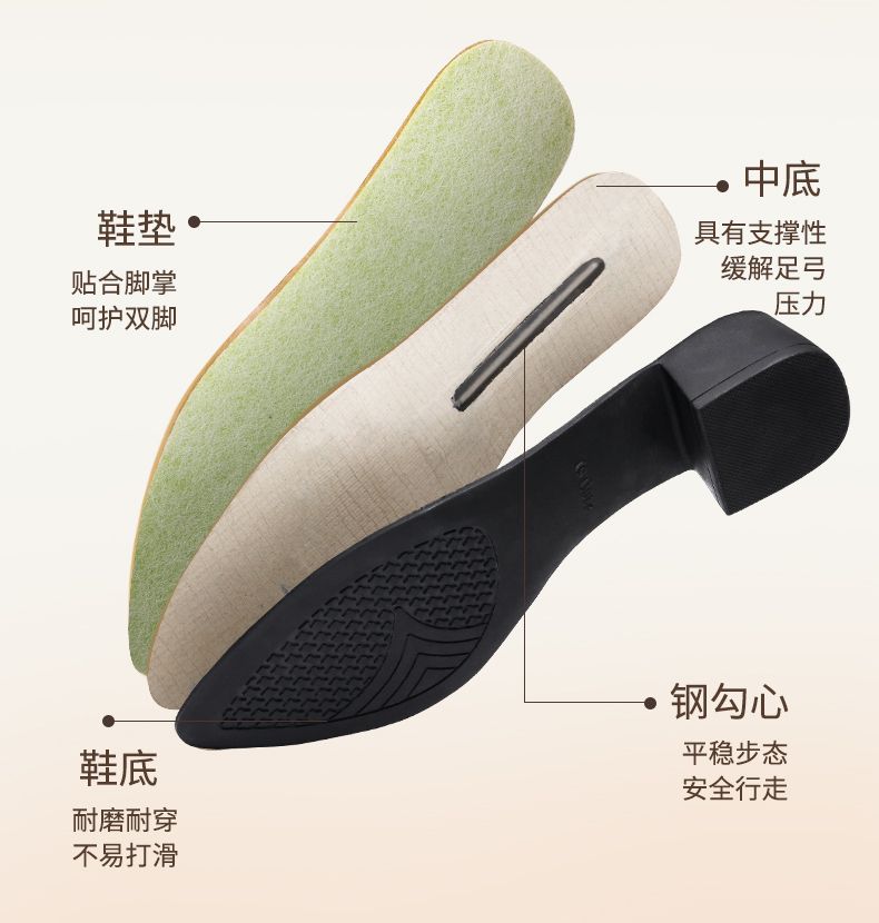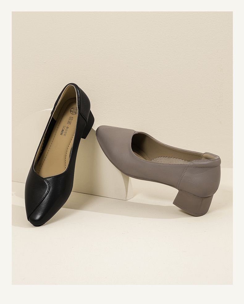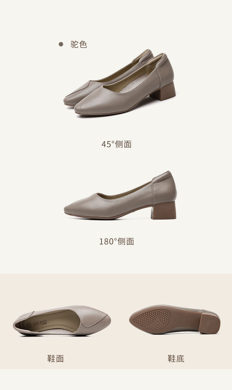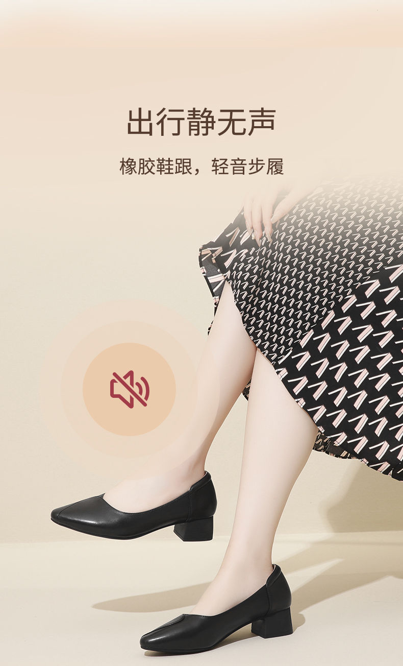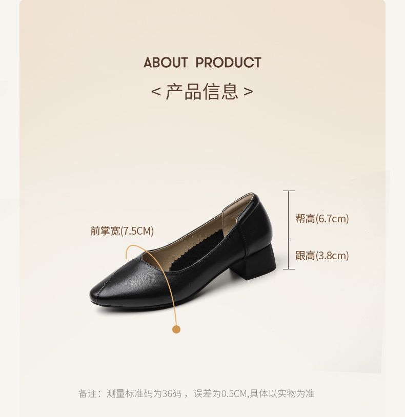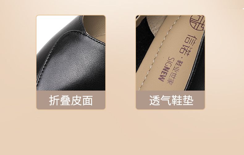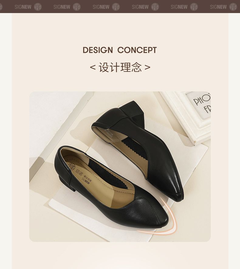 信诺舒适高跟鞋女2024新款春季尖头通勤真皮单鞋中跟妈妈婚礼皮鞋24C5322-12