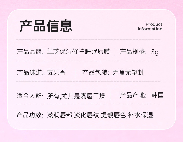 【专柜小样】韩国 LΛNEIGE兰芝 保湿修护睡眠唇膜 唇膏 2g