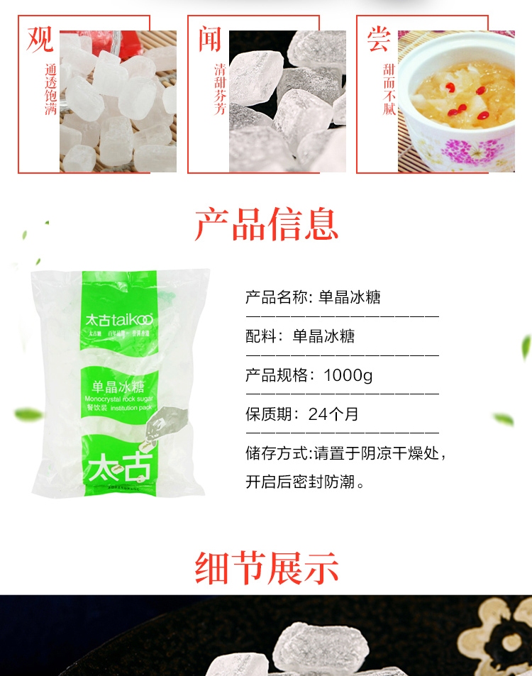 太古(taikoo)食糖 单晶冰糖 1kg 烘焙原料 冲饮调味 百年品牌 太古出品