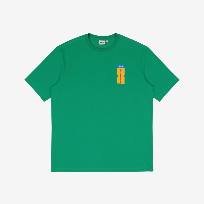 FILA斐乐韩国携手SUPER MAKCHE F标志宽松时尚短袖绿色JPY带授权招加盟代理