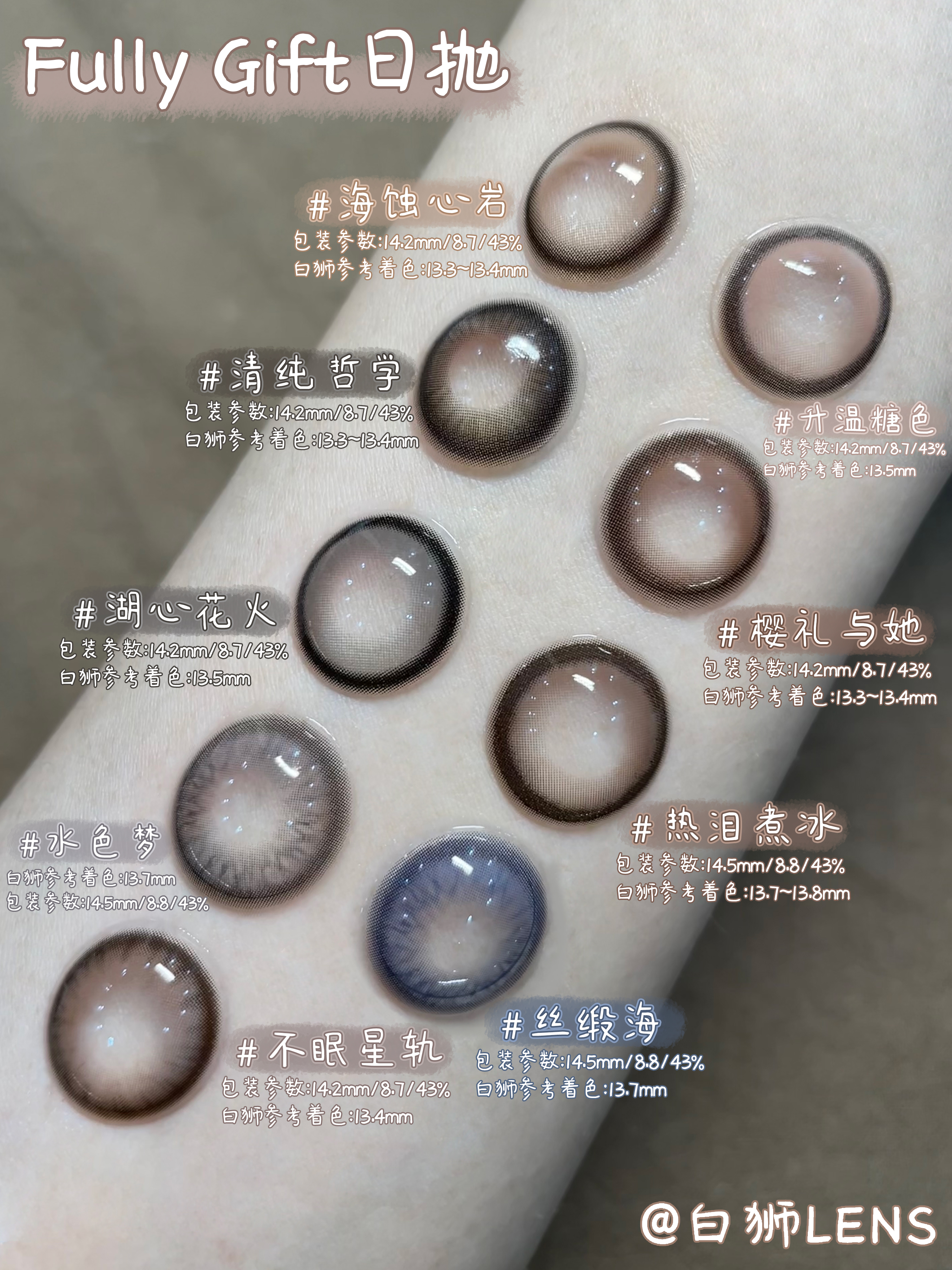 Fully Gift日抛 · 水色梦&丝缎海&日心说 14.5mm白狮参考着色大直径|日抛 一盒十片装