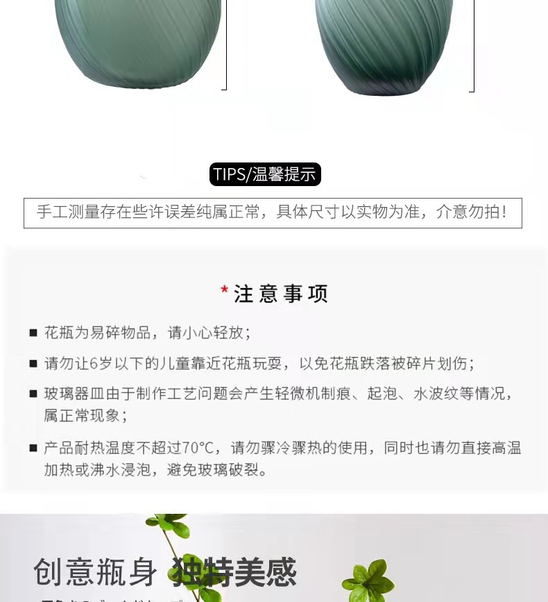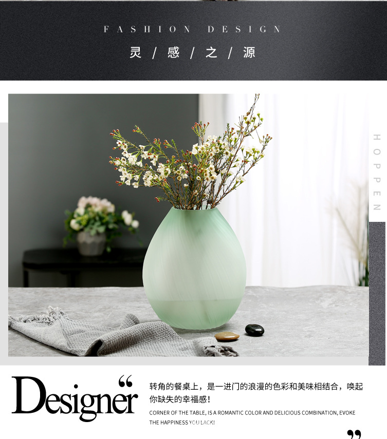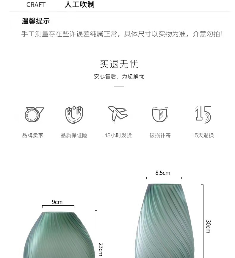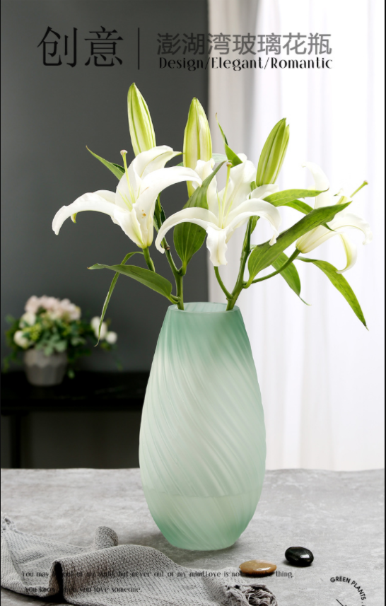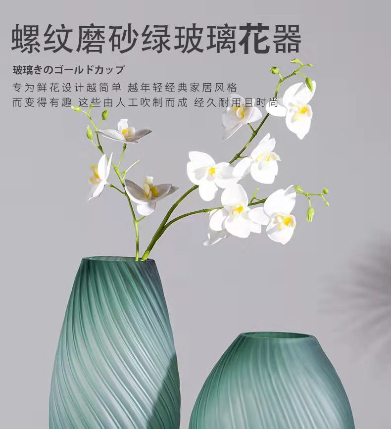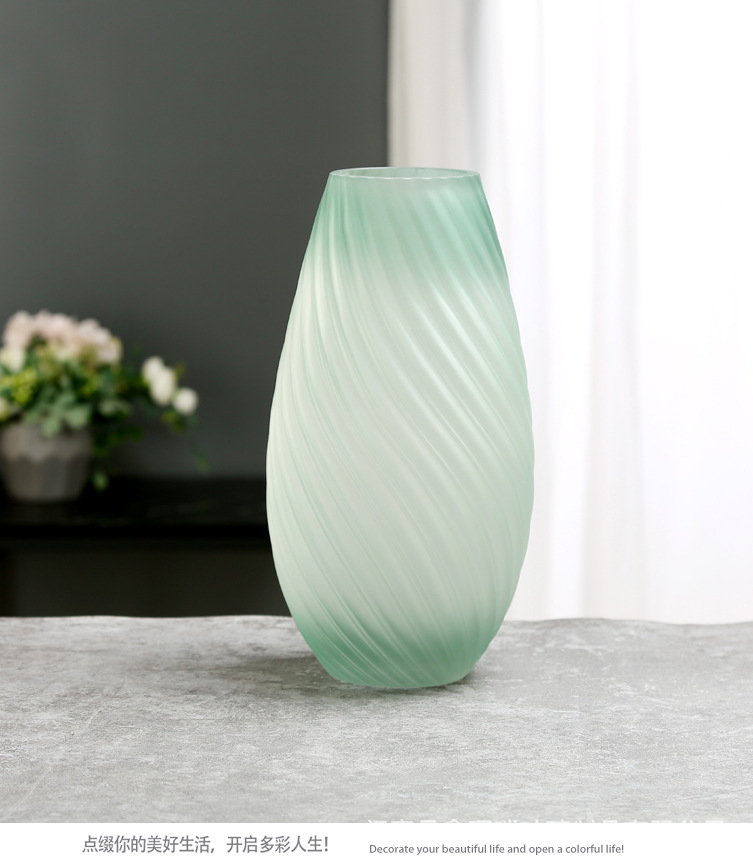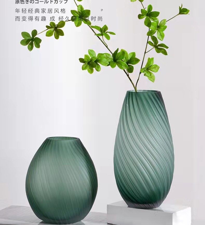 创意轻奢绿色蒙砂玻璃花瓶-23/30螺纹扭缸绿