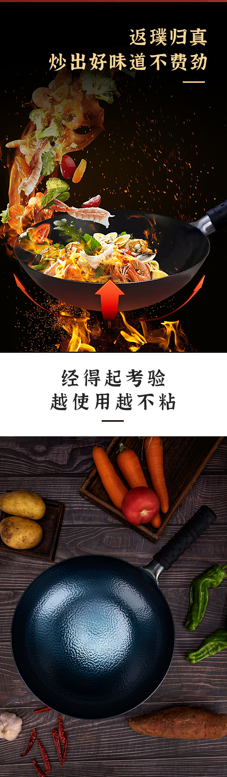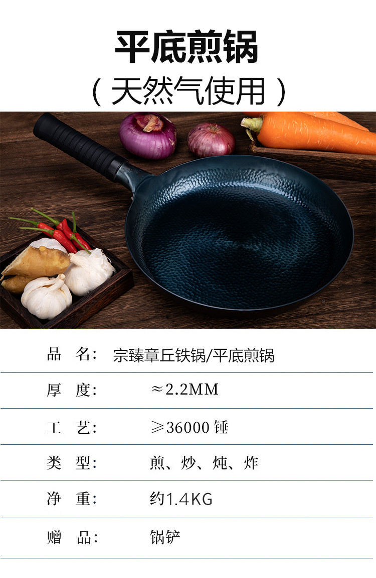【36000锤锻打】章丘手工铁锅鱼鳞纹不粘锅,平底煎锅铁锅【227-3】