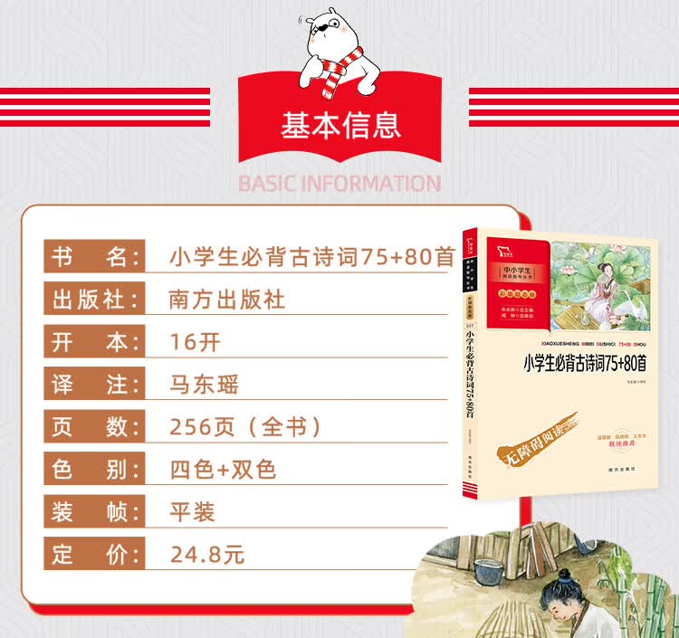 (仓发) 小学生必背古诗词75+80首 学生课外阅读指导丛书 附带阅读耐力记录表 /南方出版社/9787550166615