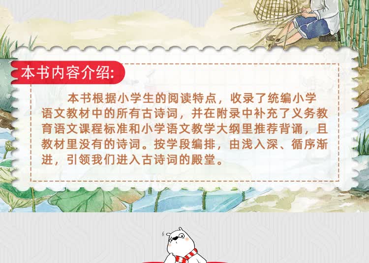 本书根据小学生的阅读特点,收录了统编小学语文教材中的所有古诗词,并在附录中补充了义务教育语文课程标准和小学语文教学大纲里推荐背诵,且教材里没有的诗词。按学段编排,由浅入深、循序渐进,引领我们进入古诗词的殿堂。