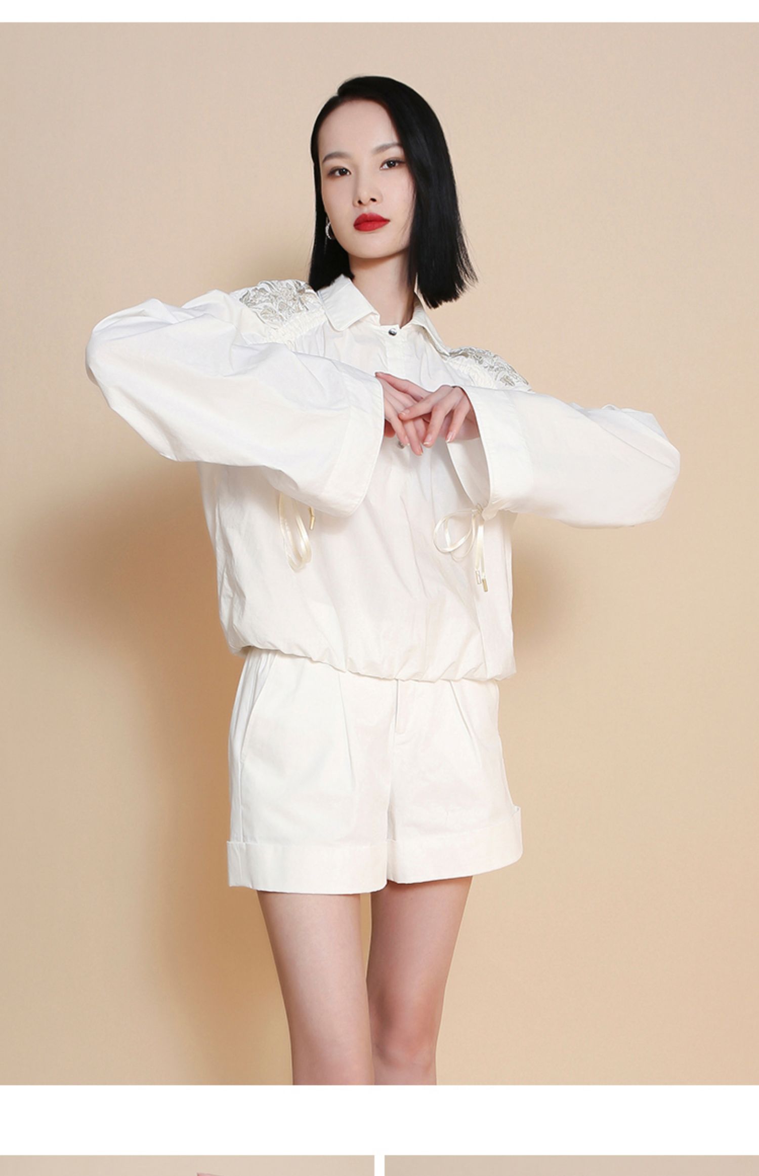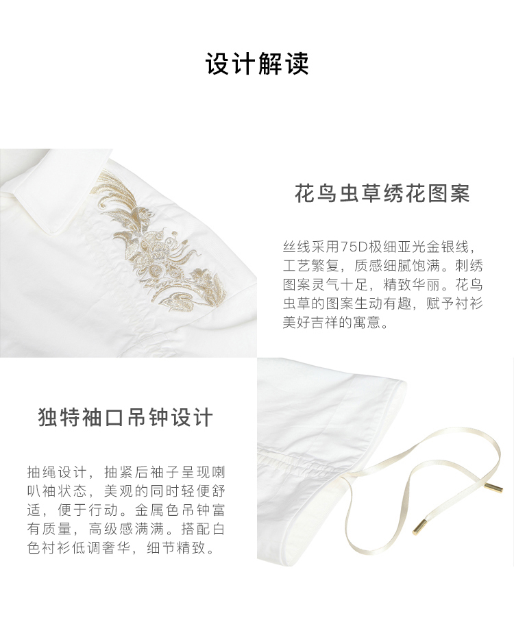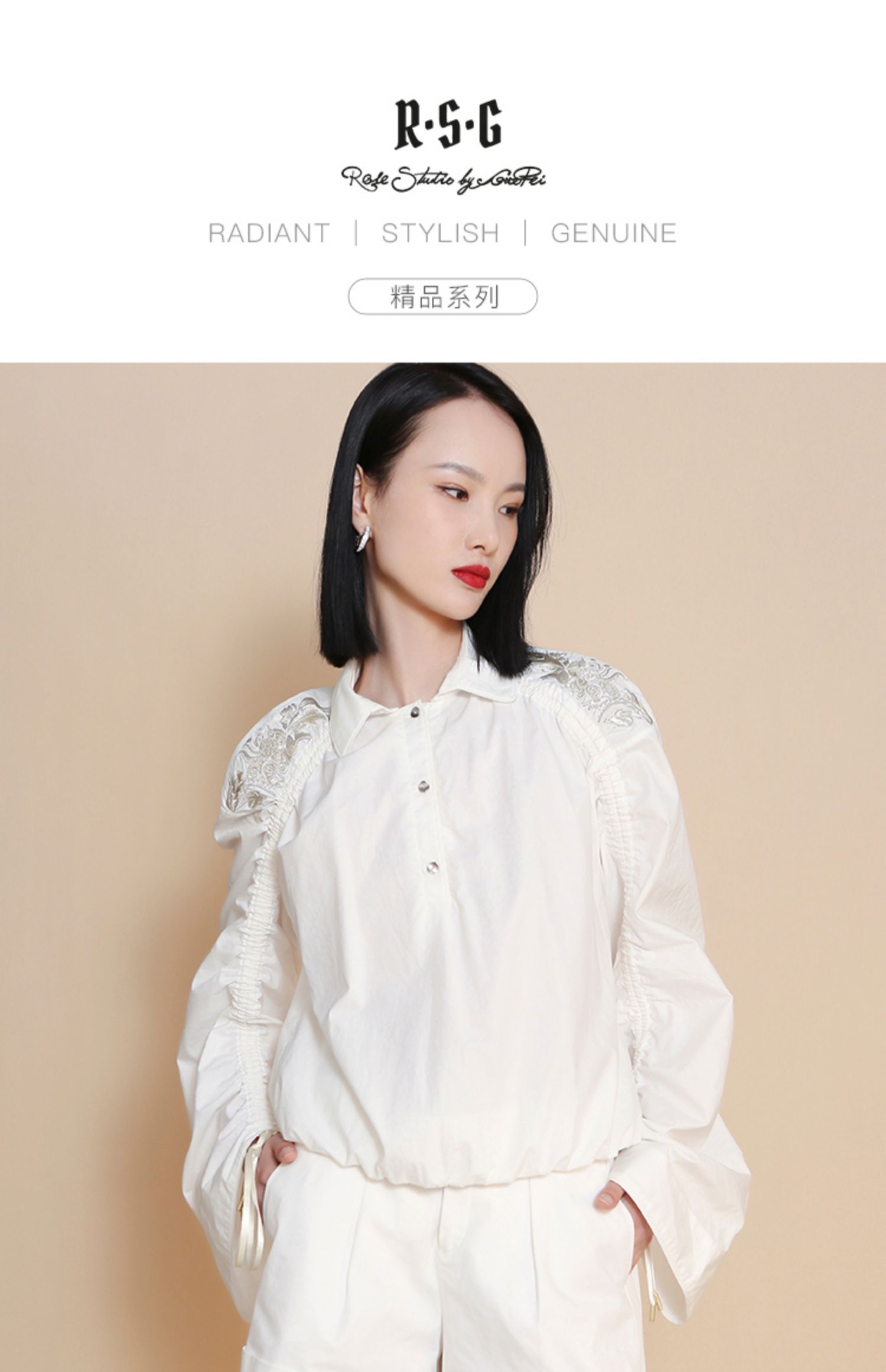 RSG郭培成衣品牌原创设计白色刺绣喇叭袖女款中式衬衫女装