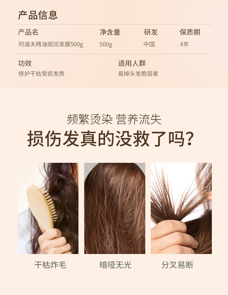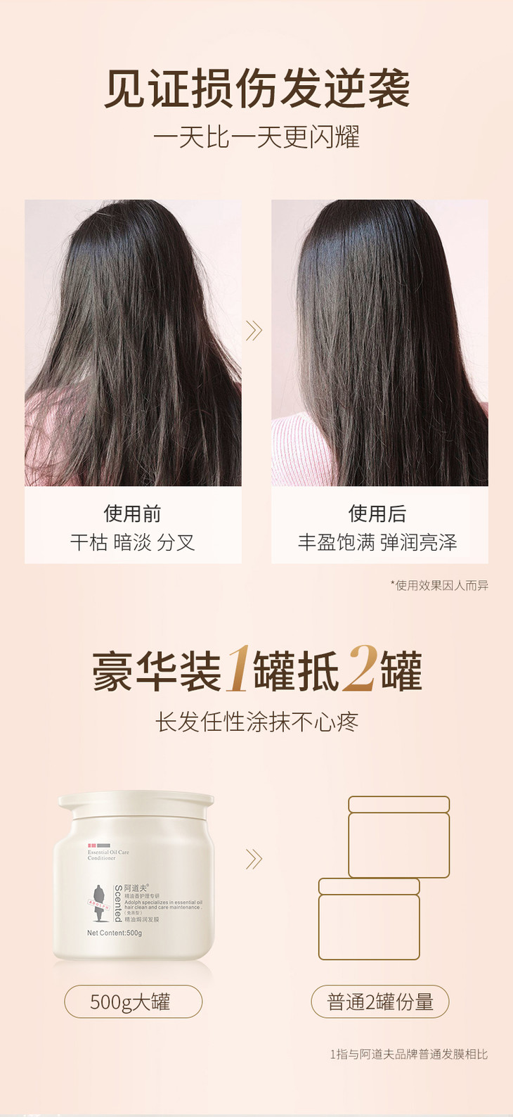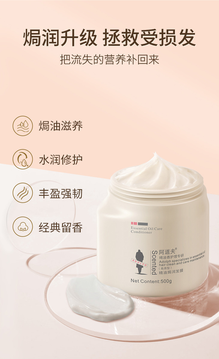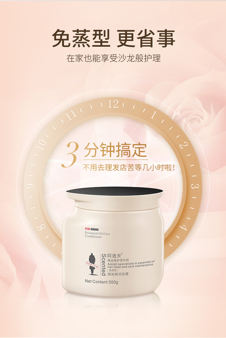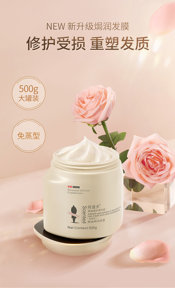 [王一博同款]阿道夫精油焗润发膜(免蒸型)500g 修护染烫损伤改善干枯含玫瑰精油-拍2件更划算
