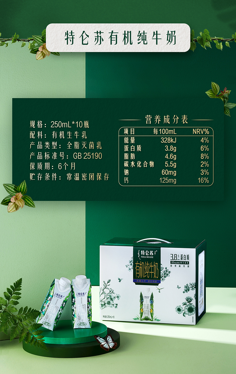 【自提】特仑苏有机纯牛奶 250ml*10包整箱 营养早餐奶