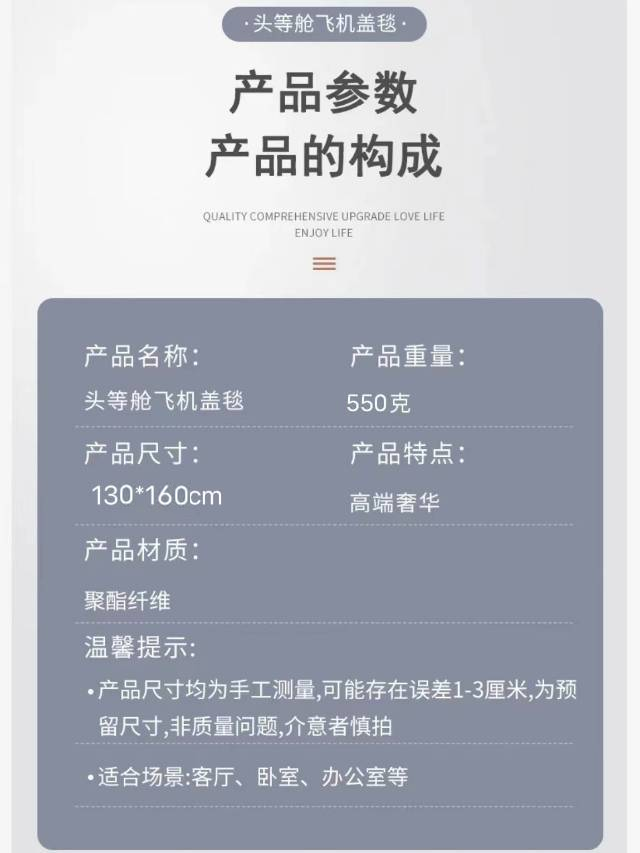 【头等舱体验】头等舱航空盖毯 针织午睡毯 130*160cm 温柔亲肤 柔软舒适 四季可用