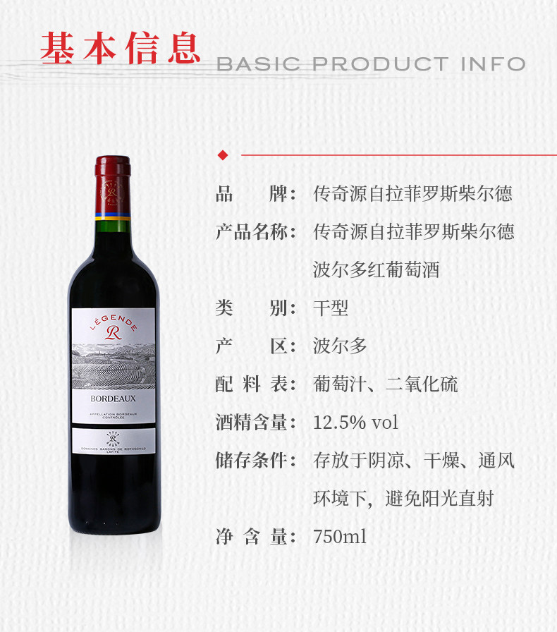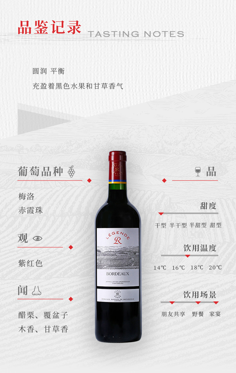 传奇源自拉菲罗斯柴尔德波尔多红葡萄酒