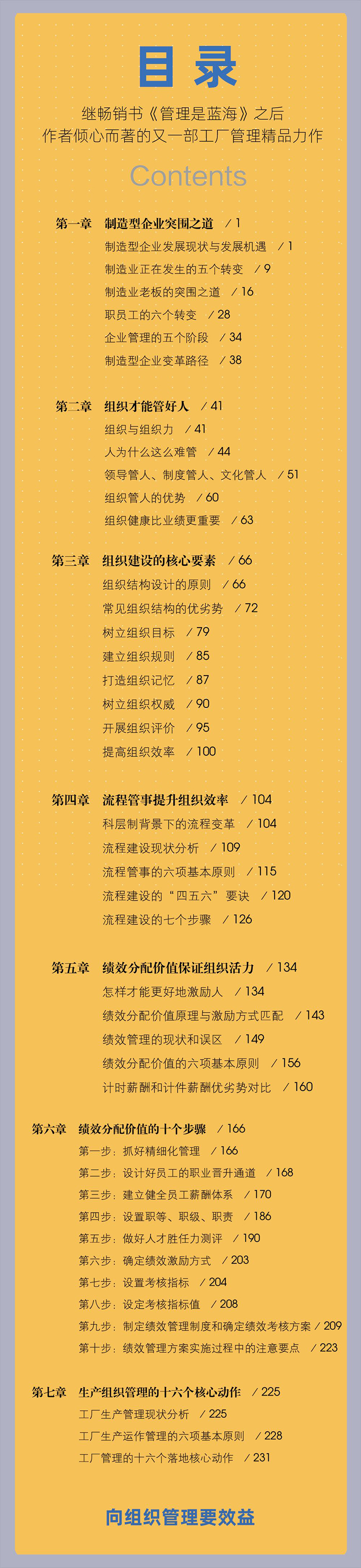 《组织才能管好人》作者是广州市朗欧企业管理咨询有限公司董事长,有多年管理咨询经验,以他工作多年为企业提供咨询服务的角度为大家展示了组织对于企业管理的重要性。本书概述了制造型企业突围之道,从组织建设、流程建设和绩效分配角度论述组织的重要性,并指出如何打造生产管理体系。组织建设提升企业整体绩效*不可少的管理工具,尤其是经济寒冬时期,更是企业*然会关心的话题,市面此类图书较少,同时这本书的实操性和落地性使它具有较强的竞争力。