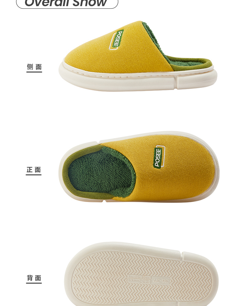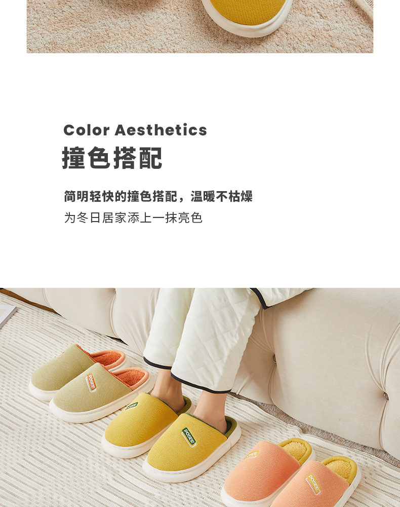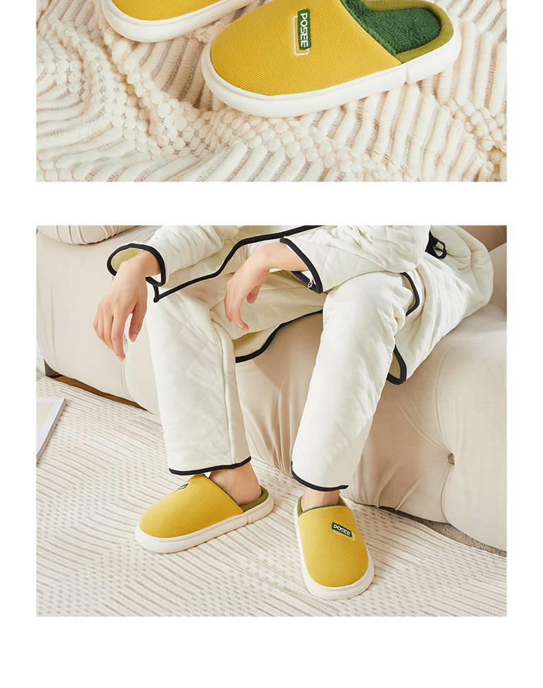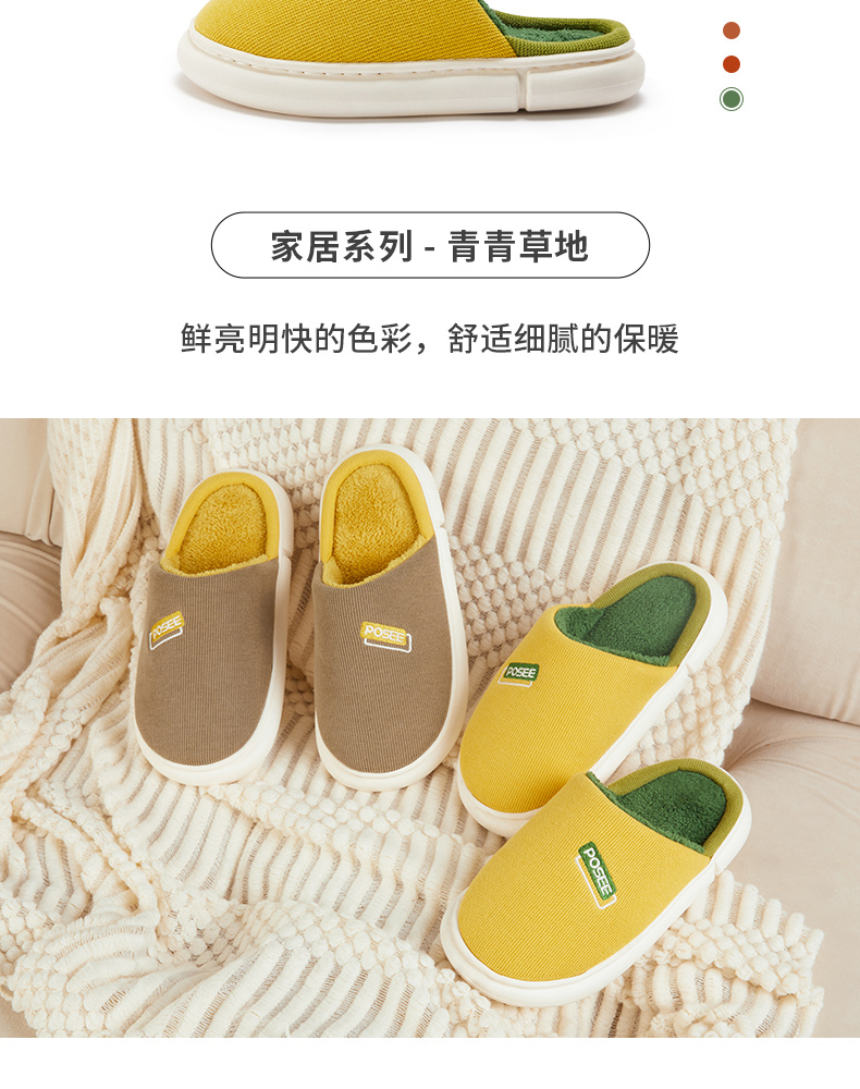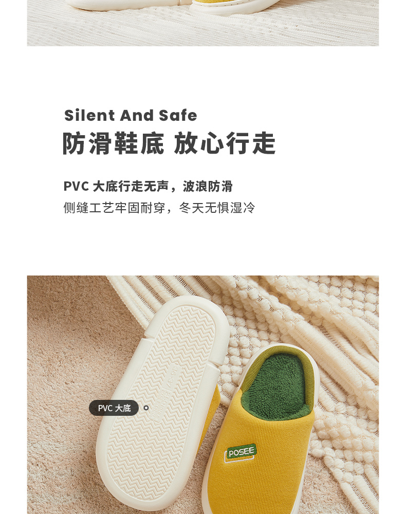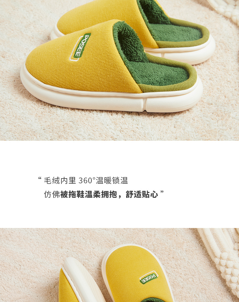 朴西冬季拖鞋家用厚底保暖柔软静音简约防滑加绒加厚居家男棉拖鞋