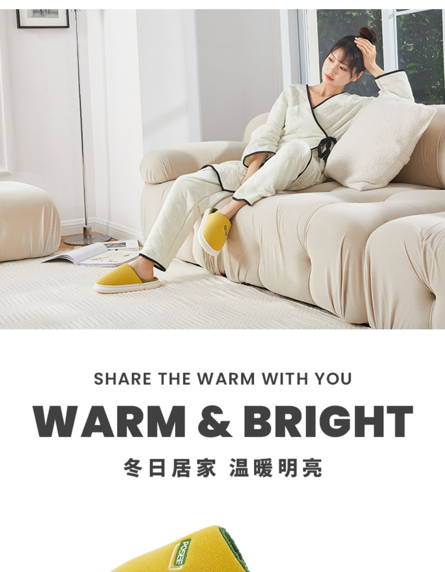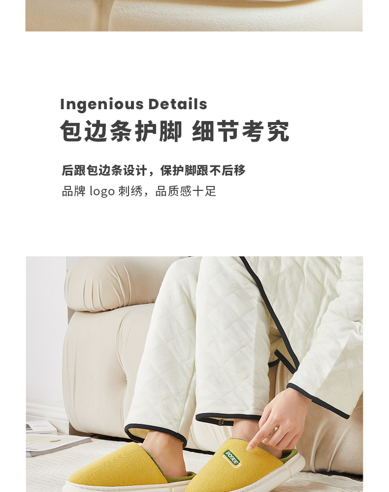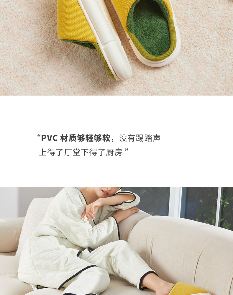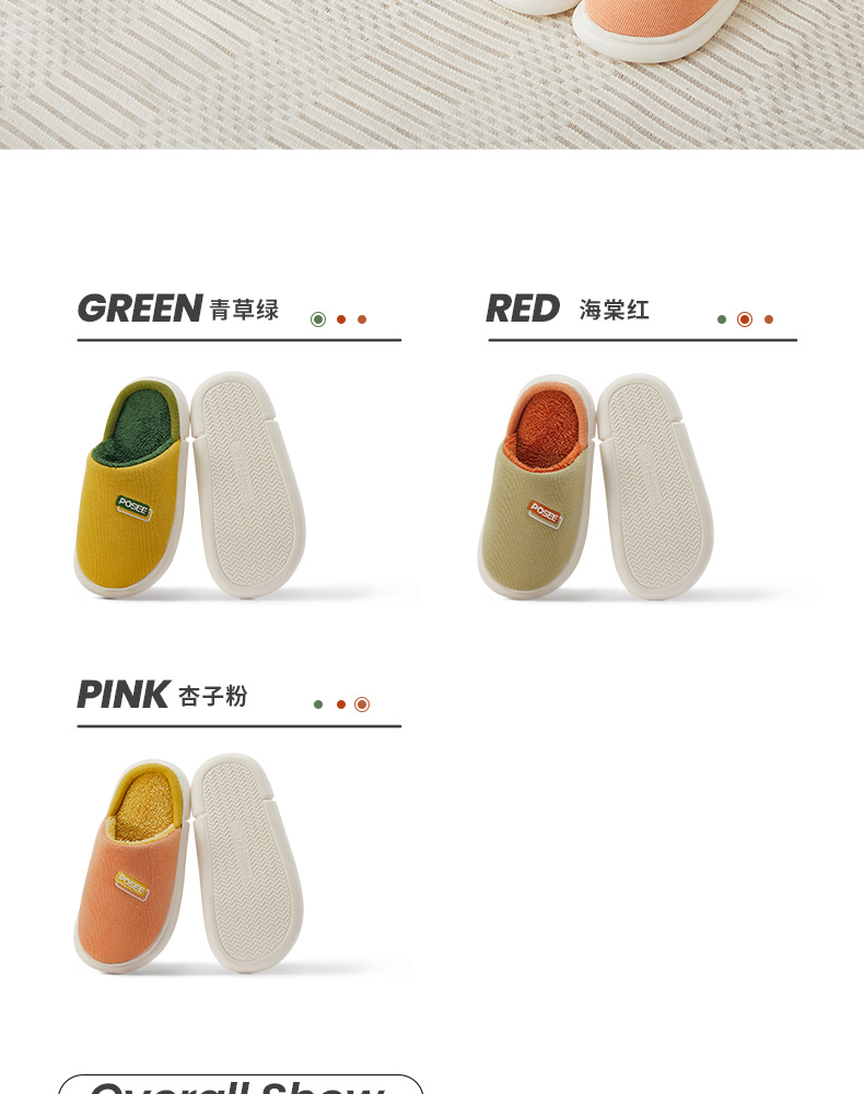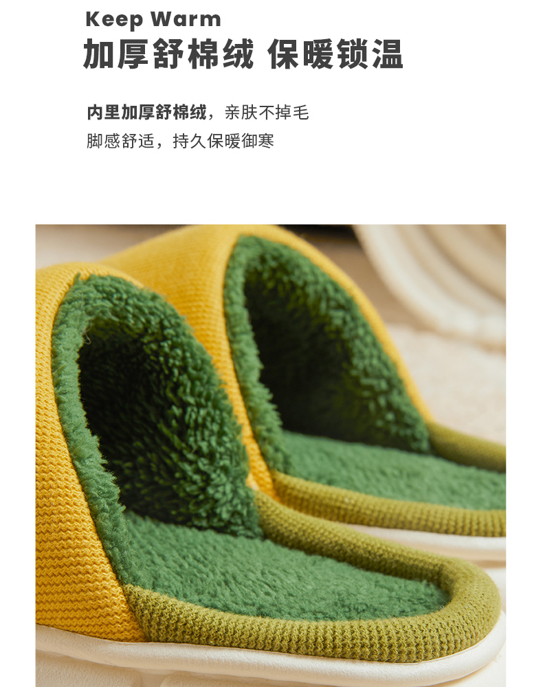 朴西冬季拖鞋家用厚底保暖柔软静音简约防滑加绒加厚居家男棉拖鞋