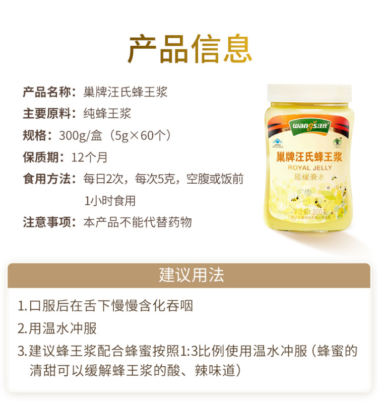 汪氏新鲜蜂王浆300g/瓶