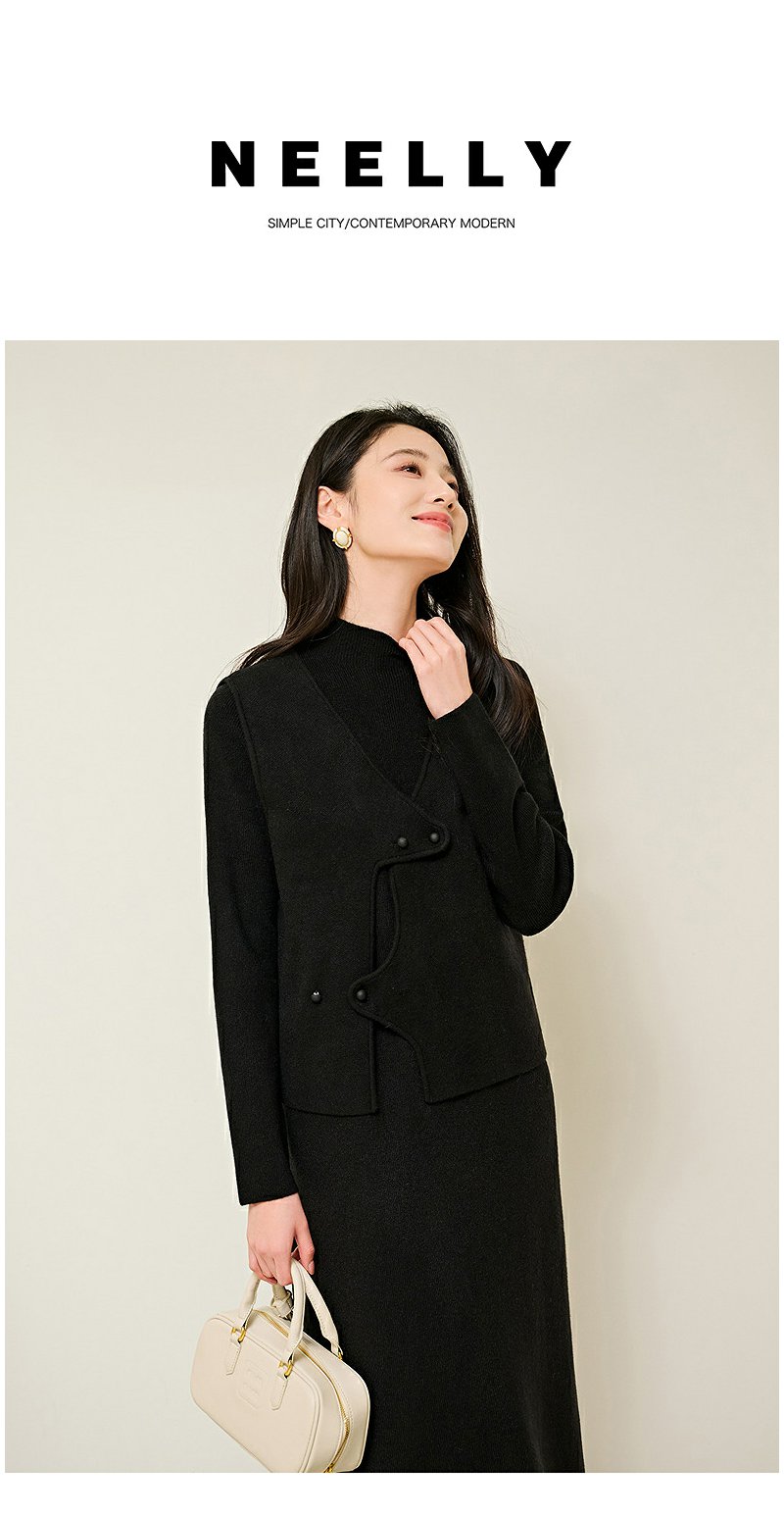 NEELLY纳俪商场同款冬季新款显瘦针织马甲套装长裙女百搭连衣裙N25104Y06610