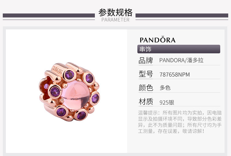 PANDORA/潘多拉女士铜银合金纹章光辉串饰手链项链串珠787658NPM