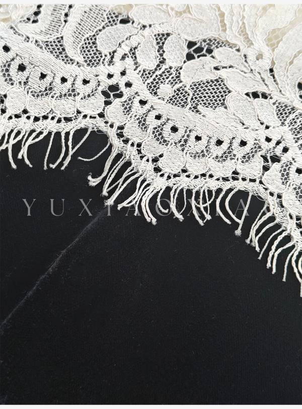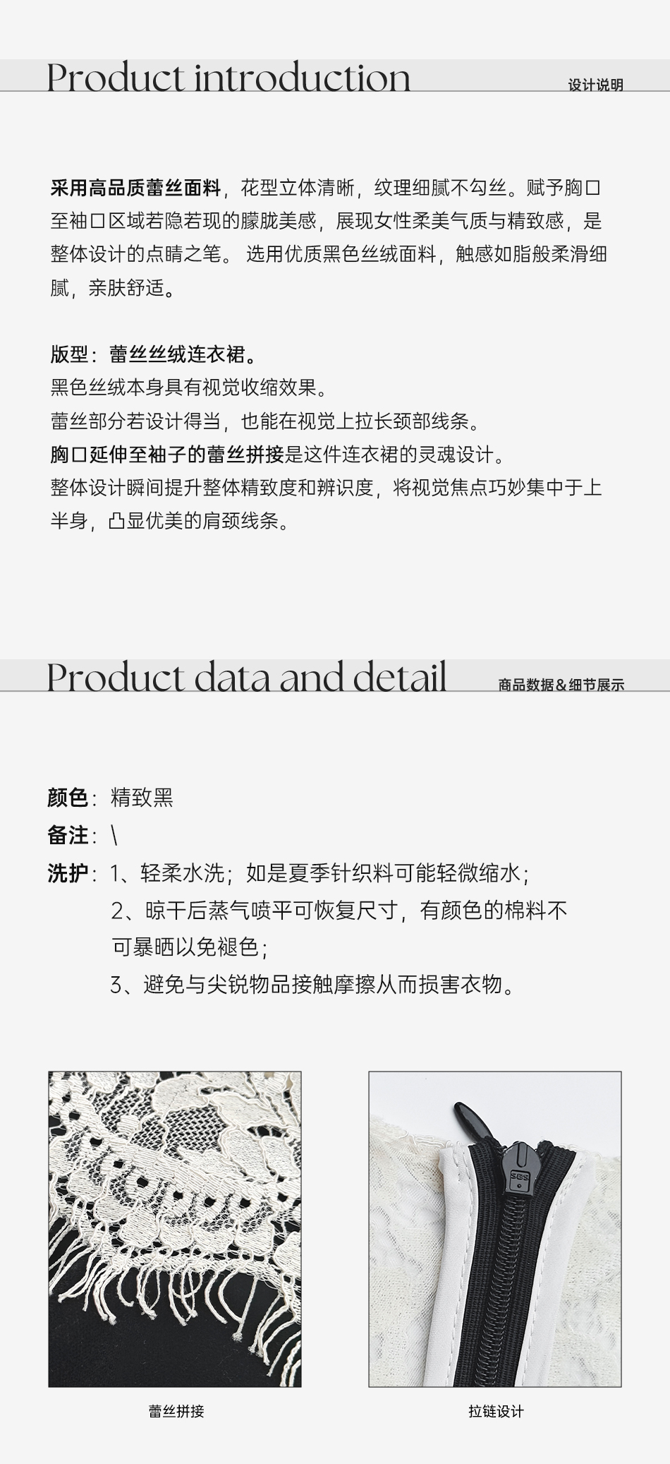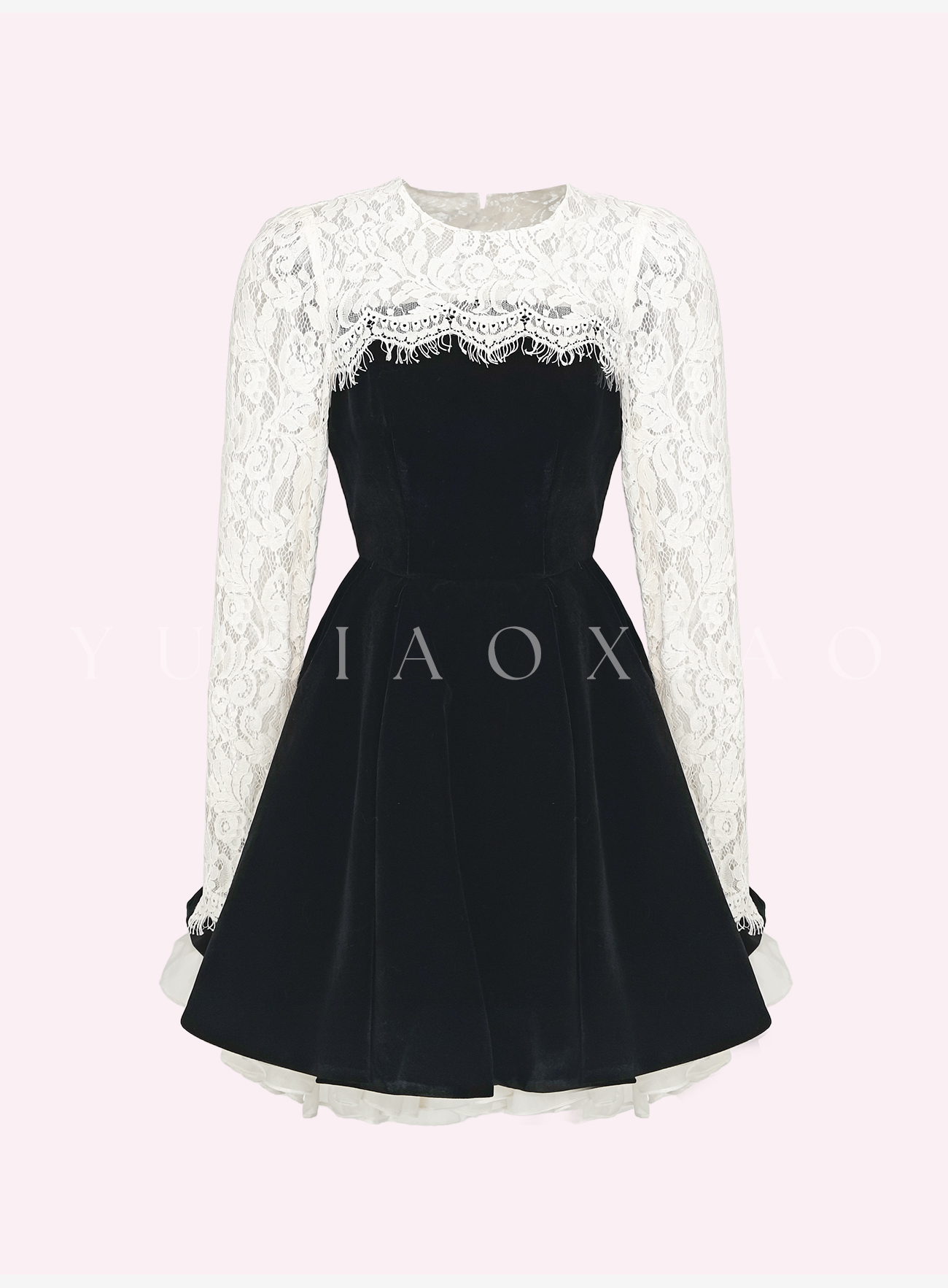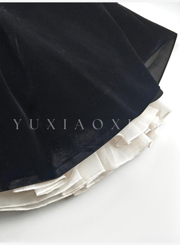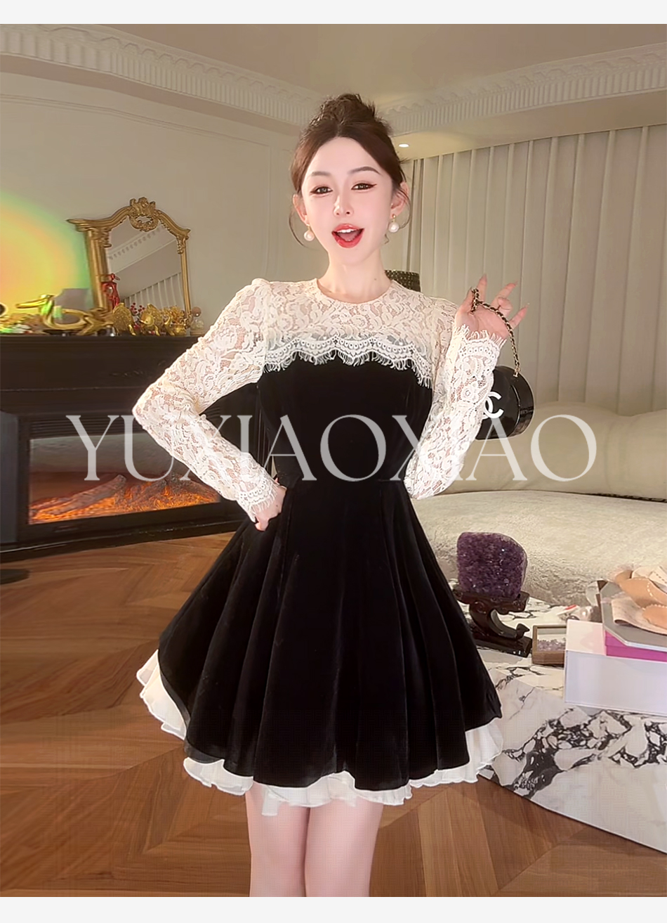 余潇潇【露丝茶话会】时尚精致立体花型黑色丝绒拼接蕾丝连衣裙