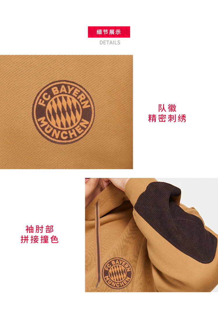 【官方正版】拜仁足球俱乐部丨秋冬新款深棕简约帽衫休闲百搭卫衣