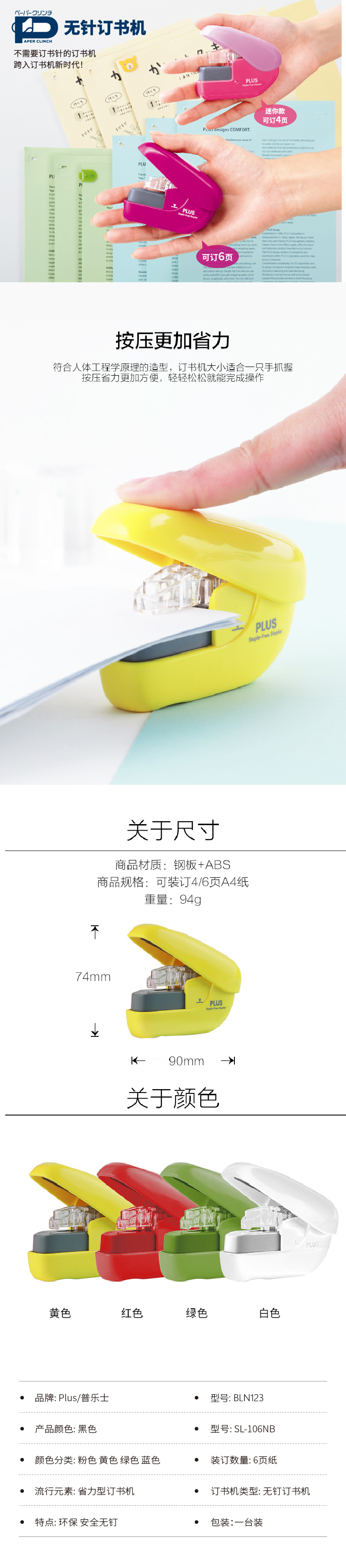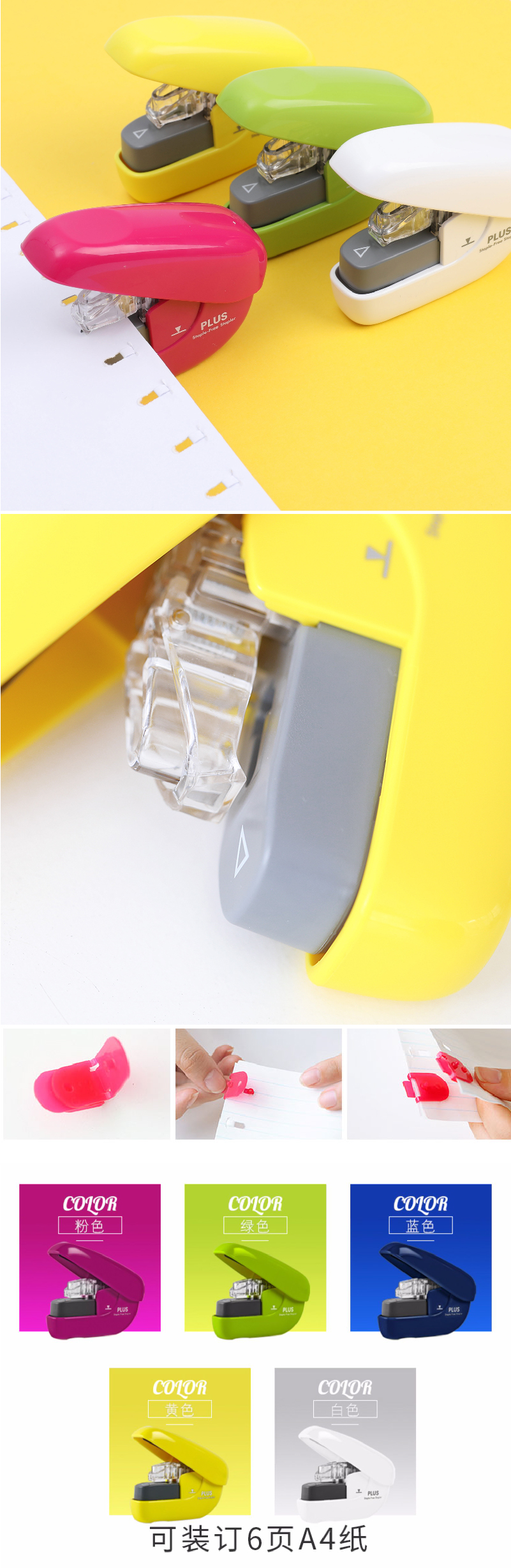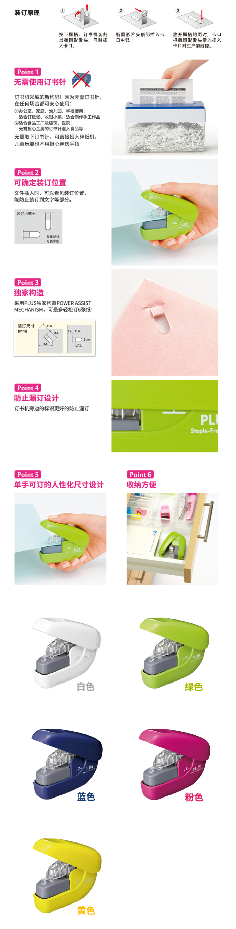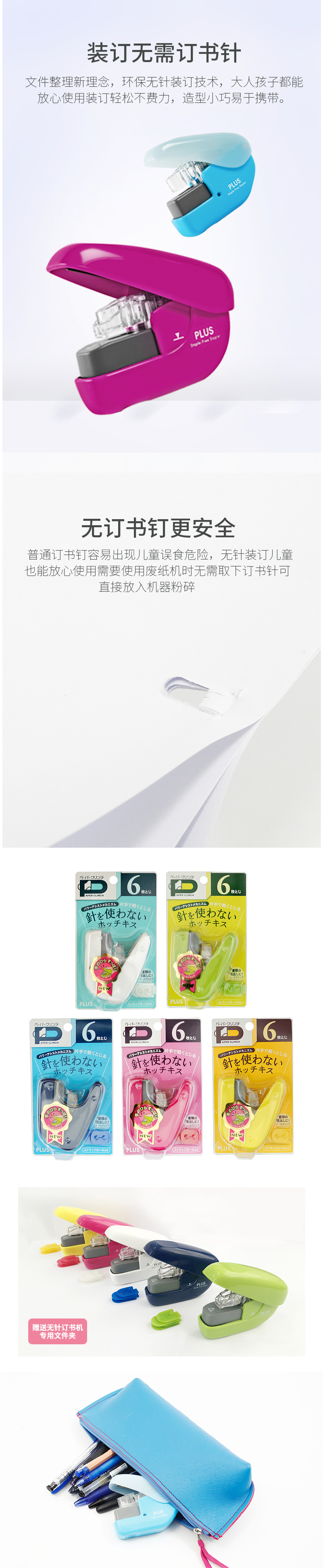 日本PLUS普乐士无钉订书器手握式无钉创意办公文具迷你环保订书机
