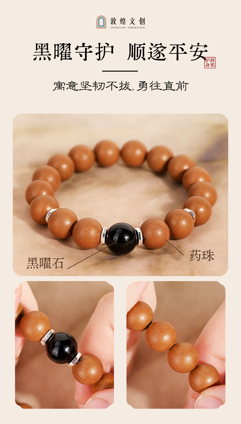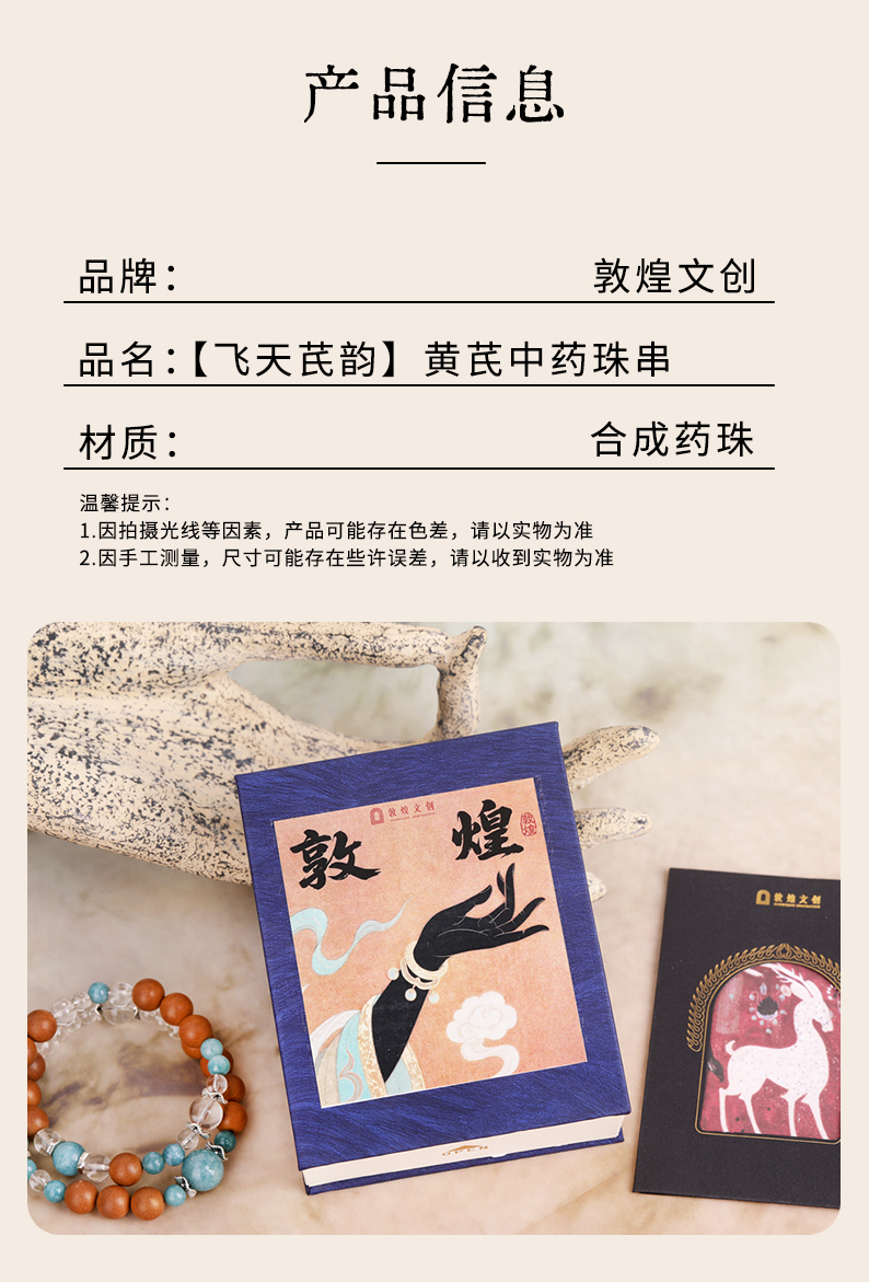 敦煌文创手链 【飞天芪韵】黄芪当归茯苓中药手串 非遗技艺合香首饰