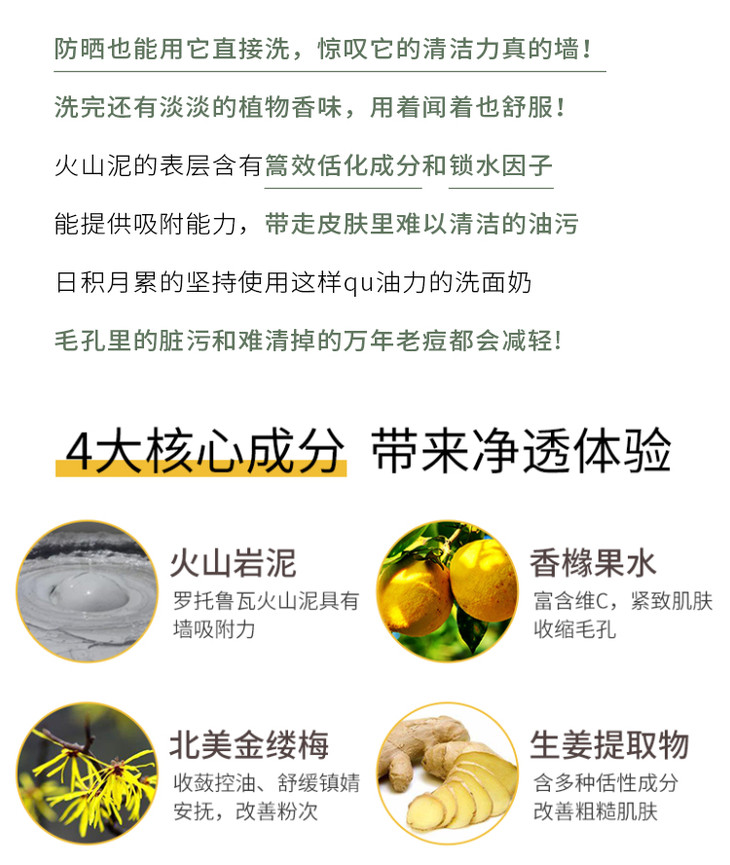 纽西之谜山岩泥洗面奶 男女深层清洁毛孔清透控油祛痘洁面乳