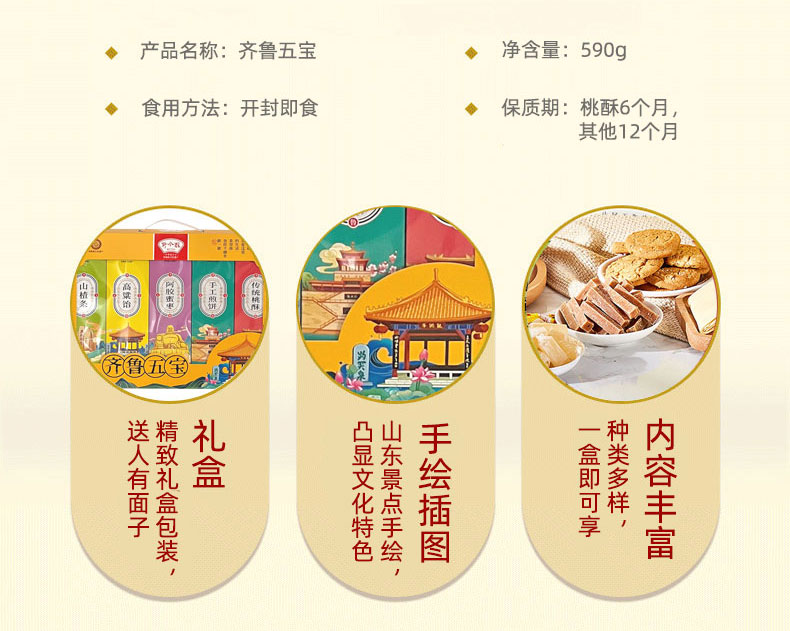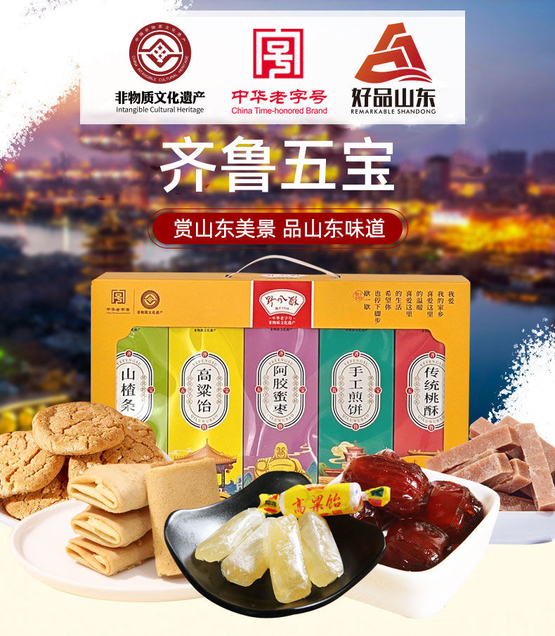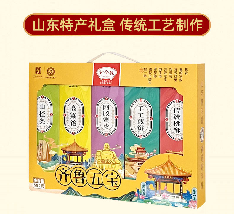 野风酥山东特产礼盒装齐鲁五宝590g 高粱饴煎饼送人零食礼品土特产大全