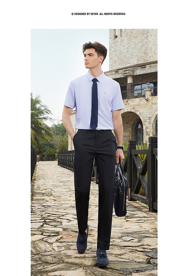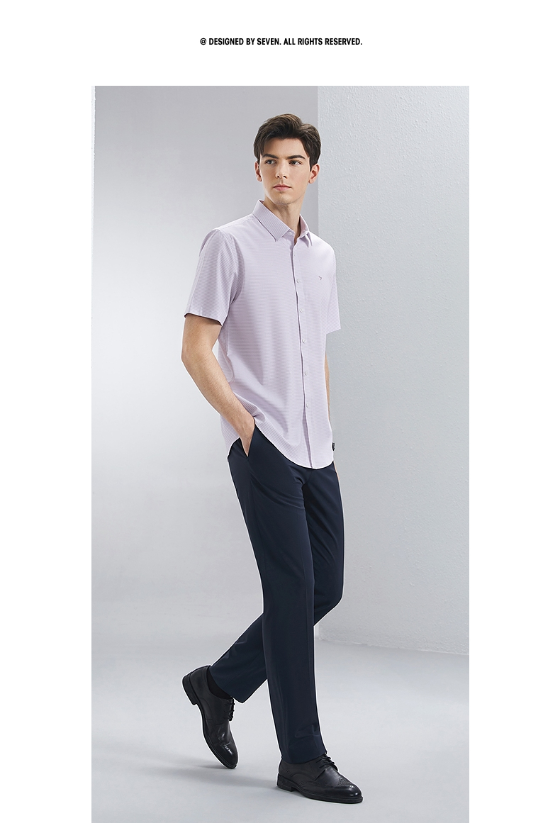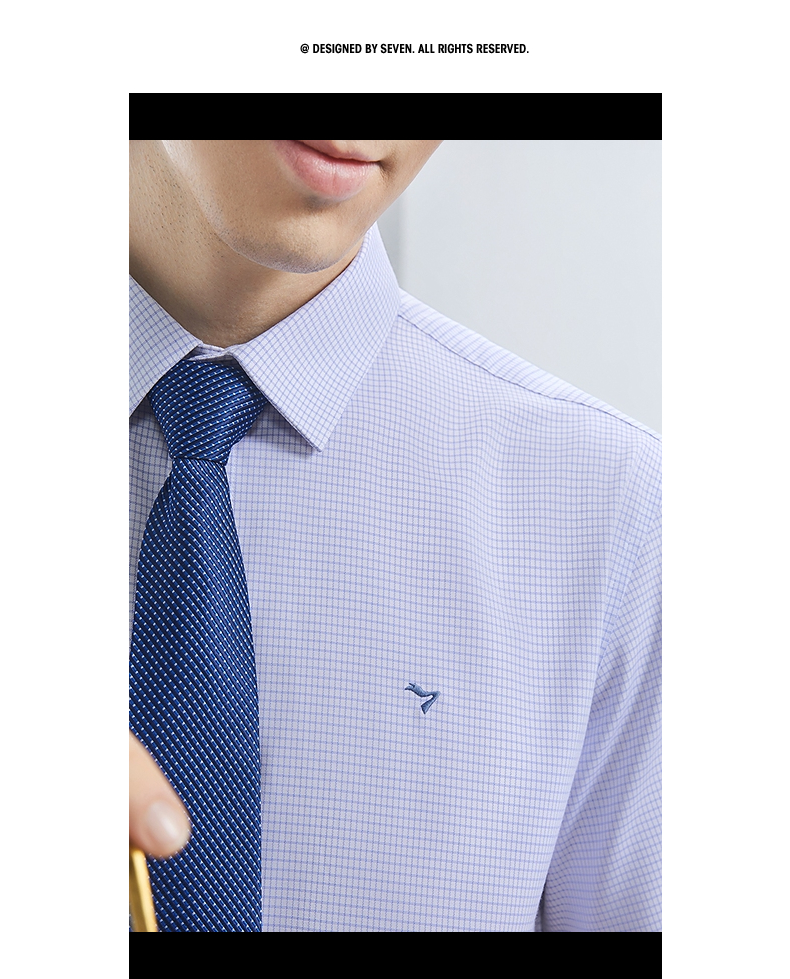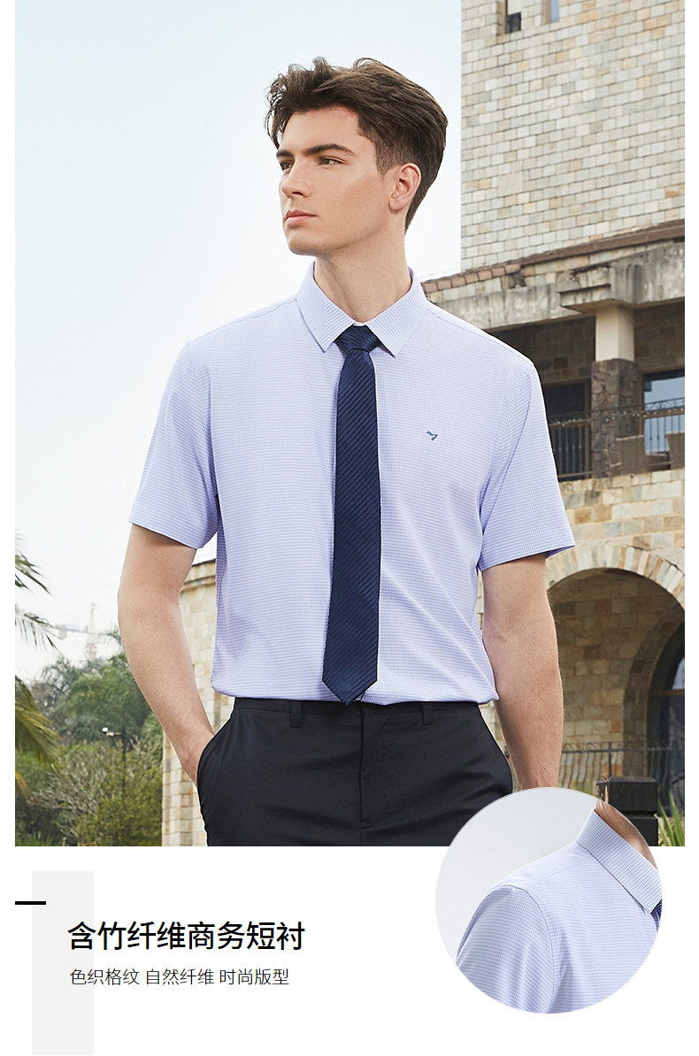 【含竹纤维】柒牌格子短袖衬衫男士2024夏季新款中年商务休闲衬衣 126A70410